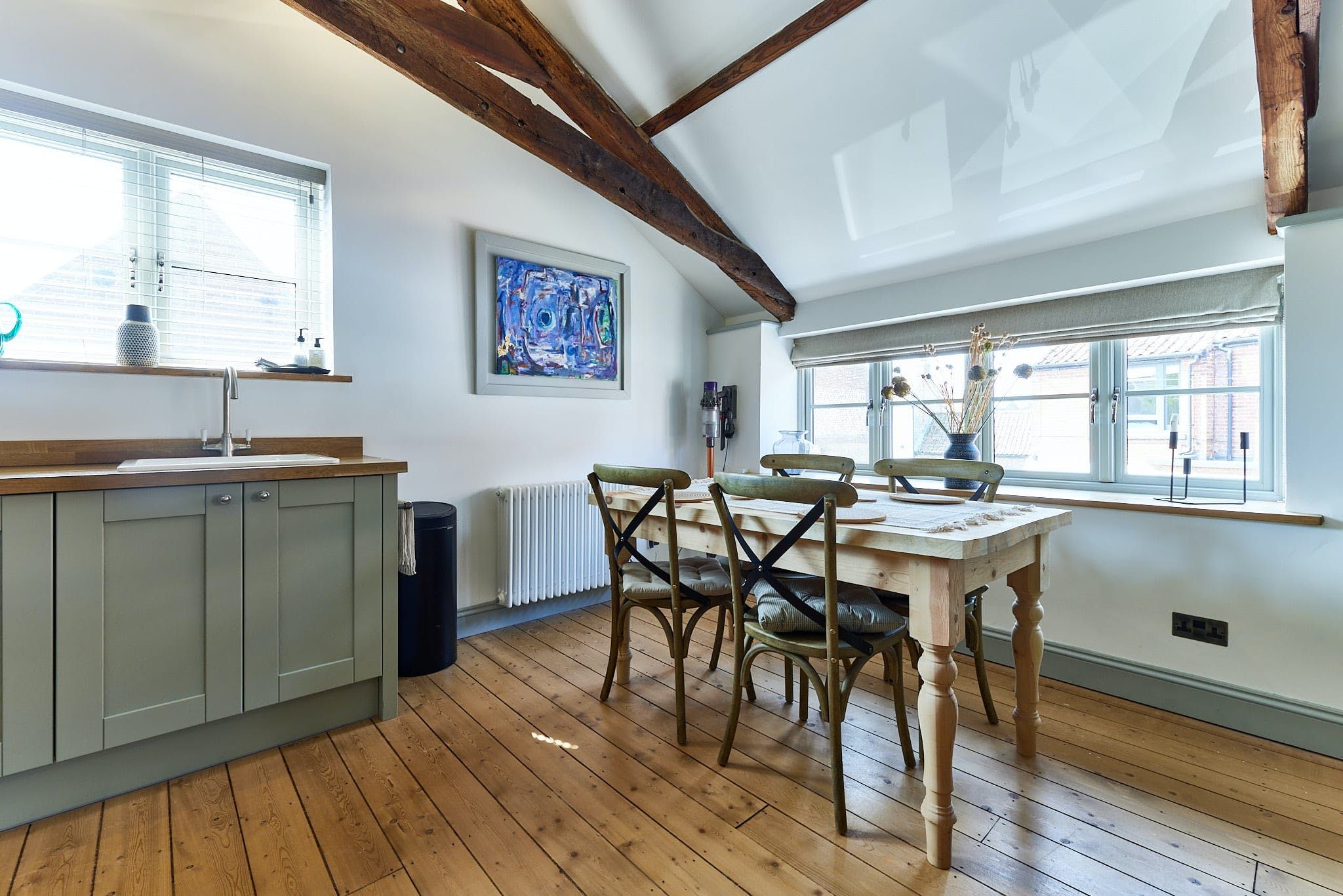 Nestled in the picturesque village of Cley-next-the-Sea and behind The George & Dragon, our newly renovated 2-bedroom Coach House awaits you! With luxurious soft furnishings and comfortable beds featuring pocket sprung mattresses, it promises a tranquil and rejuvenating stay for up to 4 guests. A self-contained property, the Coach House has a well-equipped kitchen, open-plan lounge, and a spacious private garden and patio where you can unwind and enjoy the peace and quiet of this coastal paradise. Immerse yourself in the calming atmosphere as you take romantic strolls along the beach or explore the charming village with its quaint shops and tea rooms. Indulge your senses with breathtaking sunsets while sipping local Norfolk wine from your private patio. Leave all your worries behind as you immerse yourself in the serenity of our enchanting retreat!