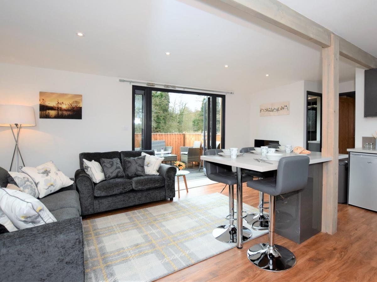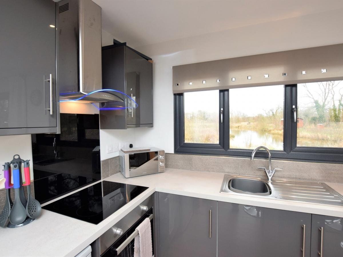 Relax in a purpose-built holiday cabin set alongside a serene 1-acre lake.