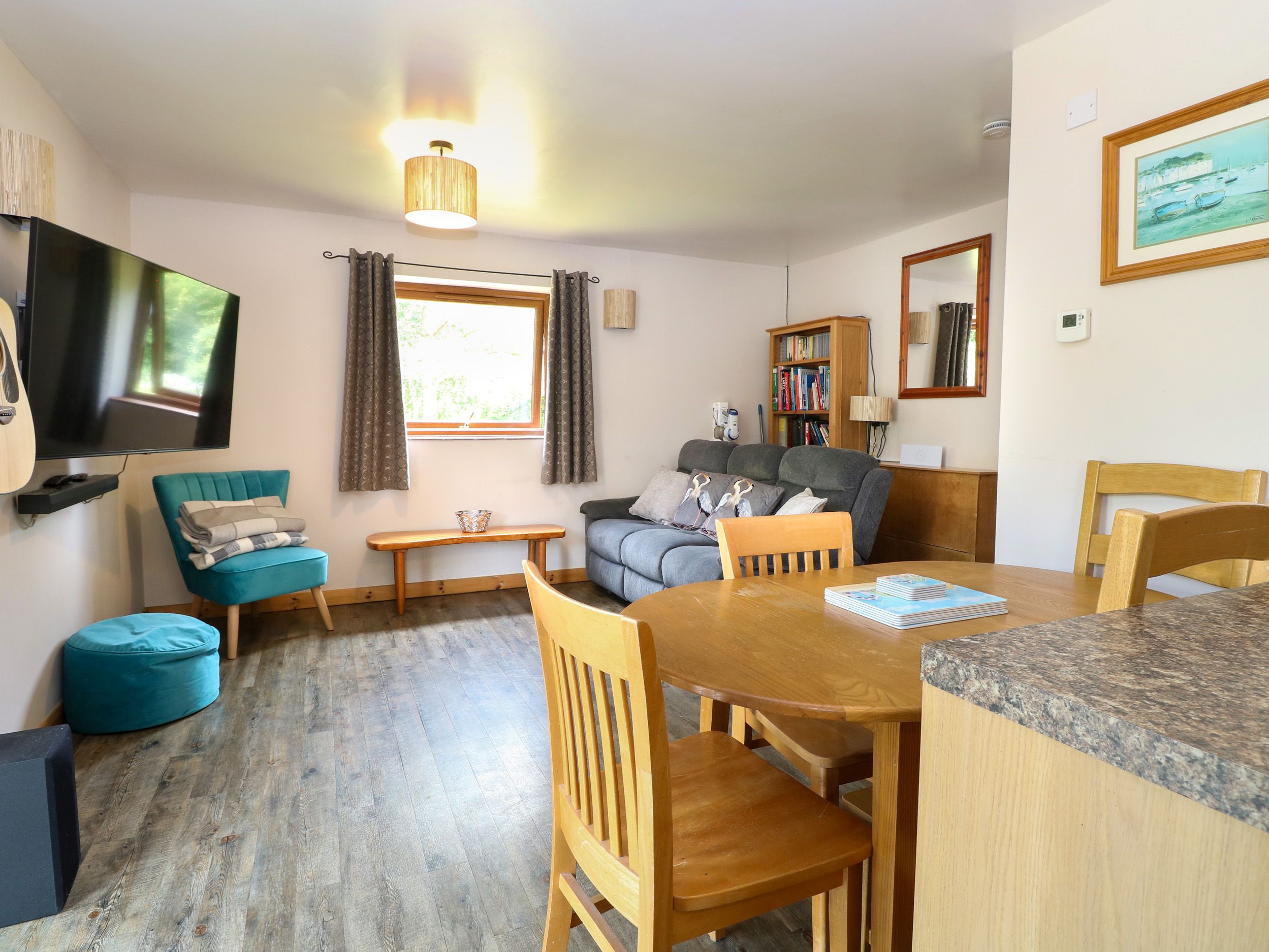 Really was a pleasure to be able to walk straight out of the door into the wood/lake area with our dogs.. Fortunately the weather was very good.Also the property although in country side was only 10 minutes from all shops etc.