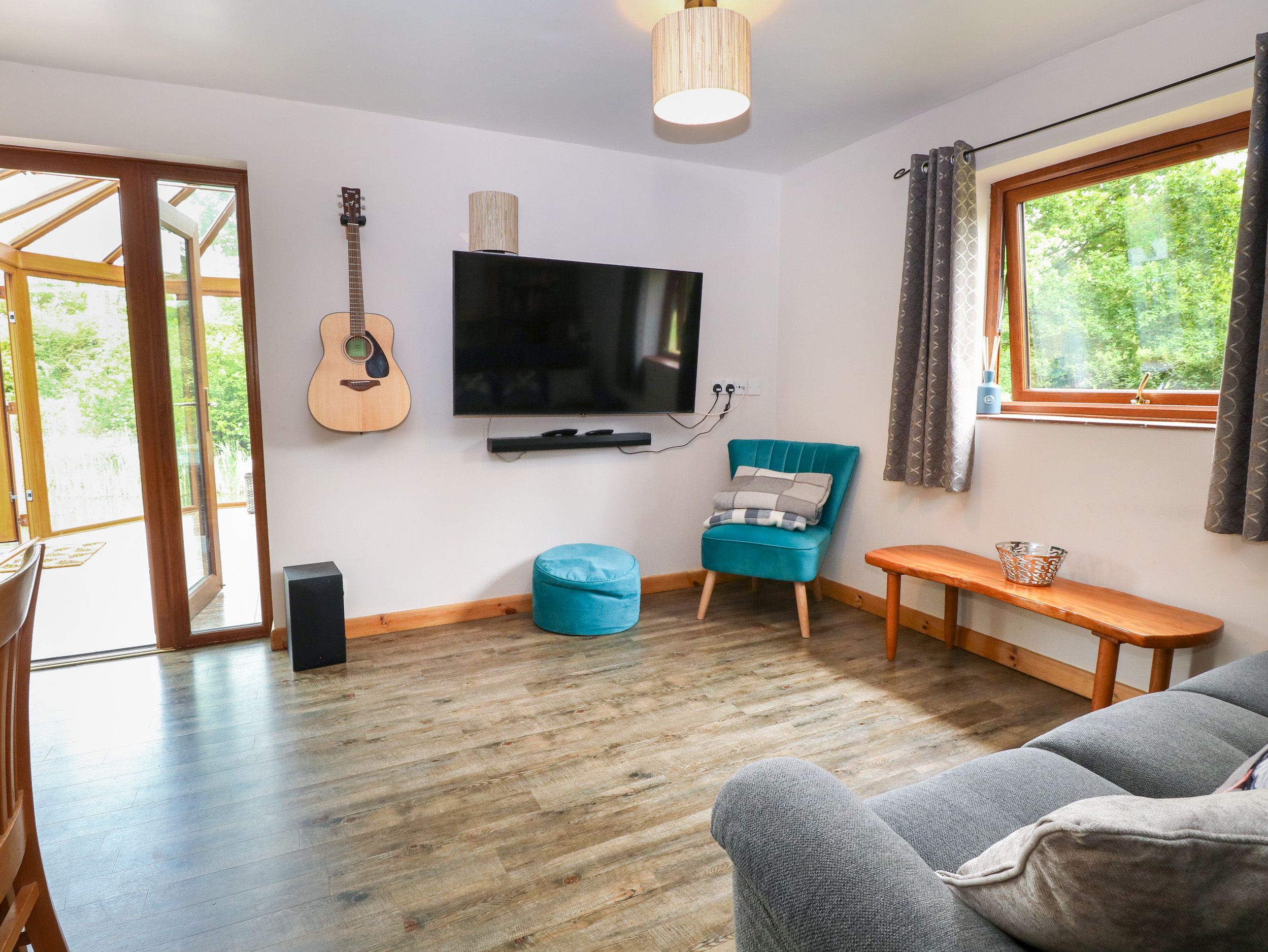 Amenities Solar panels and Air-source heat pump central heating with underfloor heating. Private water supply from a borehole, which is stringently tested and certified annually. Starlink satellite WiFi. Electric oven, induction hob, microwave, fridge/freezer, washing machine, tumble dryer, dishwasher. TV with Freeview and bluetooth soundbar, selection of books and games. Fuel and power inc. in rent. Bed linen and towels inc. in rent. Off road parking for 2 cars. There is an electric car charging point available but please bring your own charging lead. Enclosed decking with furniture and barbecue. Private use of lawned area and shared waterside walks (map provided at property). Two well-behaved pets welcome, small welcome dog pack supplied, please bring a pet blanket, we do provide pet rollers for your use. Please keep dogs supervised at all times. Sorry, no smoking. Shop 2.8 miles, pub 2.6 mile. Note: There is unfenced open water surrounding the lodge, children and pets must be supervised at all times. Note: There is to be no swimming or fishing in the lakes. Note: There is a second private property on site, sections of land have been purposely allocated for guest's use and boundaries should be respected. Note: Mobile reception can be intermittent. Note: Dogs must be kept on leads in the garden due to avian flu being present, large lead will be provided