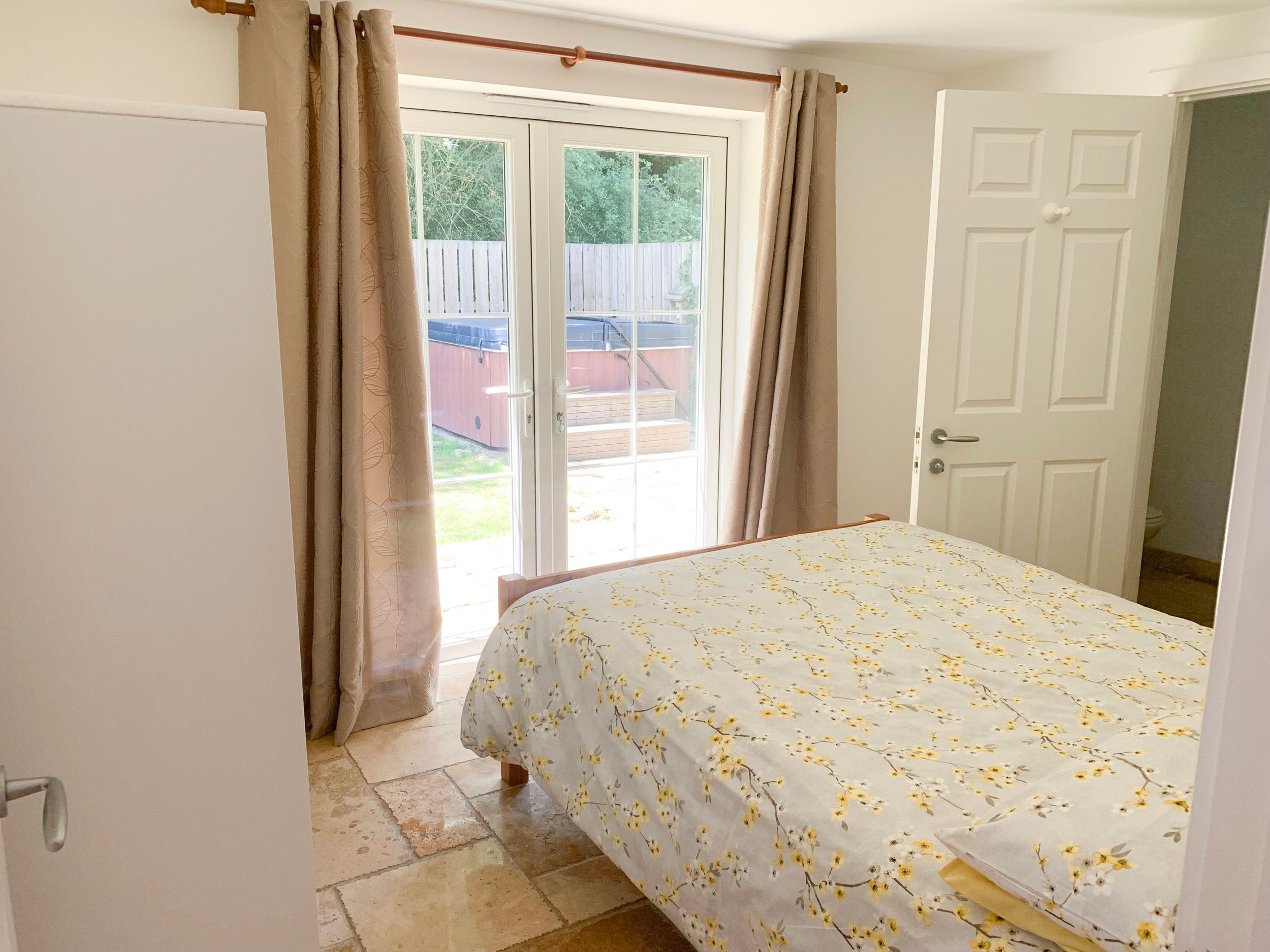 Ideal for our dogs, totally secure garden and tiled floors throughout.. Underfloor heating was wonderful. The whole place was lovely and warm even in November. Very well equipped. We really enjoyed the hot-tub after a day exploring the local area.