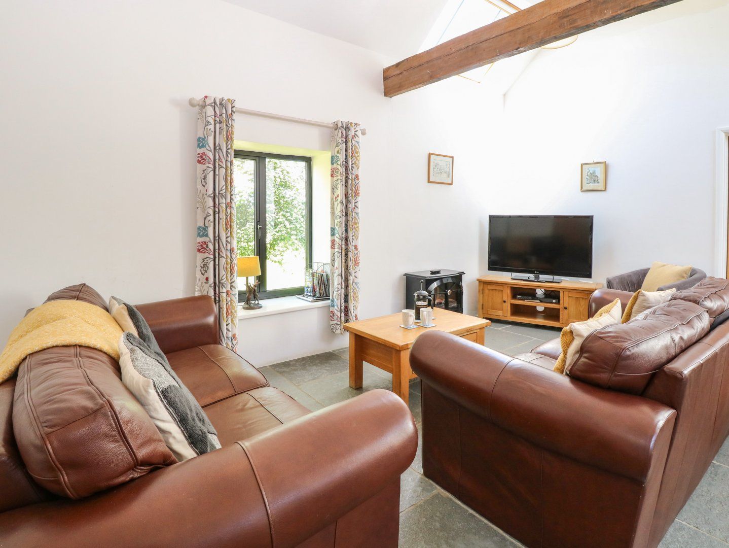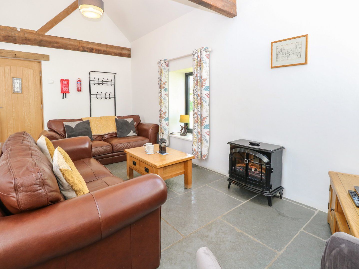 Holiday home The living areas consist of an open-plan kitchen equipped with electric oven and hob, microwave, dishwasher, fridge/freezer, a utility with washing machine, dining area with seating for six guests and sitting area with TV and electric fire. The bedrooms consist of one king-size with en-suite shower room and two twins, along with a bathroom. Outside there is a shared enclosed seating area opposite the cottage, as well as off-road parking for two cars. Within 1.3 miles you'll find a shop and in 1.1, a pub. Please note that one well-behaved pet is welcome but sorry, no smoking. WiFi, fuel, power, bed linen and towels are included in the price. The Long Barn is a wonderful place to enjoy at any time of the year. Note: The property is positioned close to a main road, and there may be some associated traffic noise. Note: The smaller twin room has two 6 foot beds that are wall to wall so may not be suitable for some adults or taller children. Note: Check-in from 4pm, check-out by 10am.