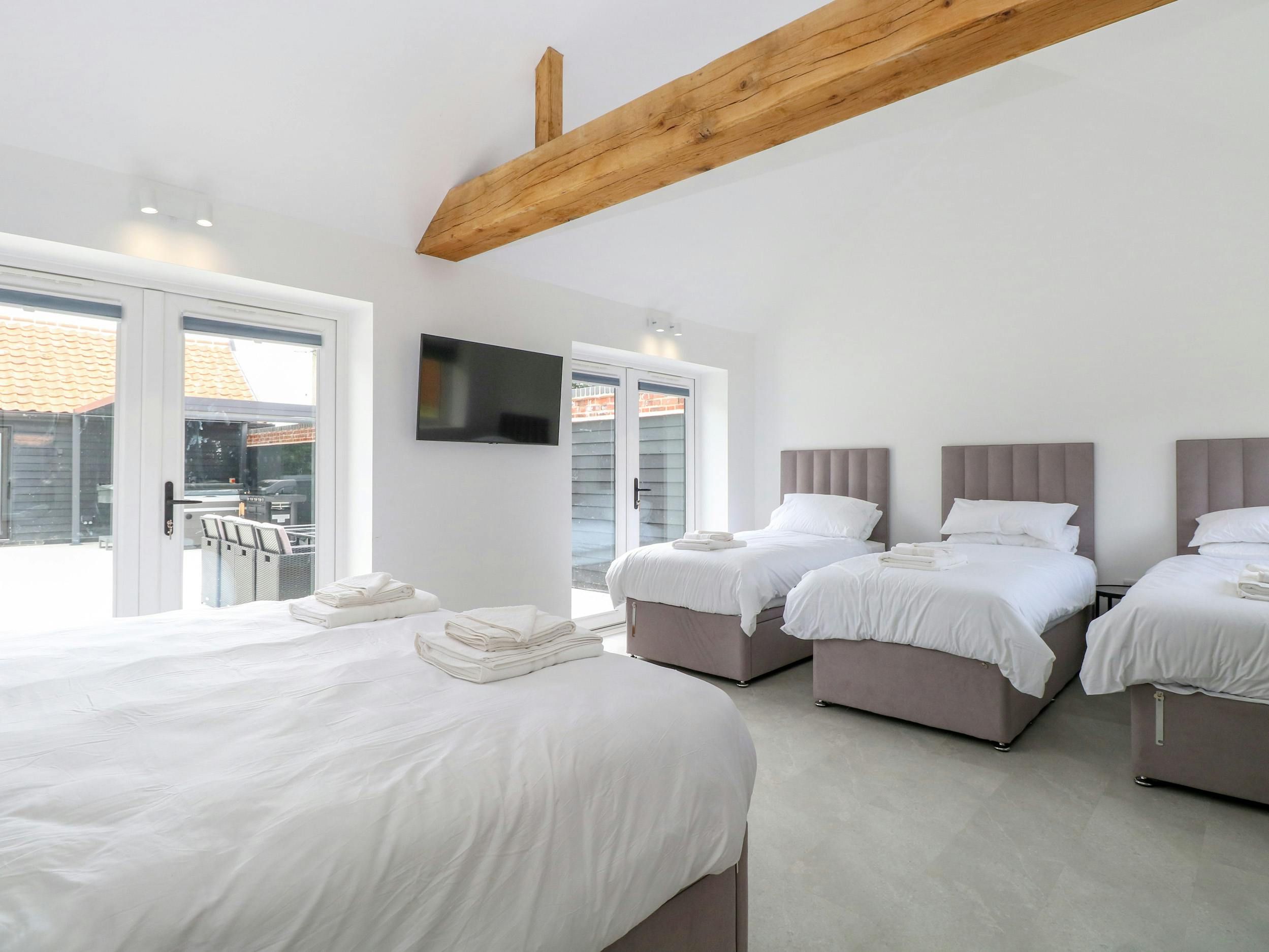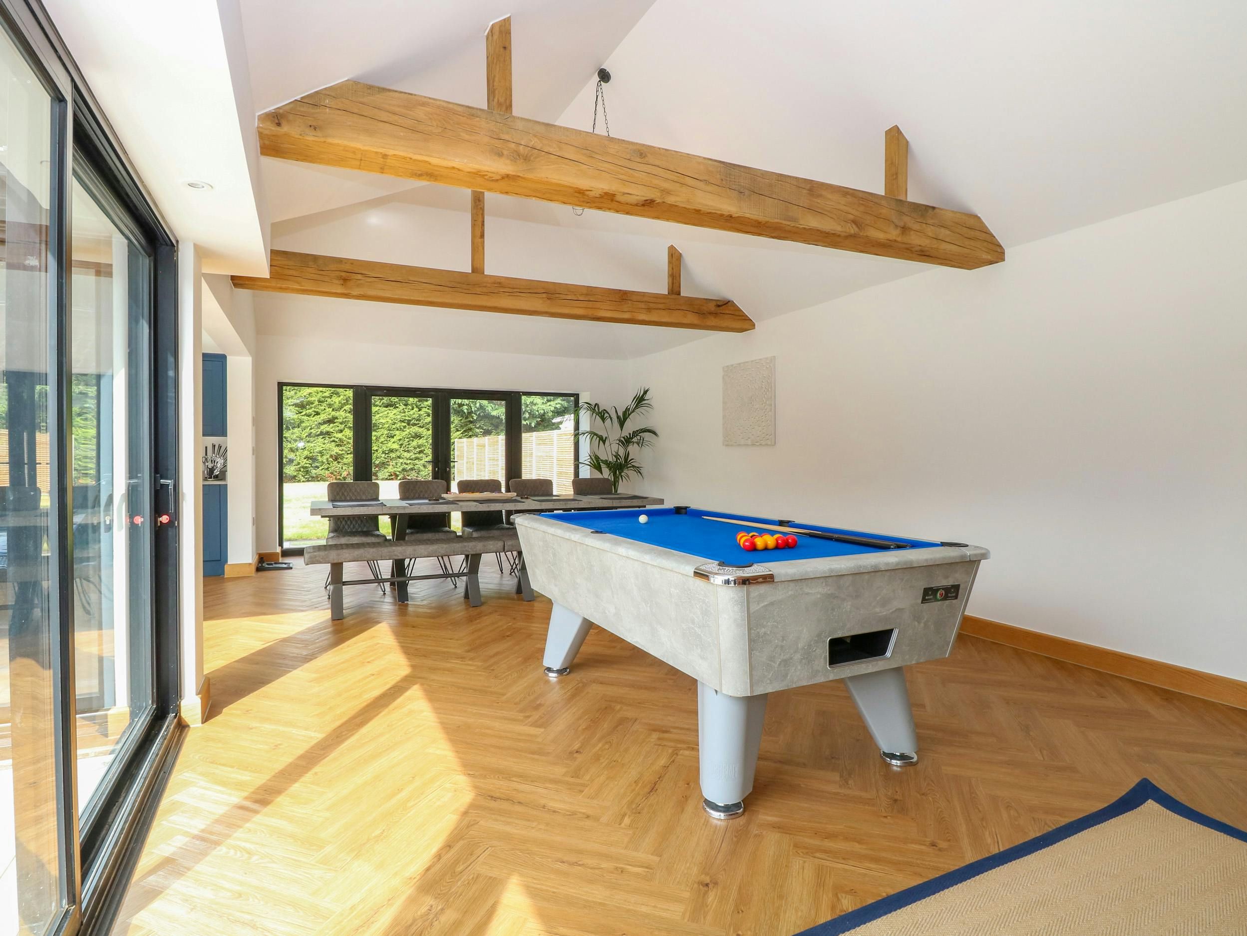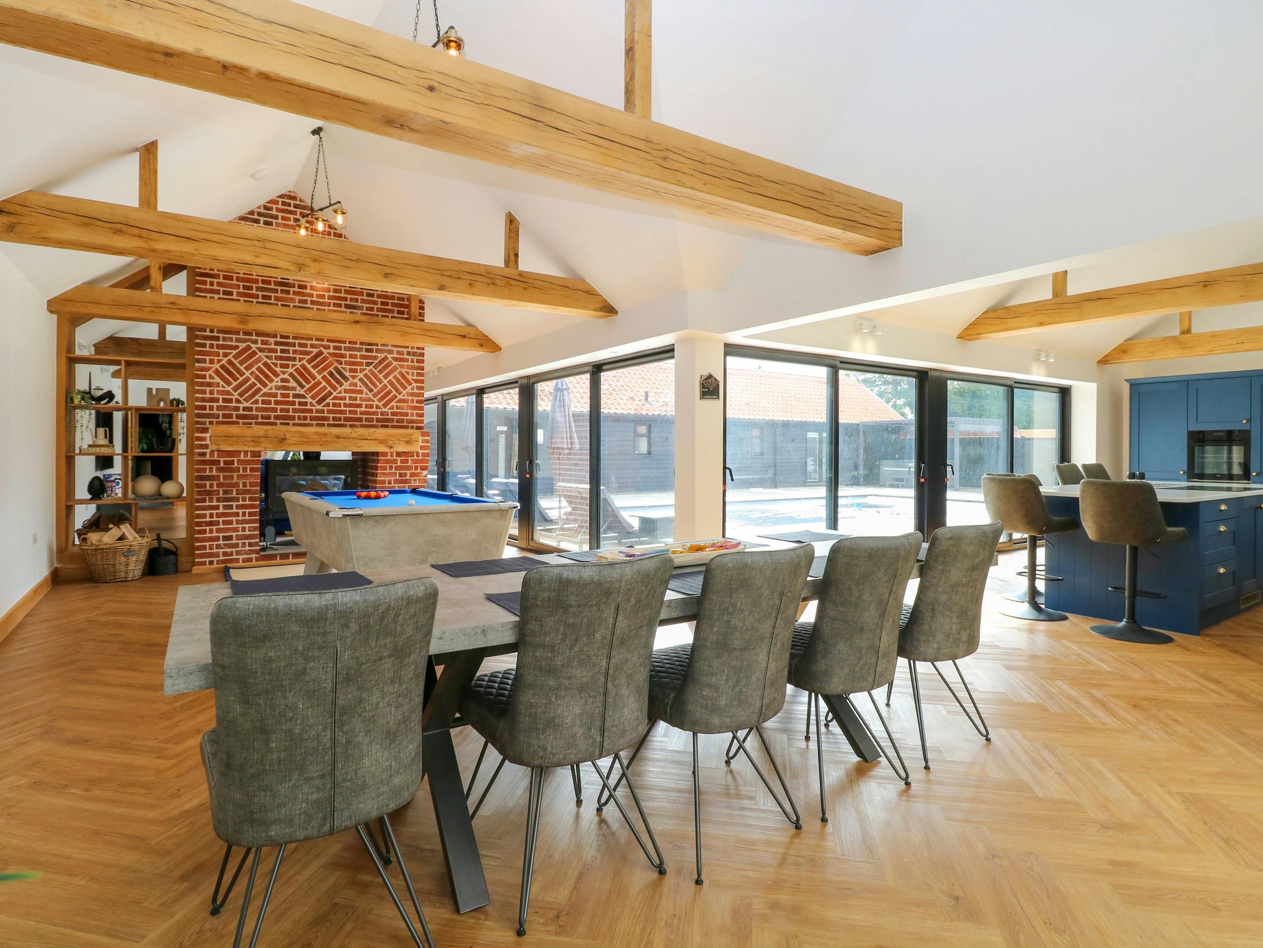 With a private swimming pool, cinema room, and games room, this barn conversion is ready-made for a memorable group getaway. Arranged around a central courtyard, there’s plenty of space for everyone to enjoy, whether you’re relaxing in the private hot tub or catching up with your guests over dinner at the dining table. It’s worth noting that at full occupancy, five people will be sharing a bedroom, so the set-up here might not suit everyone. Location-wise, you’re sandwiched between Norwich and Great Yarmouth, with the stunning Norfolk Broads just a few minutes’ drive away.
