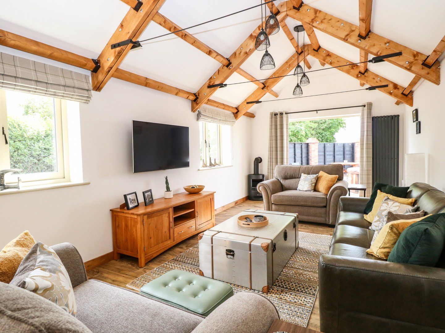 Accomodation Details Sykes Gem Awards 2024 Gold winner for Best In East Anglia. Two bedrooms: 1 x super-king-size (zip/link, can be twins on request) with Smart TV and en-suite freestanding bath, walk-in shower, basin, heated towel rail and WC, 1 x ground-floor double with Smart TV and en-suite shower, basin and WC. Open-plan living space with kitchen, dining and sitting area with king-size pull-out sofa bed. Utility
