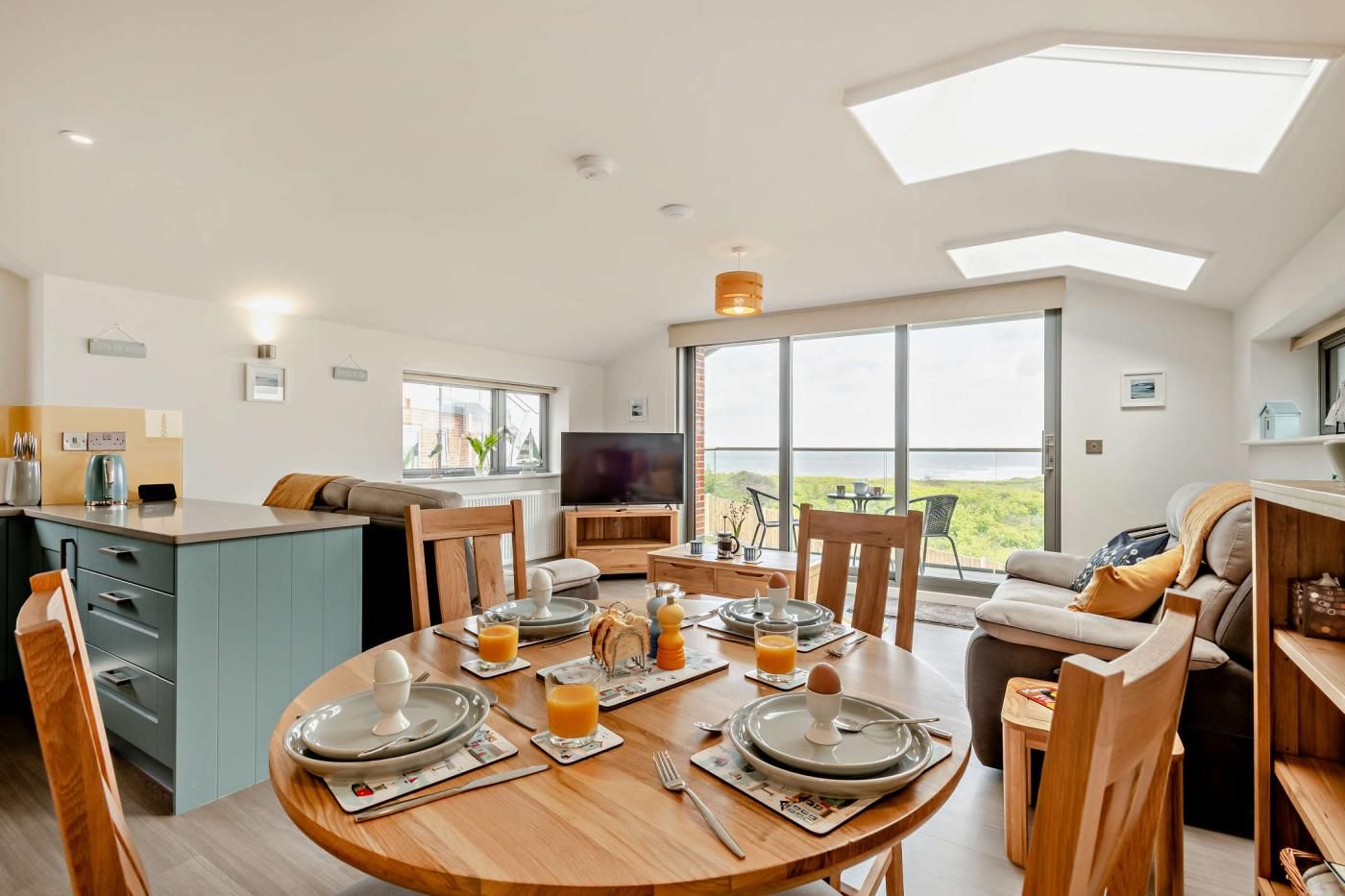 Offering panoramic far-reaching sea views, this elegant coastal retreat makes a wonderful holiday home for walkers, anglers, nature lovers and cyclists discovering a tranquil stretch of North Norfolk.