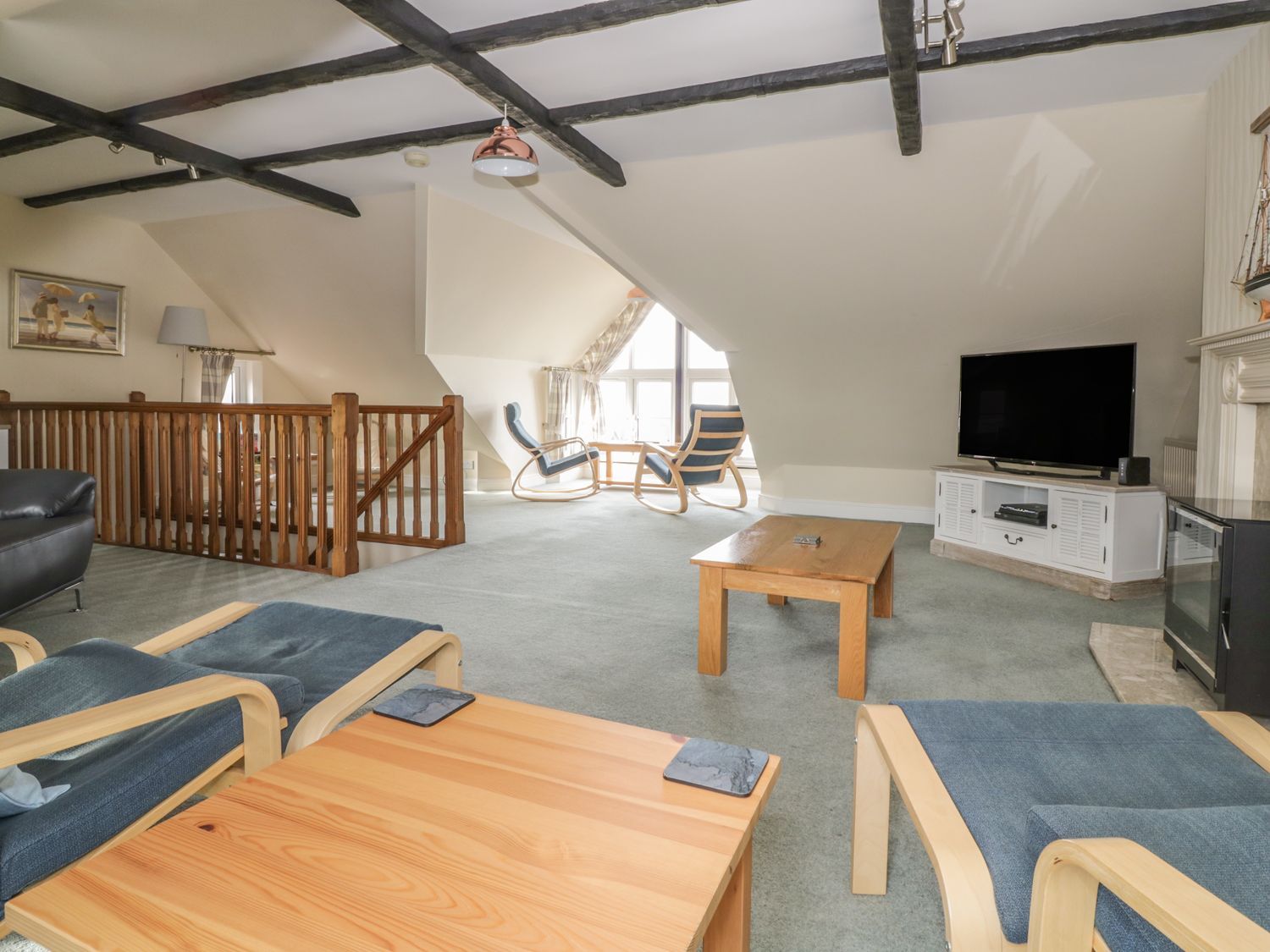 Two bedrooms: 1 x double, 1 x twin. Bathroom with bath, shower over, basin, and WC. First-floor Kitchen/diner. Second-floor sitting room with electric fire