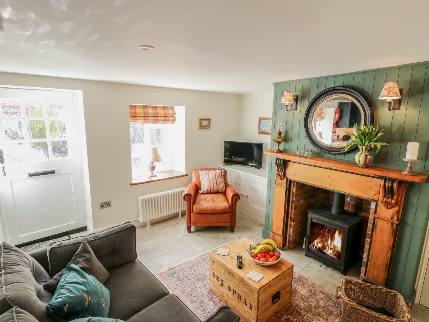 Holiday home The living areas in the property consist of an open-plan living space with kitchen equipped with electric oven and hob, microwave, fridge and a washing machine, a dining area with seating for four guests and a sitting area with Smart TV and woodburning stove. There is one king-size bedroom with TV, freestanding bath and en-suite walk-in shower, basin and WC. Outside there is a private front terrace with furniture, roadside parking available on a first-come, first-serve basis and a council car parking nearby with weekly permit available. Within 0.1 miles you will find a shop and pub and within 0.4 miles, a beach and please note that one well-behaved dog welcome but sorry, no smoking. WiFi, fuel, power, bed linen and towels are all included in the price. Seaspray is a lovely base for a romantic getaway in East Anglia. Note: No children. Note: Loading/unloading outside property only. Please note: Between September - March the property only accepts a minimum of 3 night bookings and April - August minimum of 7 night bookings starting on a Friday