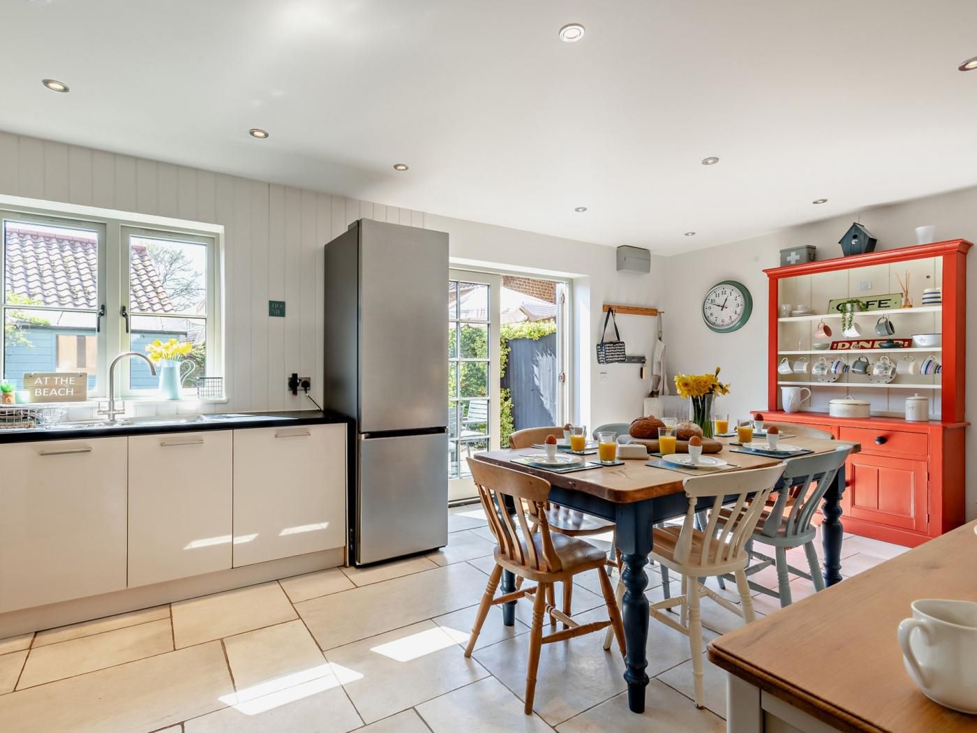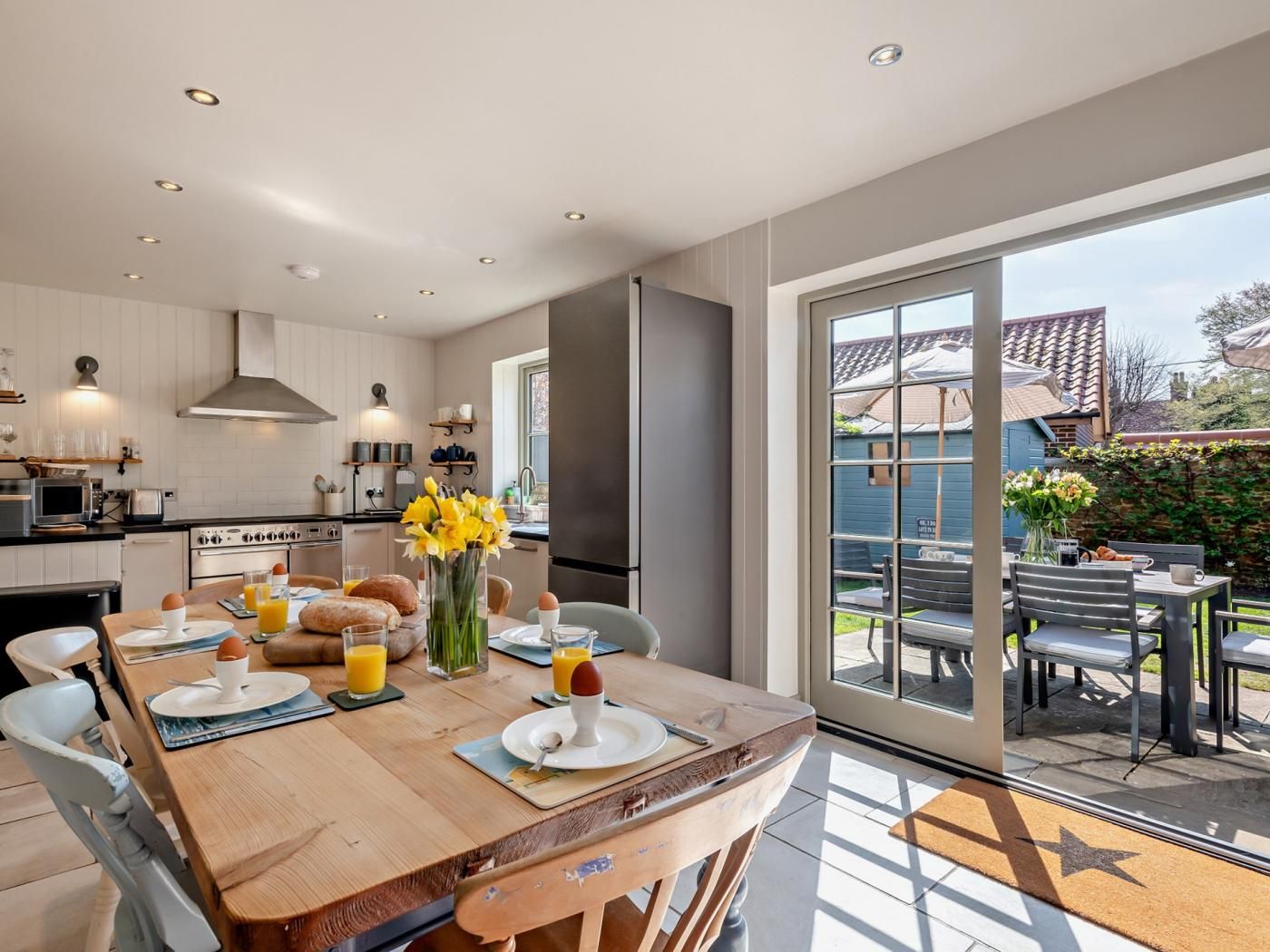 The first room you will find yourself in is a bright and spacious family kitchen which is very well equipped, with Rangemaster induction range cooker with 2 electric ovens, large Samsung fridge freezer, fully integrated dishwasher and washing machine, microwave, cafetiere, dualit kettle. Large refectory table with 6 chairs.