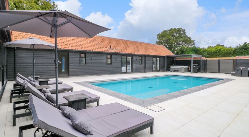 Holiday home Country Farm Barn in Acle near Norwich in Norfolk is a stunning property with four king-size bedrooms, all with TVs and three with en-suite facilities. There is also a family bathroom, a kitchen with two ovens and hobs, fridge/freezer, washing machine, tumble dryer and dishwasher, utility room, an open-plan living/dining room, a cinema room and a games room. Outside, there is off-road parking for up to eight cars and grounds that include an outdoor, private swimming pool, an outdoor shower, changing room and WC, hot tub, outdoor bar and barbecue area, lawns and a patio. Sorry, this is a non-smoking property and no dogs are allowed. A shop is within 1.9 miles and there is a pub within 1.7 miles. WiFi, fuel, power, bed linen and towels are all included in the price. Check-in is from 4pm, check-out by 10am. This property accepts bookings starting on a Monday or Friday only and short breaks must be a minimum of 3 nights. This property has a good housekeeping bond of GBP600. Please note the swimming pool will be closed and cannot be used between 31/10/25-1/04/26.