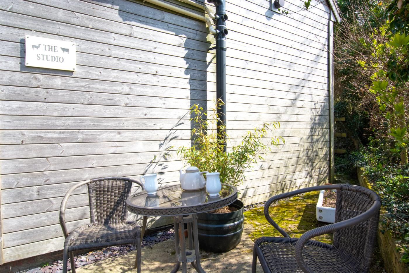 Stay in a converted artist's studio with characterful wooden features – like the beamed ceiling, staircase and cladded walls.