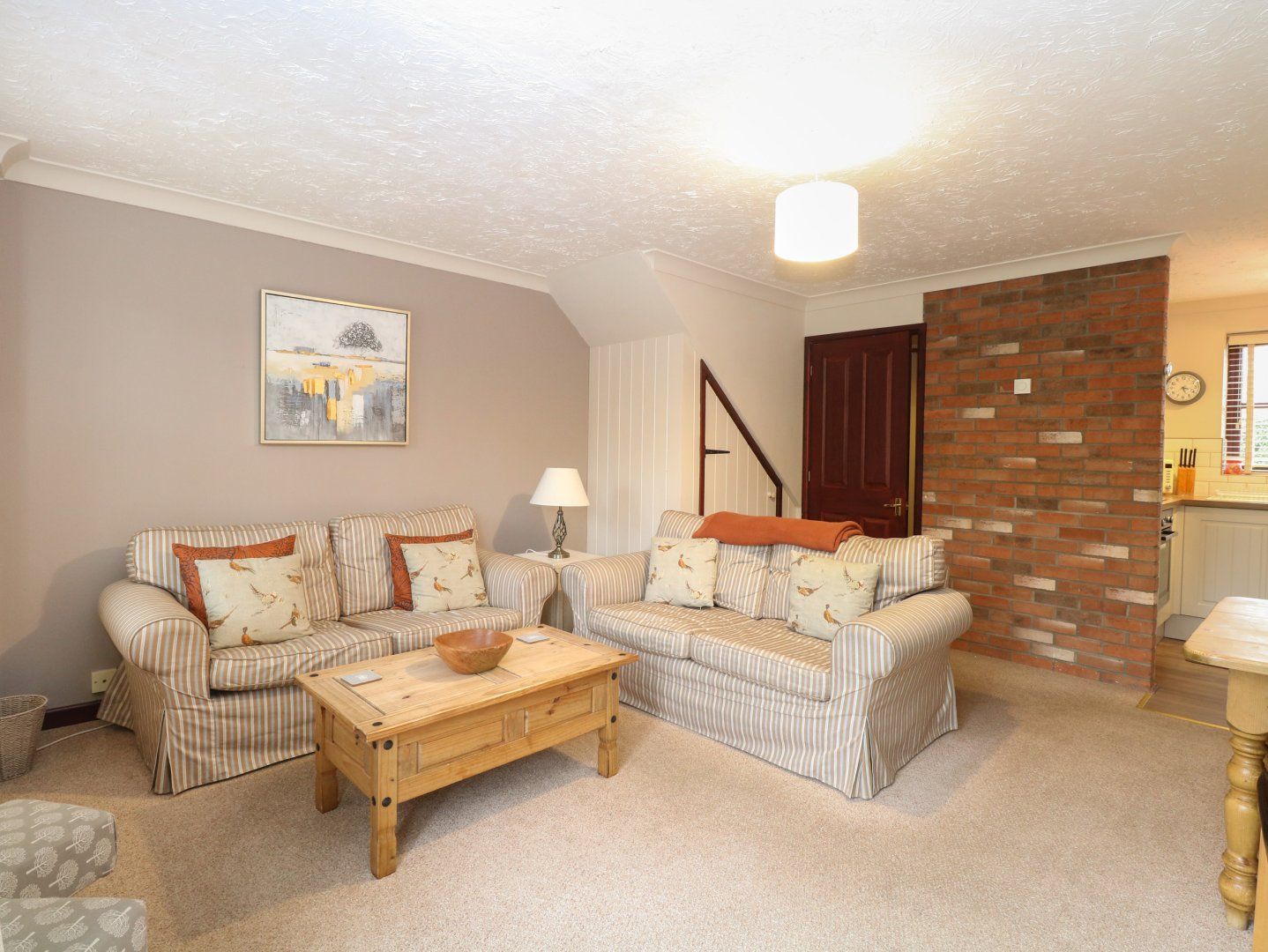 Amenities Oil central heating. Electric oven and hob, microwave, fridge, freezer and washing machine. Smart TV, WiFi. Fuel and power inc. in rent. Bed linen and towels inc. in rent. Off-road parking for 2 cars on site car park. Patio with furniture and access to shared grounds. Sorry, no pets and no smoking. Shop 2.9 miles, pub 0.6 miles. Note: Due to the lake on-site, children must be supervised at all times. Note: The stairs have a handrail. Note: Check-in from 4pm and check-out by 10am. Note: The washing machine is communal and can be used at a small extra charge. Note: Please note that electric vehicle charging is not permitted at the cottage as it is a rural location and the electrical supply cannot carry such a load