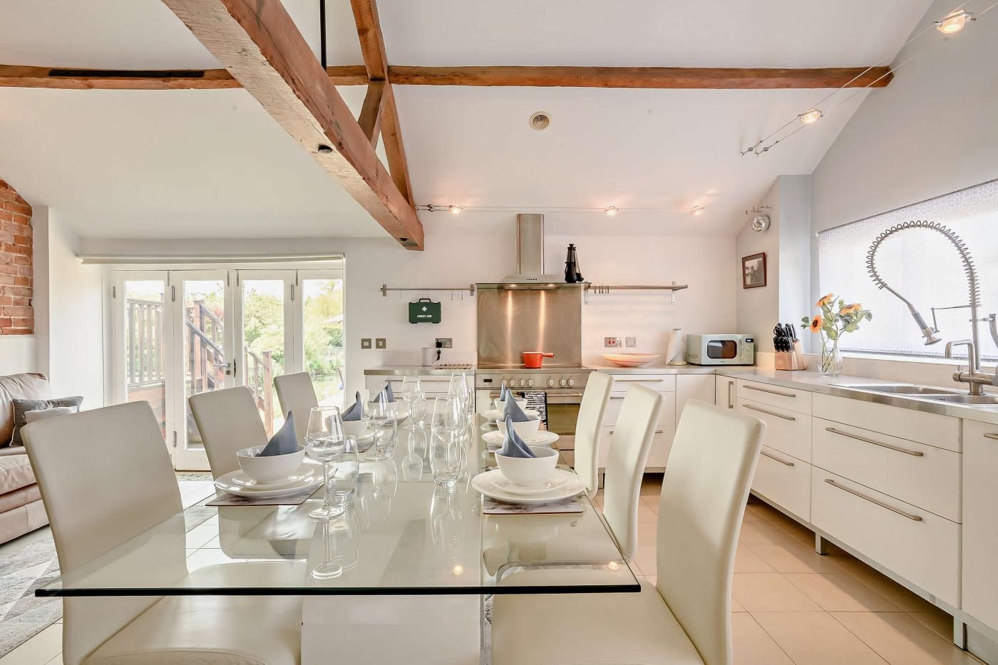 Sleeping eight guests, and offering dog-friendly accommodation, the four-bedroom, three-storey abode makes an outstanding group holiday home. Ideal for an extended family or large party of friends, it comes with a superb outside space and a private mooring.