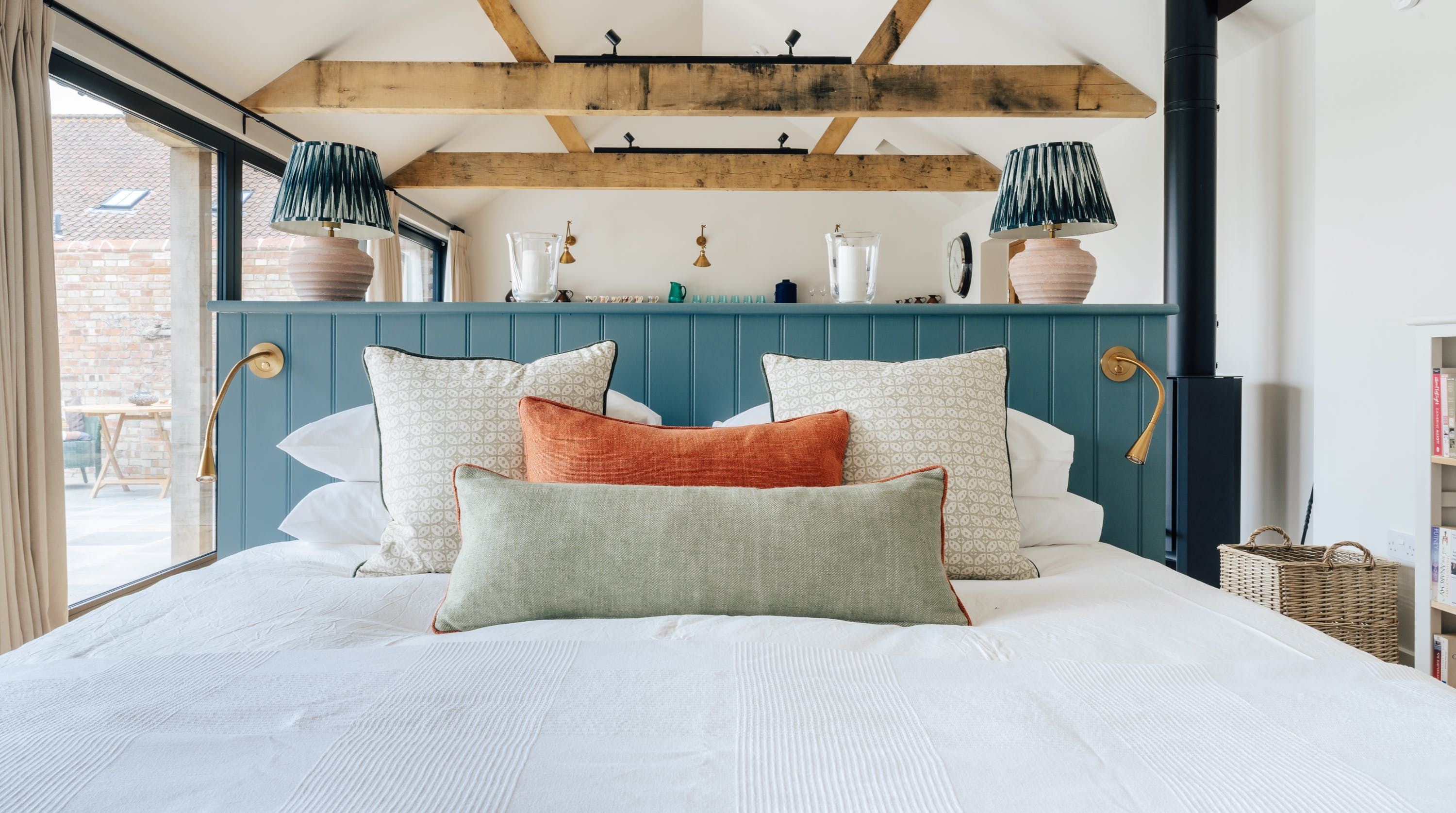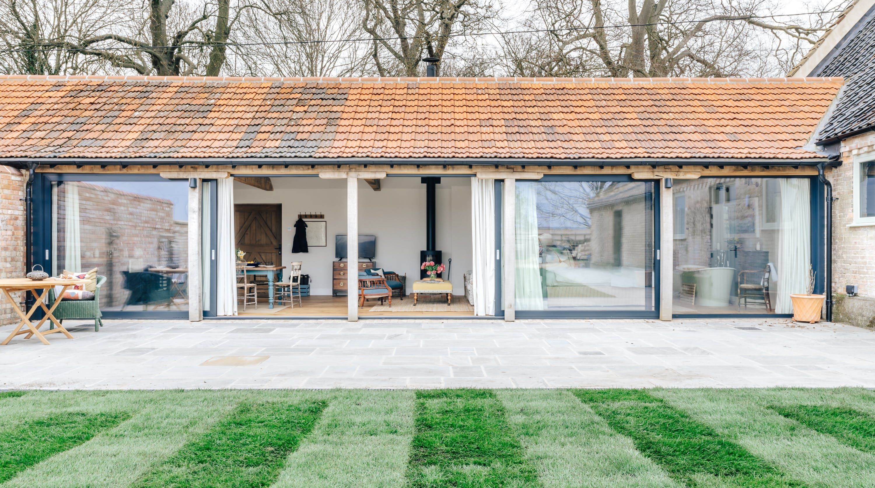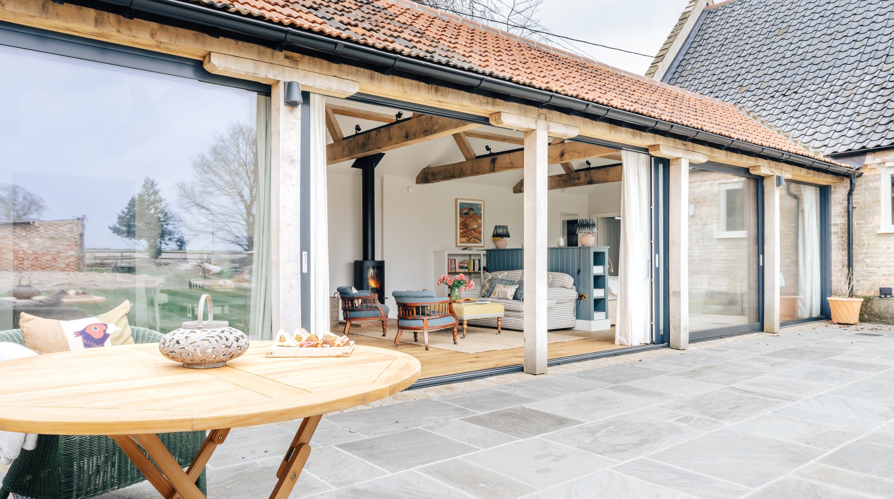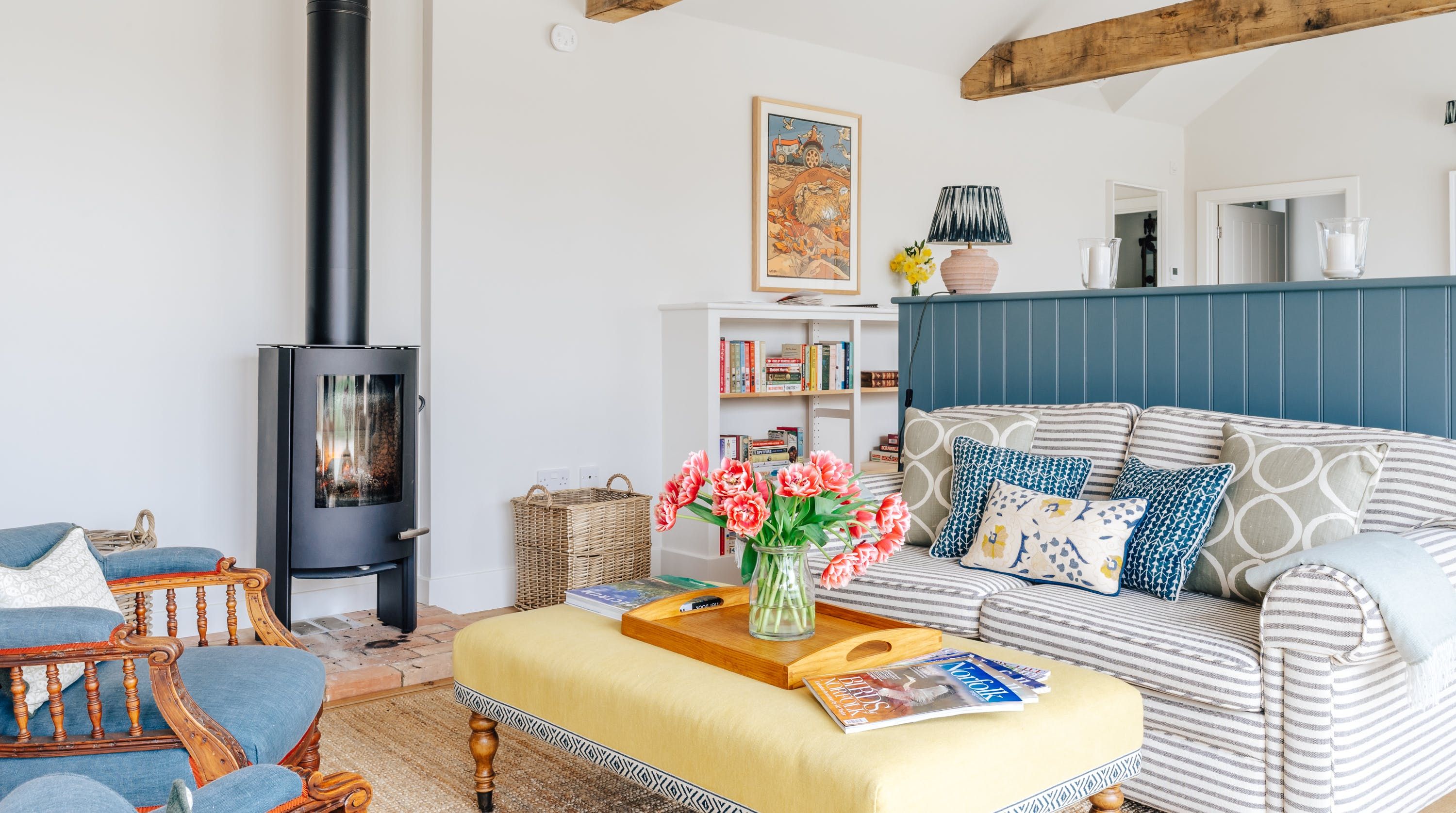 Inside, vaulted ceilings sport original wooden beams, while enormous glass walls flood the space with sunlight. Books and board games line the shelves, cushy sofas are perfect for snuggling and a delightful wood burner keeps everything toasty warm on chilly evenings. We love the small but well-equipped kitchen – you'll have everything you need to rustle up dinner – and the sumptuous bathtub is just the ticket after an invigorating walk through the countryside. On summer days, take your relaxing onto the private courtyard garden, gathering around the fire pit and firing up the barbecue for an alfresco feast when you grow peckish.