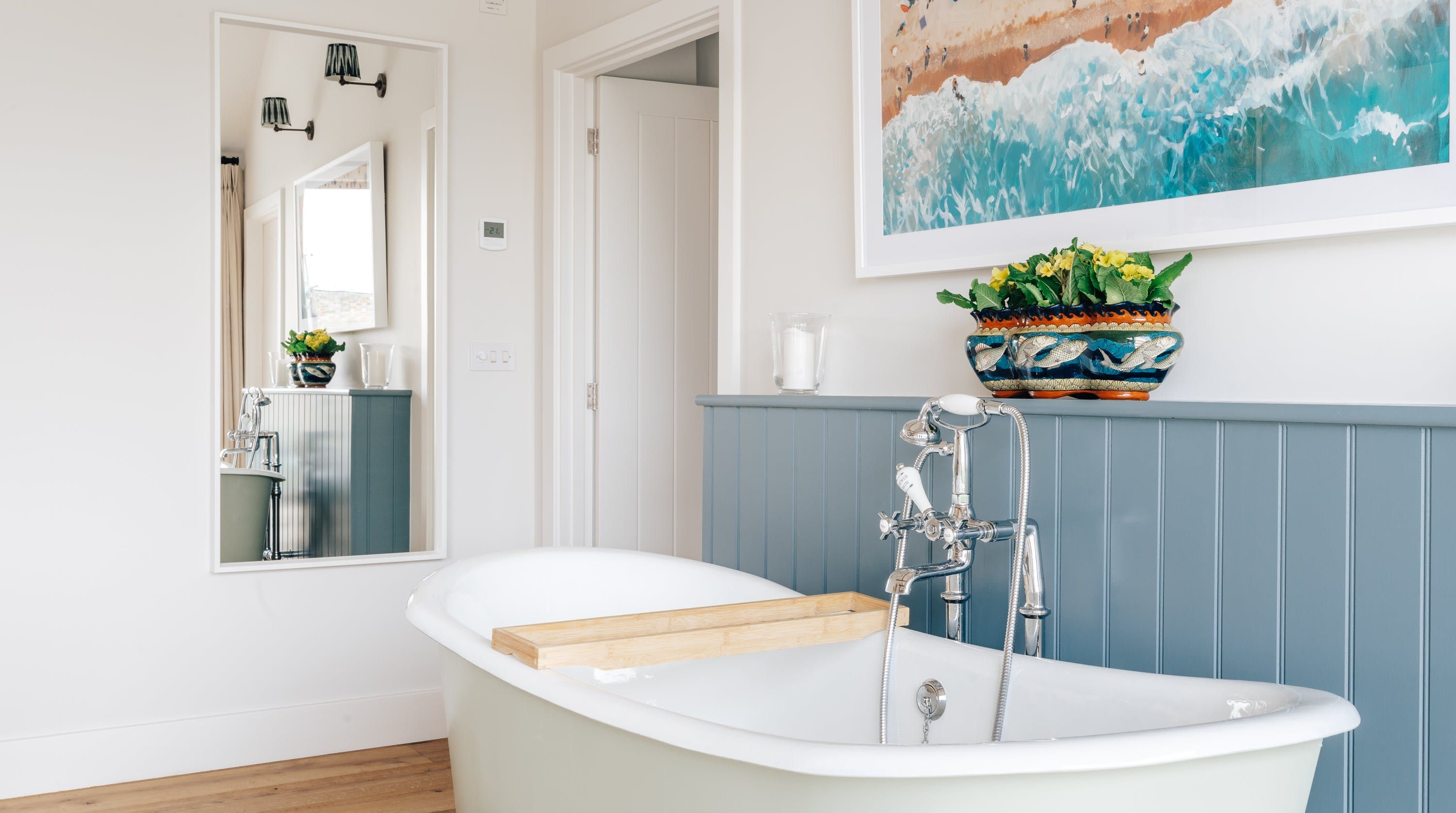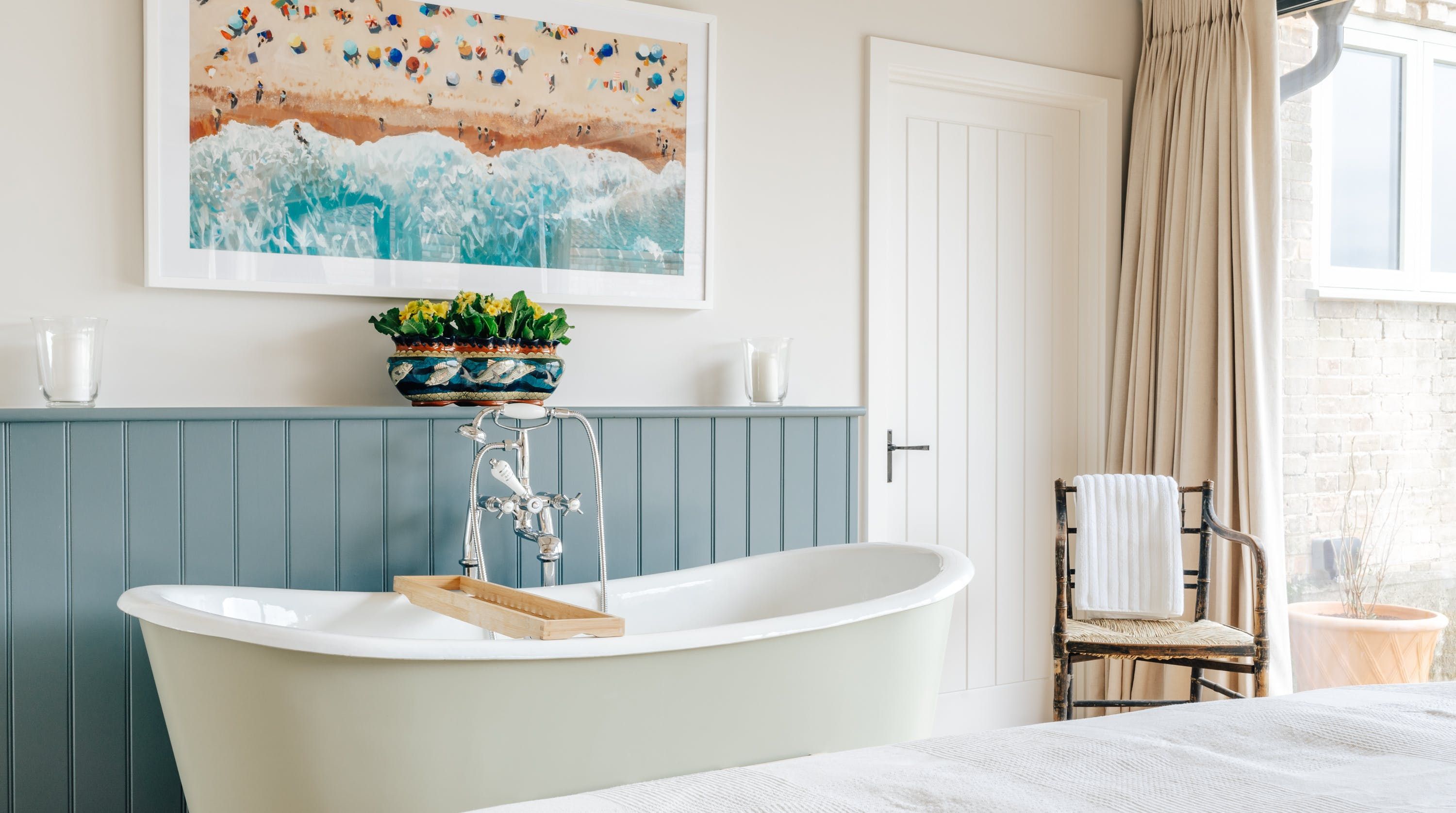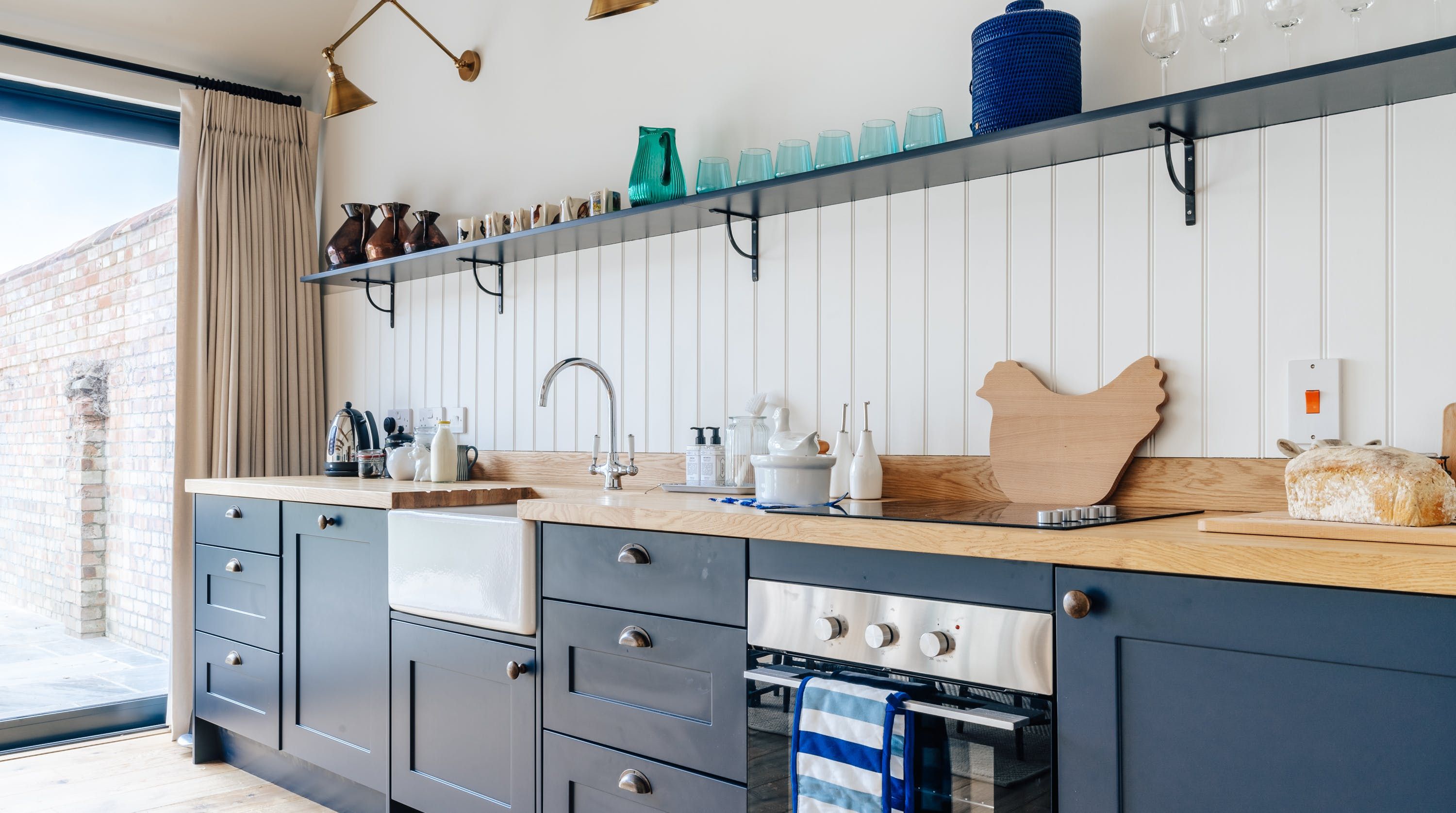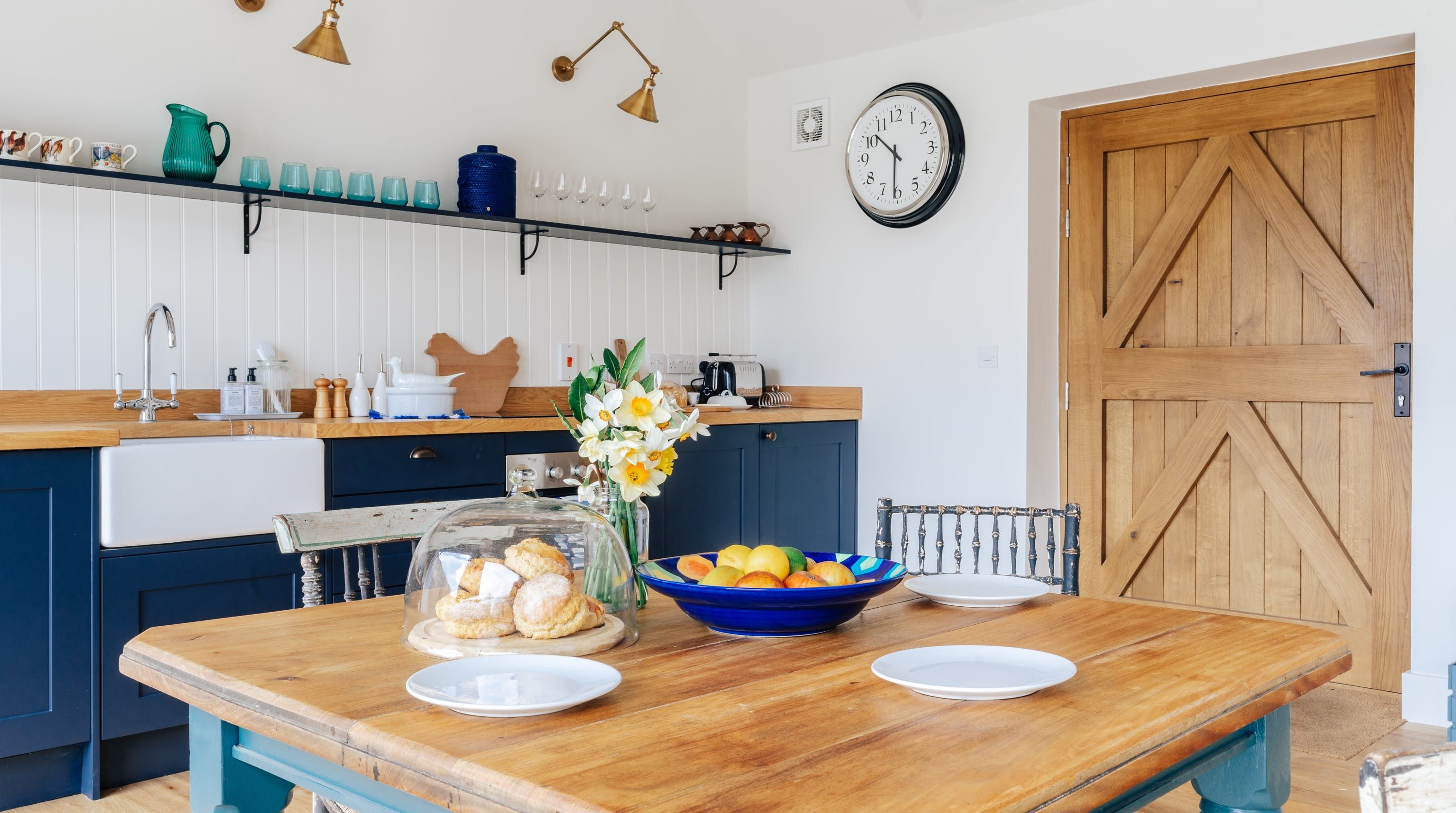 Inside, vaulted ceilings sport original wooden beams, while enormous glass walls flood the space with sunlight. Books and board games line the shelves, cushy sofas are perfect for snuggling and a delightful wood burner keeps everything toasty warm on chilly evenings. We love the small but well-equipped kitchen – you'll have everything you need to rustle up dinner – and the sumptuous bathtub is just the ticket after an invigorating walk through the countryside. On summer days, take your relaxing onto the private courtyard garden, gathering around the fire pit and firing up the barbecue for an alfresco feast when you grow peckish.