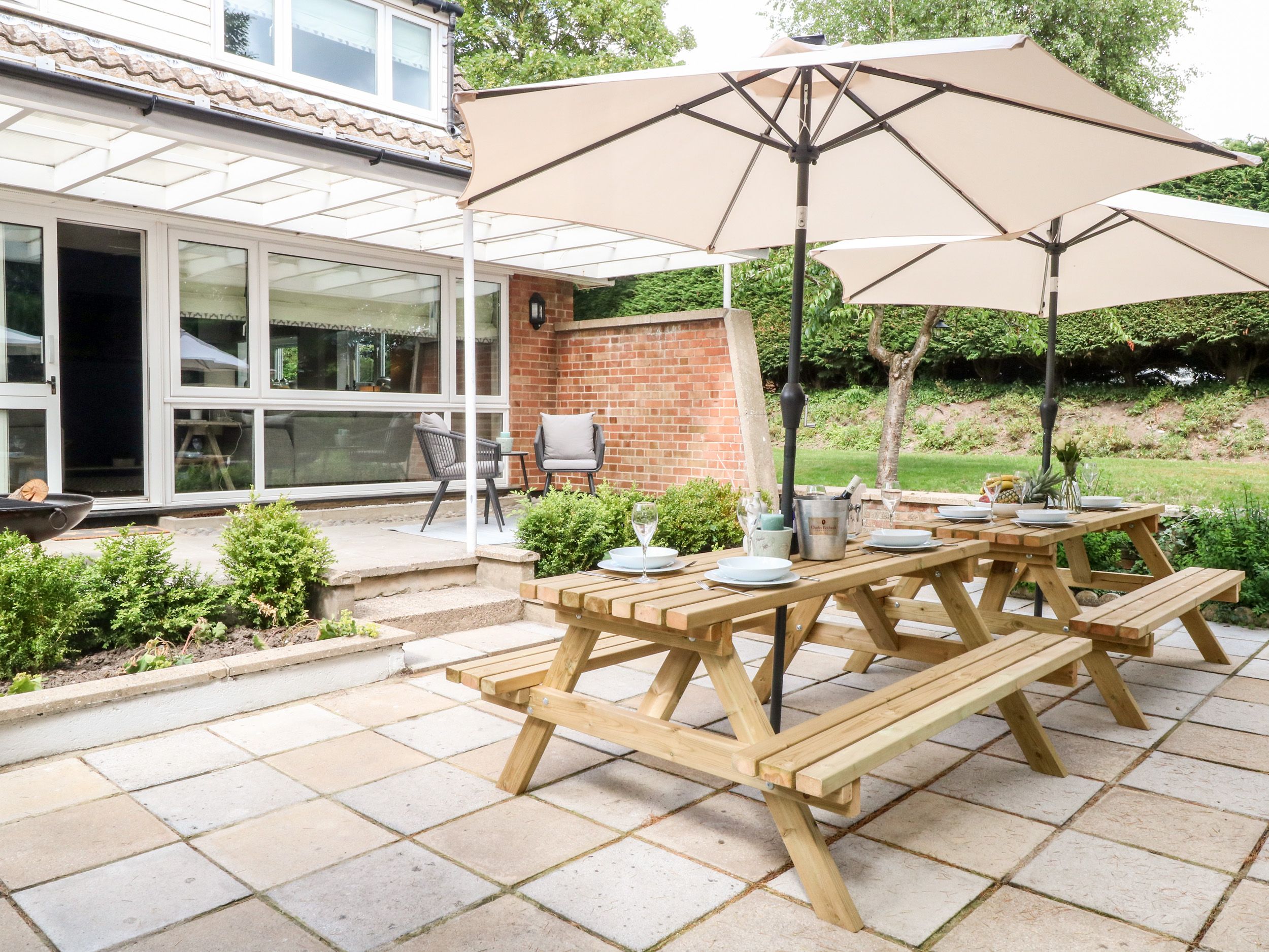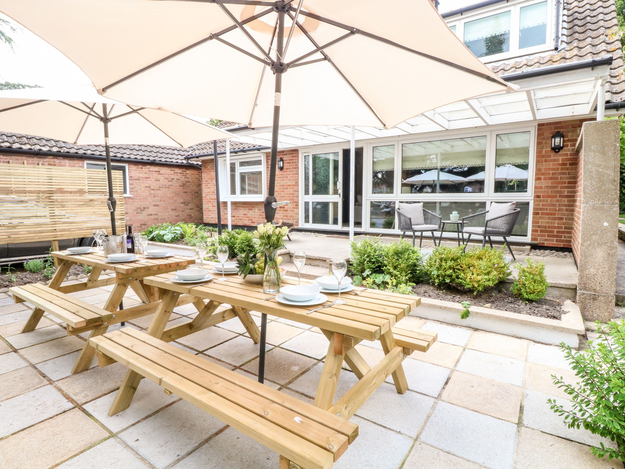 Church Farm Bungalow is a detached cottage resting in Weybourne, East Anglia. Hosting four bedrooms, including a king-size, a ground-floor double, a twin and a ground-floor twin, along with a ground-floor bathroom and a shower room, this property can sleep up to eight guests. There is also a kitchen diner, a sitting room and an external utility with WC. Outside there is Private driveway parking for three cars, a fourth can be parked on the grravelled area next to the garage. a rear garden with gravel and access to the external utility, a side garden with lawn, and a front garden with a veranda, patio and furniture. Church Farm Bungalow is a lovely setting for your next trip to Norfolk.