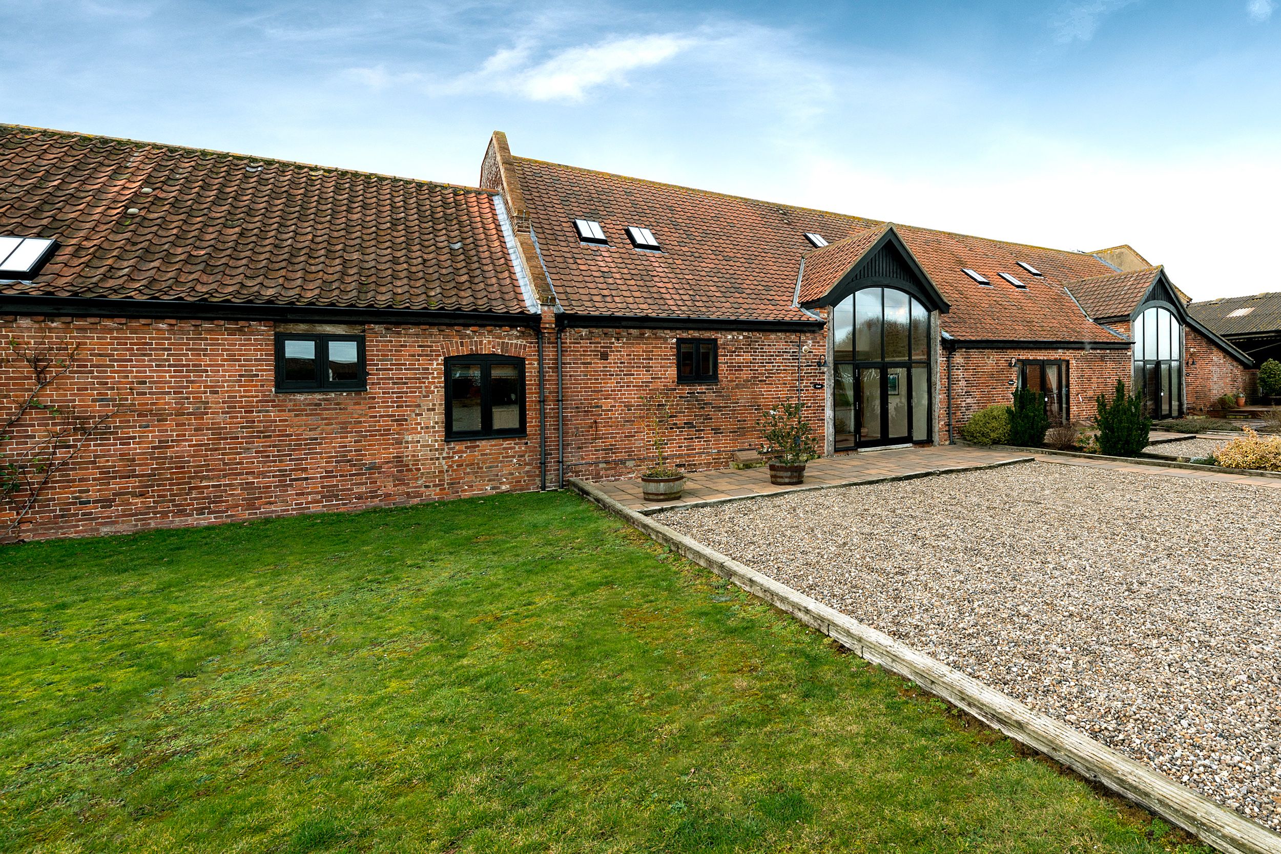Holiday home Three bedrooms: 1 x king-size with en-suite with walk-in shower, basin and WC, 1 x king (Zip/link - Twin upon request), 1 x twin. Shower room with shower, basin and WC. Bathroom with bath, shower, basin and WC. Kitchen/sitting/dining room. Communal games room, gym, soft play and hot tub. Farm shop on site. Gas heating. Electric oven, gas hob, microwave, fridge, freezer, dishwasher, filter coffee machine, washing machine. Smart TV, WiFi. Bed linen and towels inc. in rent. Travel cot and high chair available on request. Off-road parking. Garden with furniture, patio and lawn. Sorry no smoking. Shop 0.1 miles, pub 0.6 miles. Note: There is an EV charger on site, shared between the eight units. Note: Wheatacre Barns houses many fantastic facilities for the eight barns to share, these include a games room, fitness suite, soft play barn and hot tub.