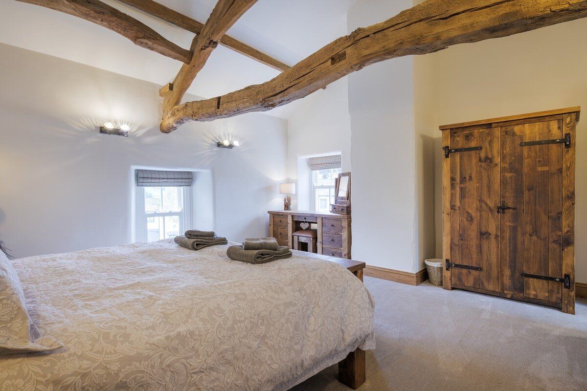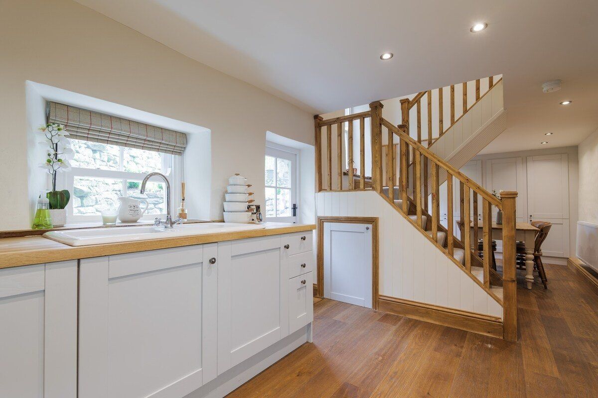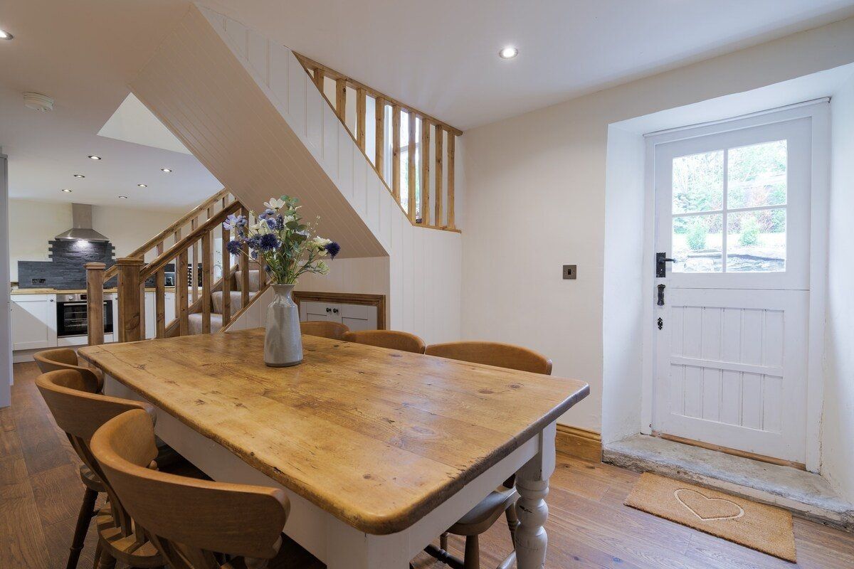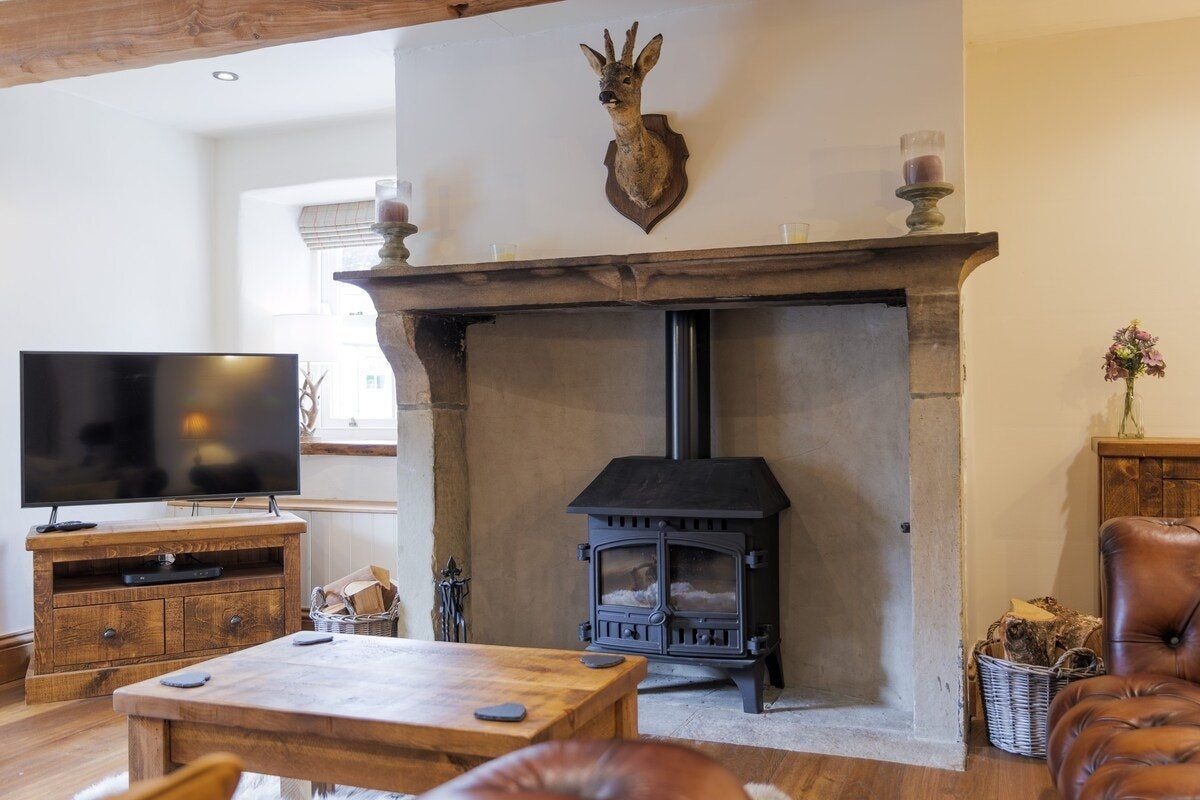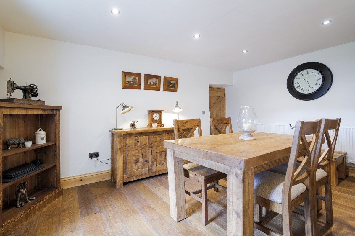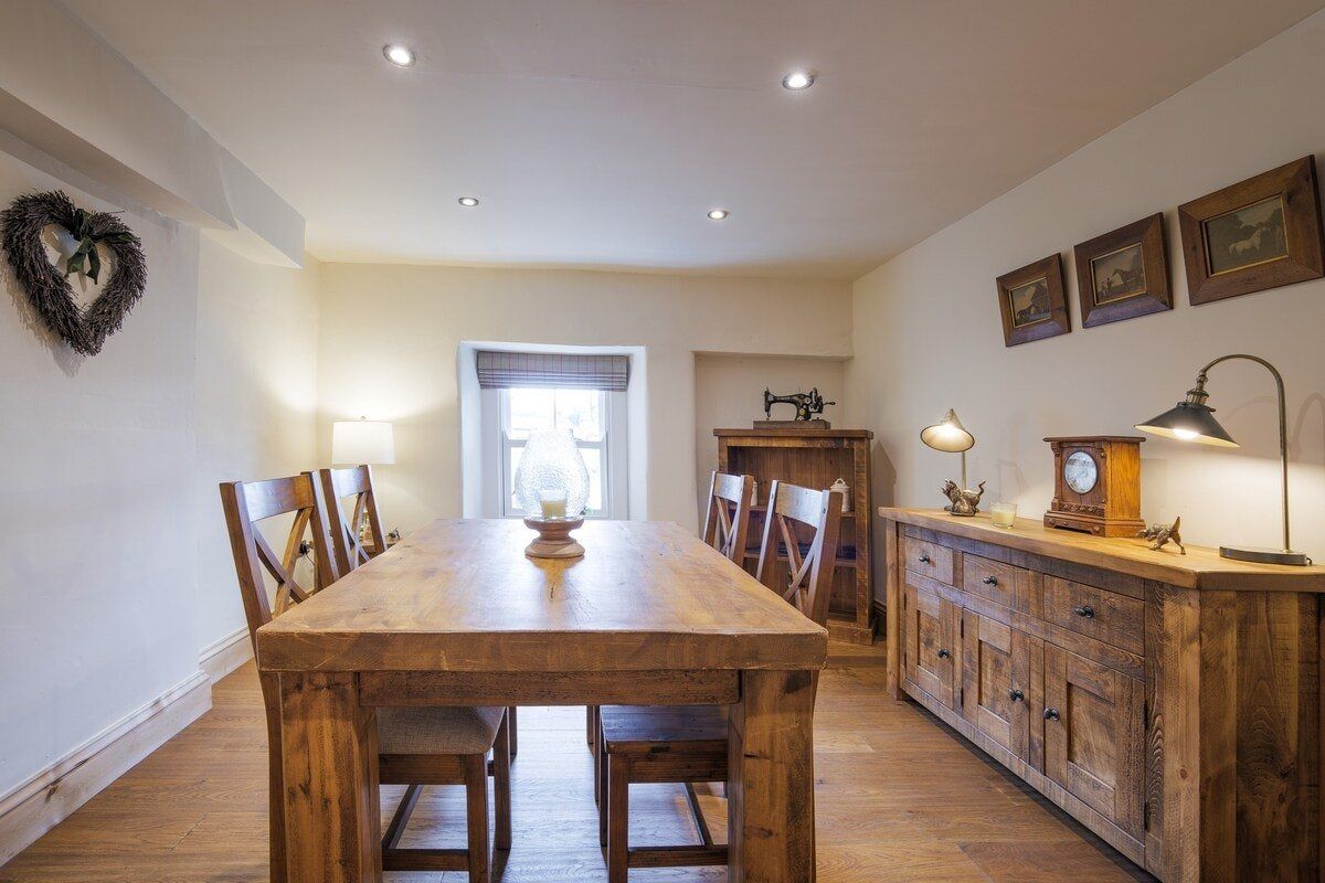 In the charming village of Austwick, this cosy cottage is the perfect retreat after a day exploring the Yorkshire Dales right on your doorstep. Perfectly located, you'll find more picturesque walking trails nearby than you can shake a hiking pole at (maps can be picked up within the village). Alternatively, jump in the car and reach White Scar Cave in less than fifteen minutes or visit the beautiful glacial lake of Malam Tarn, only 7-miles from home. Back inside, the original wooden beams and stone fireplace will soon have you feeling all warm and relaxed. Sink into a brown chesterfield sofa, cradle a cup of hot cocoa, and settle down for a delightful evening in front of the crackling log burning stove – we can think of nothing better after an adventurous day wandering the natural landscape. In warmer months, sprawl out into the back garden and enjoy a bottle of fizz while overlooking views of the Three Peaks area of the Yorkshire Dales National Park. As dinner time arrives, ensure you take the short five-minute drive down to The Courtyard Dairy, where you can taste local cheeses and sample their cakes and buns while enjoying a cup of tea or coffee. Return home with your top picks, and fix together a wine and cheese night in the country-style dining area. Or if you feel like handing over all catering duties during your stay, the cottage is next door to a traditional Yorkshire pub, while an award-winning hotel and restaurant is a short walk up the road.
