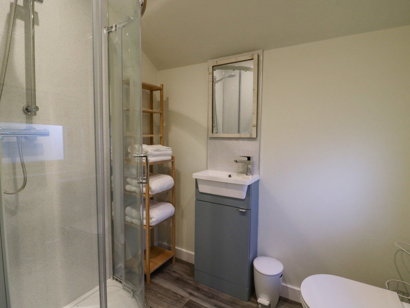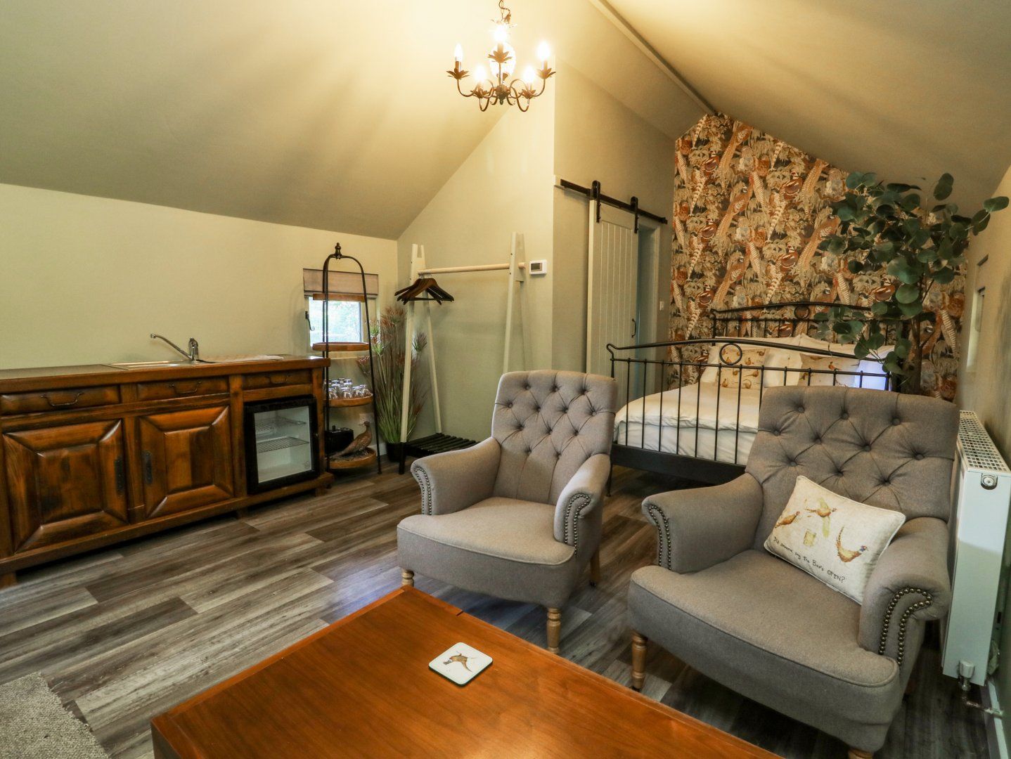 Accomodation Details Single-storey. Studio-style layout with king-size bed, kitchenette, and sitting area. Shower room with walk-in shower, basin, and WC