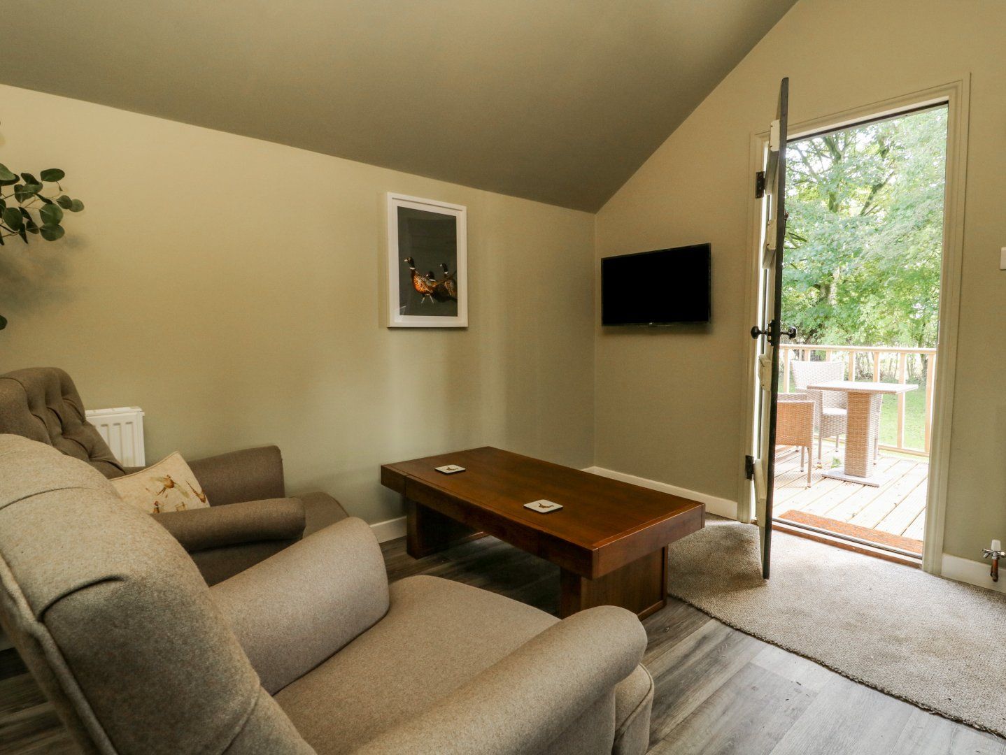 Holiday home The living areas in this single-storey property consist of a kitchen with a microwave, fridge, kettle, coffee machine, and toaster, and a sitting area with Smart TV. There is also a king-size bed, and a separate shower room. Outside there is a front decked area with furniture and a barbecue, and ample parking in the pub car park. Sorry, this is a pet-free and smoke-free property. WiFi, fuel, power, bed linen and towels are all included in the price. You'll find a shop in 2.7 miles and a pub in 0.1 miles. Pheasant is well-positioned to explore the North Yorkshire countryside. Note: There are steps up to the property. Note: There is a field of alpacas located next door.