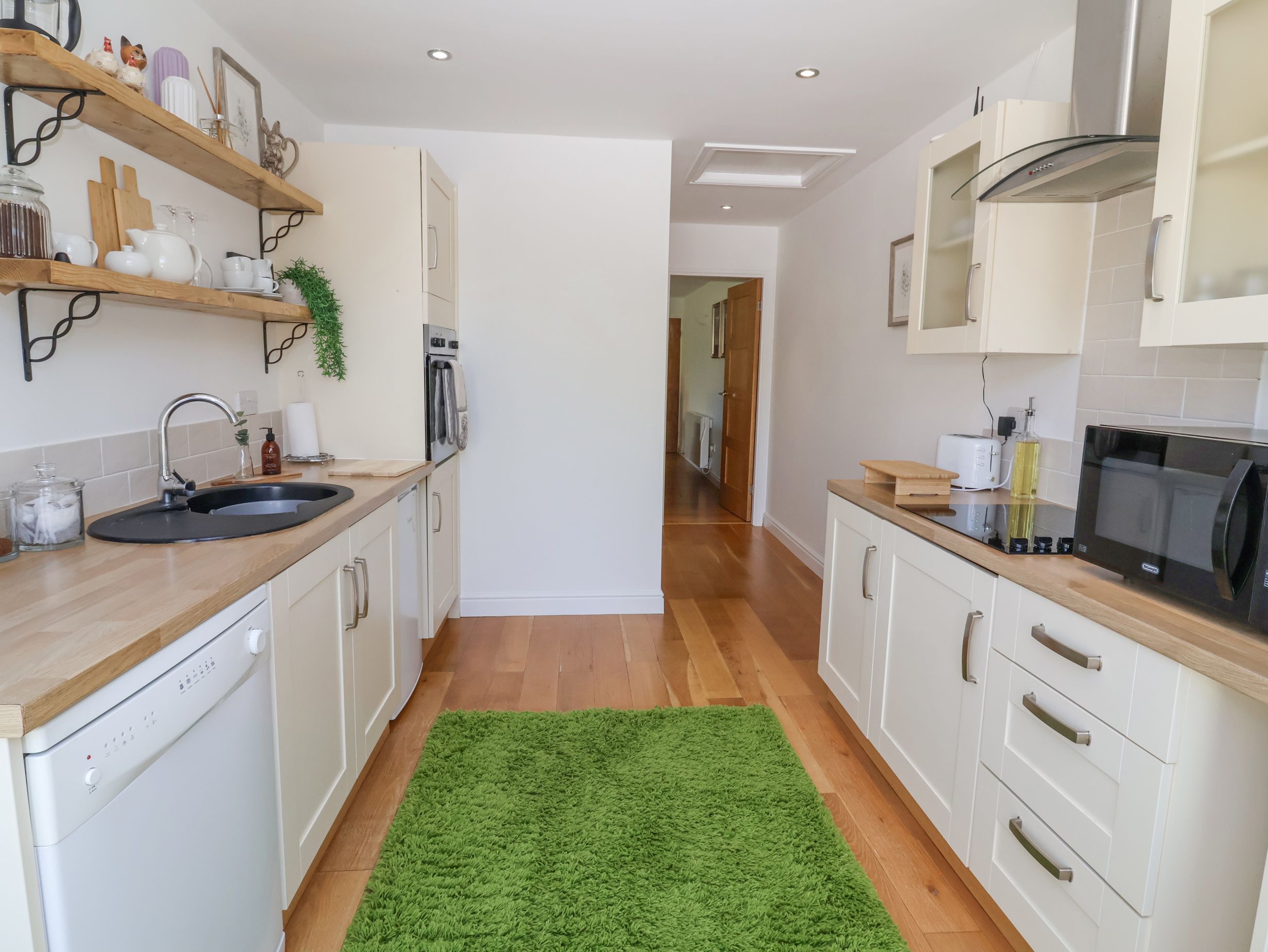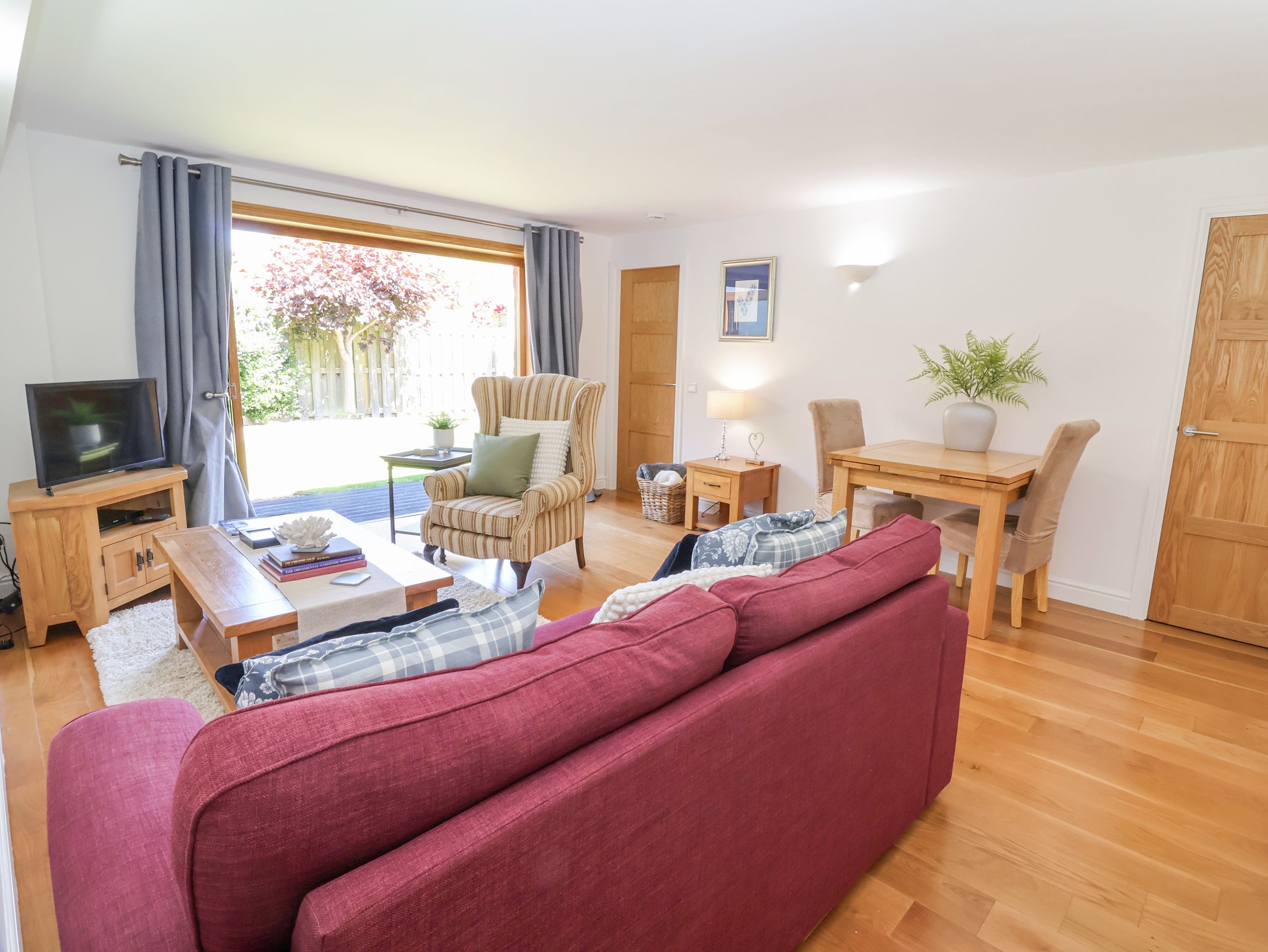 Electric central heating. Oven, hob, microwave, fridge/freezer, dishwasher. TV, WiFi. Fuel and power inc. in rent. Bed linen and towels inc. in rent. Off-road parking available. Enclosed rear garden with decking, lawn, gravel, and furniture. Sorry, no pets and no smoking. Pub 0.3 miles, shop 0.2 miles