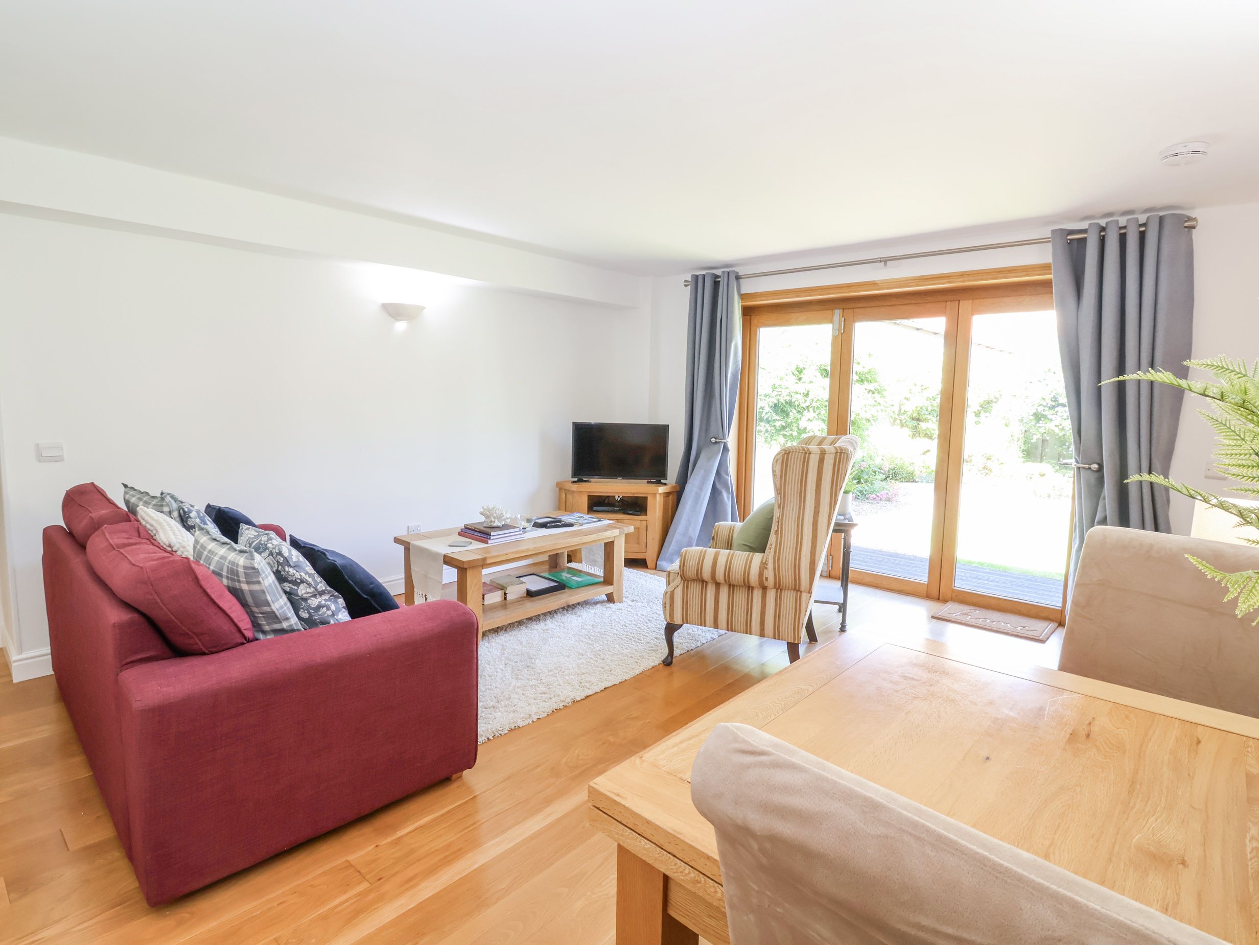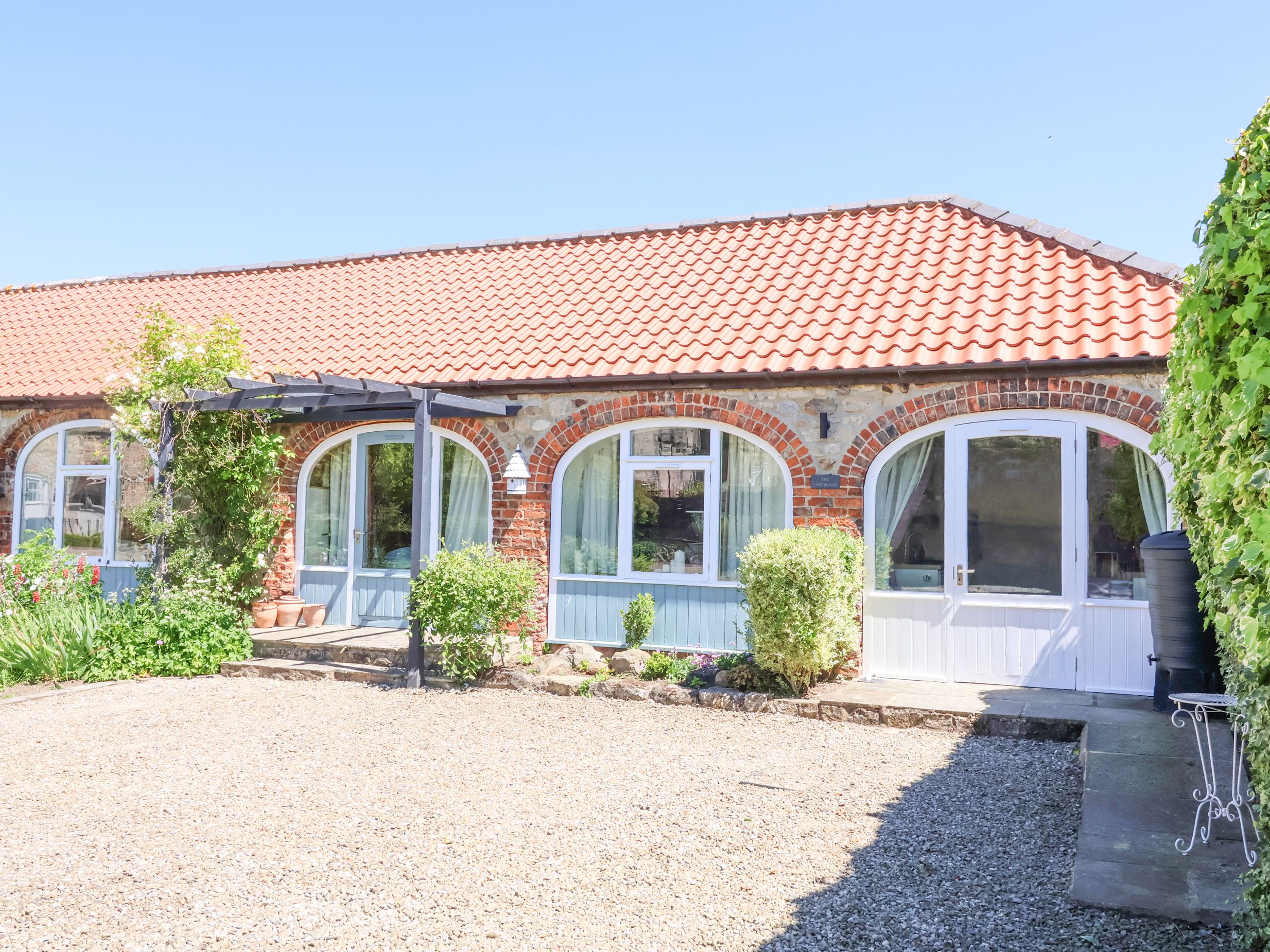 The Carthouse, a single-storey bungalow, consists of a kitchen with oven, hob, microwave, fridge/freezer, dishwasher, and air fryer, and a living/dining room with TV and dining table for two. The bedroom is a double with an en-suite walk-in shower. Outside, there is an enclosed rear garden with decking, lawn, gravel, and furniture, and off-road parking available. Sorry, no pets and no smoking. Pub 0.3 miles, shop 3.2 miles. WiFi, fuel, power, bed linen and towels are all included in the price. Stay at The Carthouse for your next picture-perfect holiday.