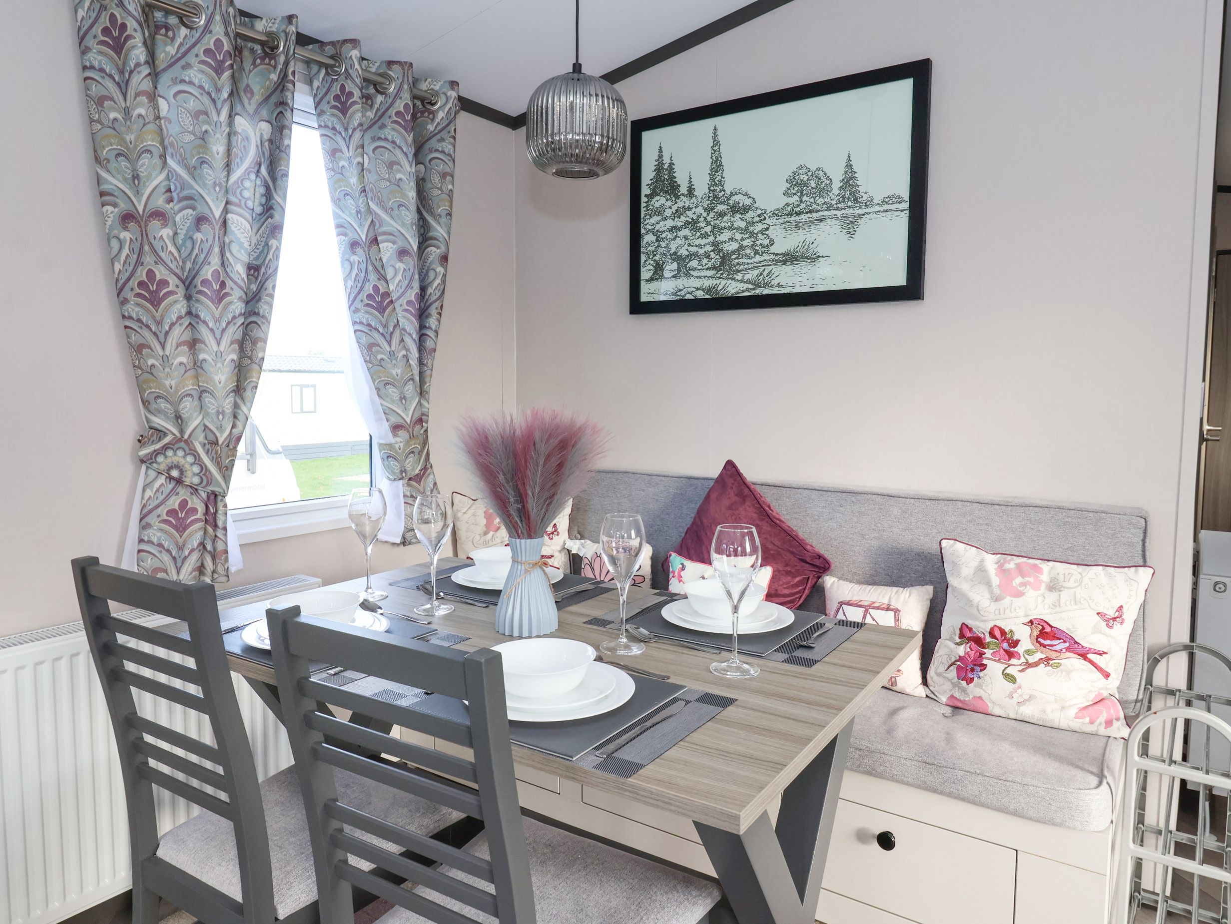 Amenities Gas central heating. Electric oven, gas hob, microwave, fridge/freezer, Airfryer. Smart TV, TV, WiFi. Fuel and power inc. in rent. Bed linen and towels inc. in rent. Highchair and travel cot available. Designated parking for 1 car, with additional parking on-site. Enclosed, wrap-around decked veranda with furniture and hot tub. Two well-behaved dogs welcome. Sorry, no smoking. Shop 1 mile, pub 4.5 miles. Note: There are steps up to the lodge, please take care. Please note: Filey is 9 miles away from the site. Please note: On site bar is only open from Thursday - Sunday.