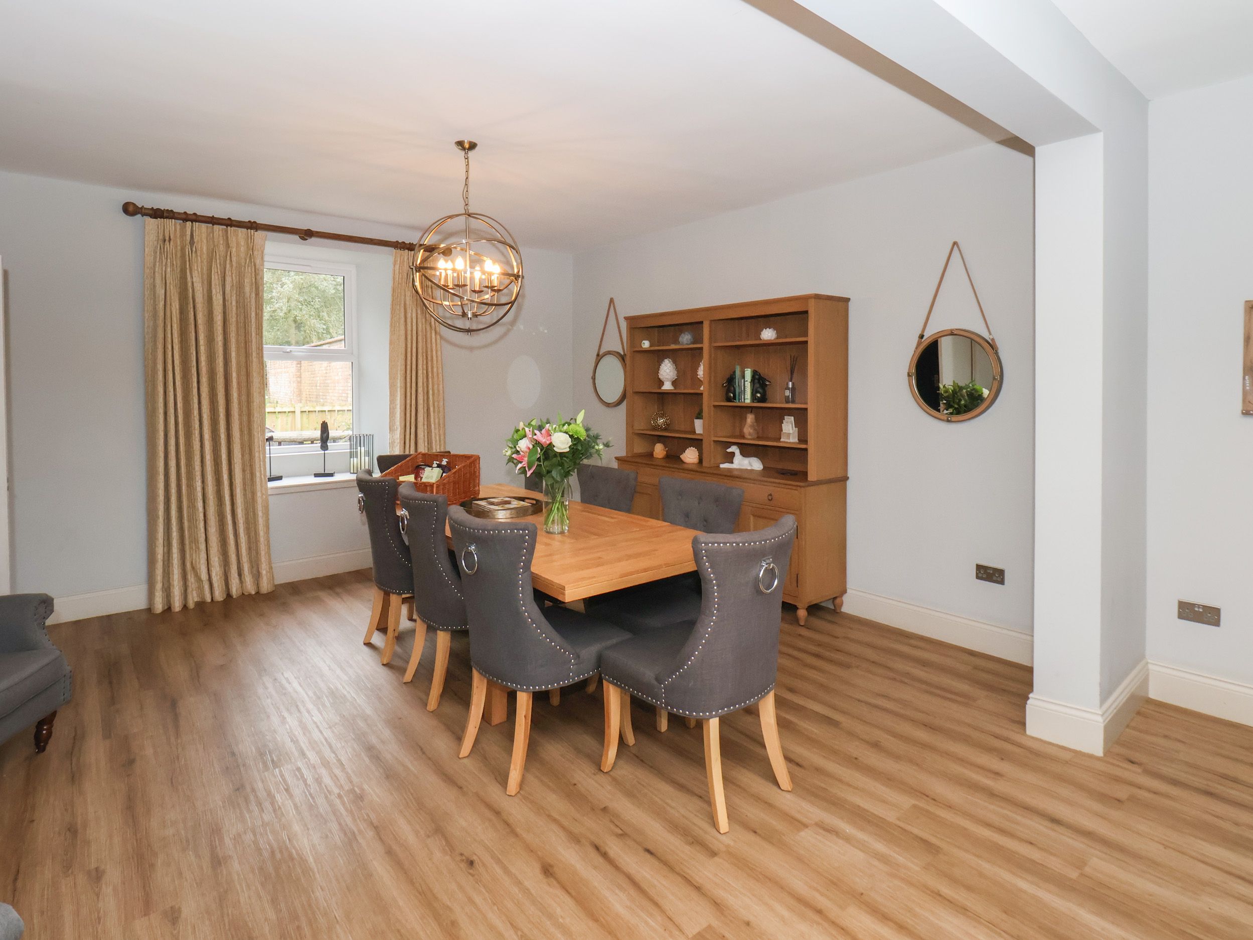 Accomodation Details Four bedrooms: 1 x king-size with en-suite walk-in shower, basin and WC, 1 x ground-floor king-size, 1 x king-size, 1 x twin. Shower room with walk-in shower, basin and WC, Ground-floor cloakroom with basin and WC. Kitchen/diner. Sitting room with open fire