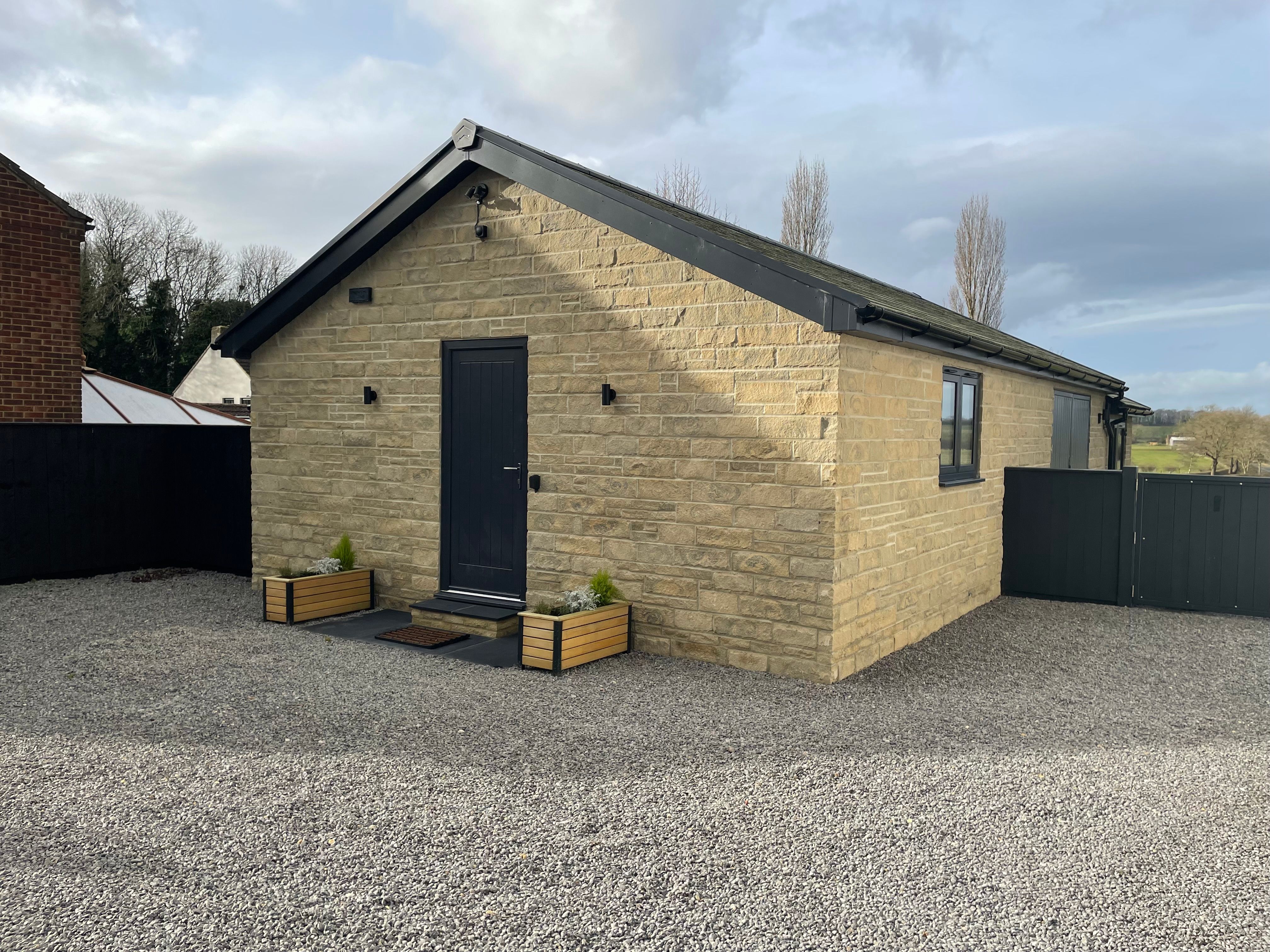 Accomodation Details Single-storey. Studio-style layout with king-size bed and open-plan living space with kitchen and sitting area. Shower room with walk-in shower, basin, and WC. Outdoor seating area