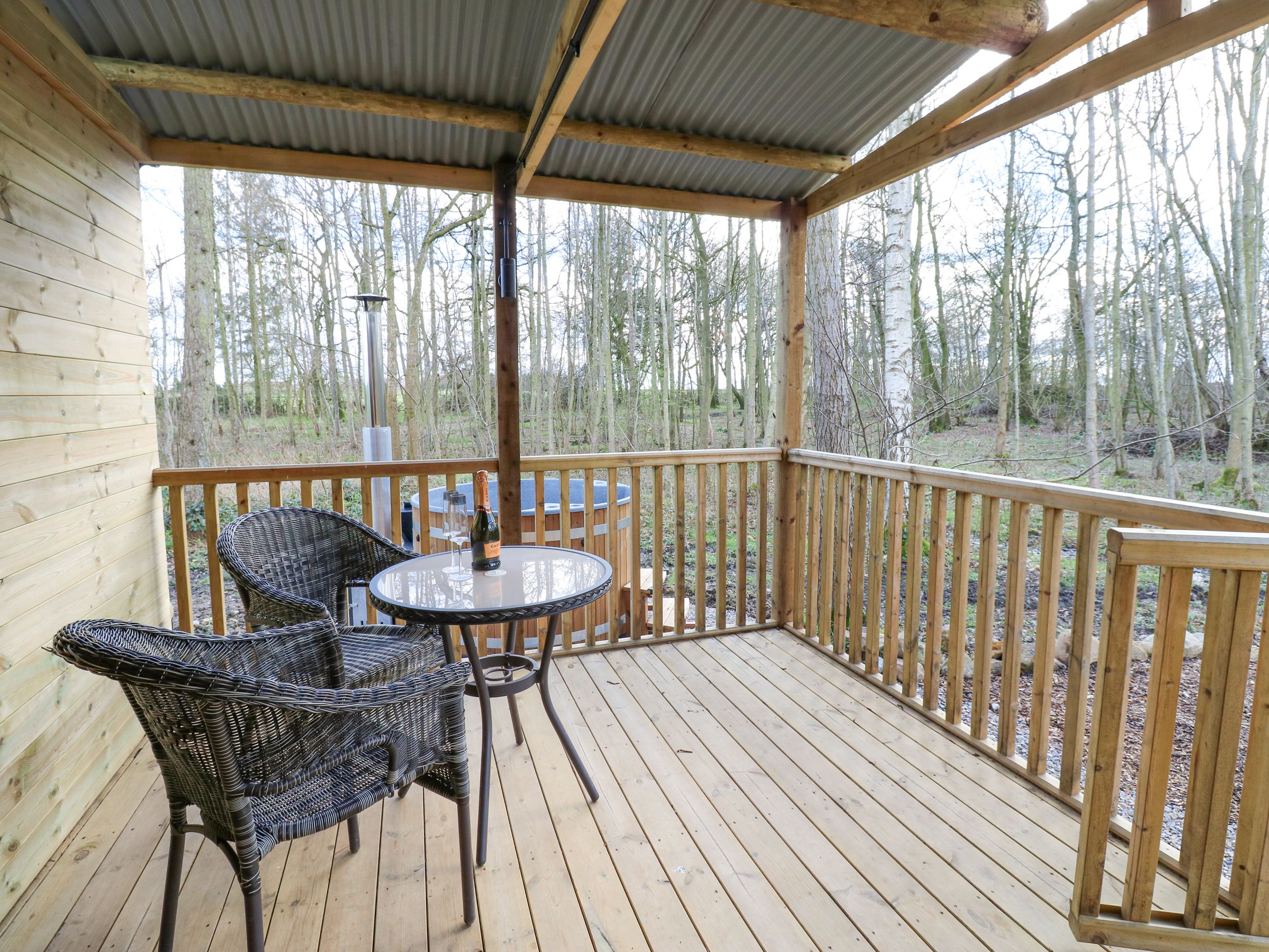 Amenities Electric central heating. 2-ring gas hob, fridge, kettle. Fuel, power and starter pack for woodburning stove inc. in rent. Bed linen and towels inc. in rent. Off-road parking. Decking with furniture, hot tub and barbecue. No smoking. Shop 2.1 miles, pub 1.3 miles. Note: This property has no WiFi. Note: There are steps up to the property, please take care. Note: Adult only. Note: Additional logs will need to be purchased from the owner or locally. Note: Property is located in woodland area so may be dark, torch provided but please feel free to bring your own. 1 well behaved pet allowed.