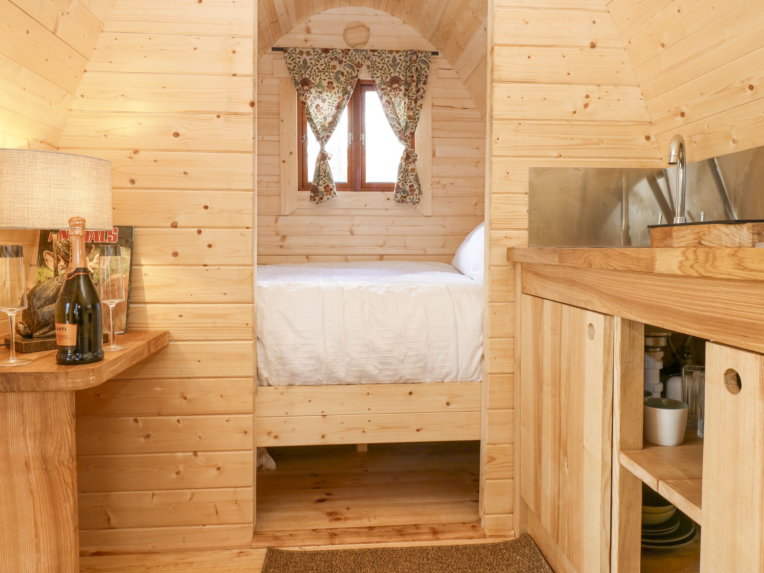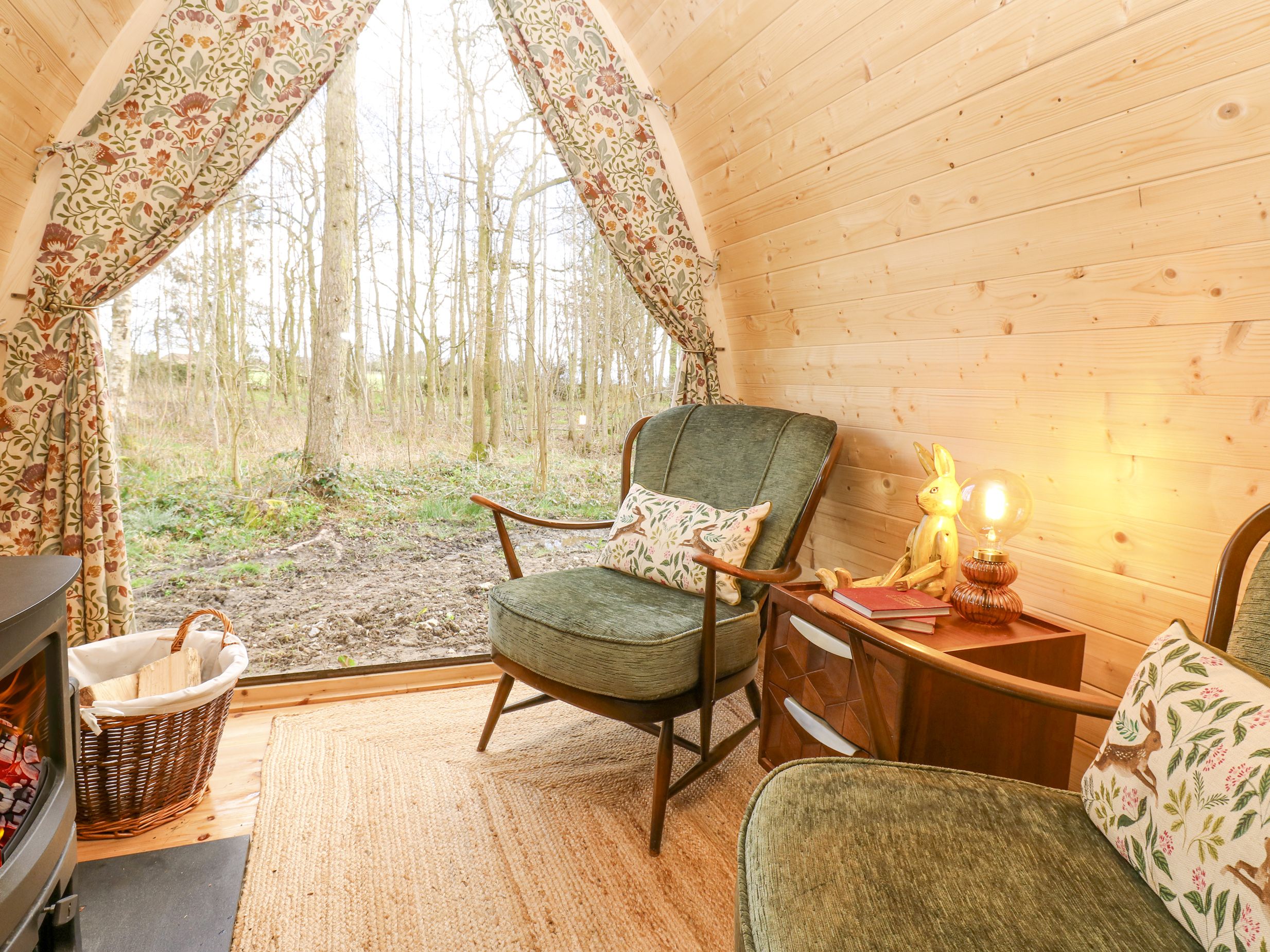 Holiday home The Leveret consists of a studio-style layout including a double bed, kitchen with a 2-ring gas hob, fridge, kettle, a dining area, and sitting area with woodburning stove, along with a wetroom. Outside, there is decking with furniture, hot tub and barbecue, plus off-road parking. 1 well behaved pet allowed. No smoking. Shop 2.1 miles, pub 1.3 miles. Fuel, power, starter pack for woodburning stove, bed linen, and towels are all included in the price. The Leveret makes a splendid countryside escape for you and your loved one. Note: This property has no WiFi. Note: There are steps up to the property, please take care. Note: Adult only. Note: Additional logs will need to be purchased. Note: Property is located in woodland area so may be dark, torch provided but please feel free to bring your own.