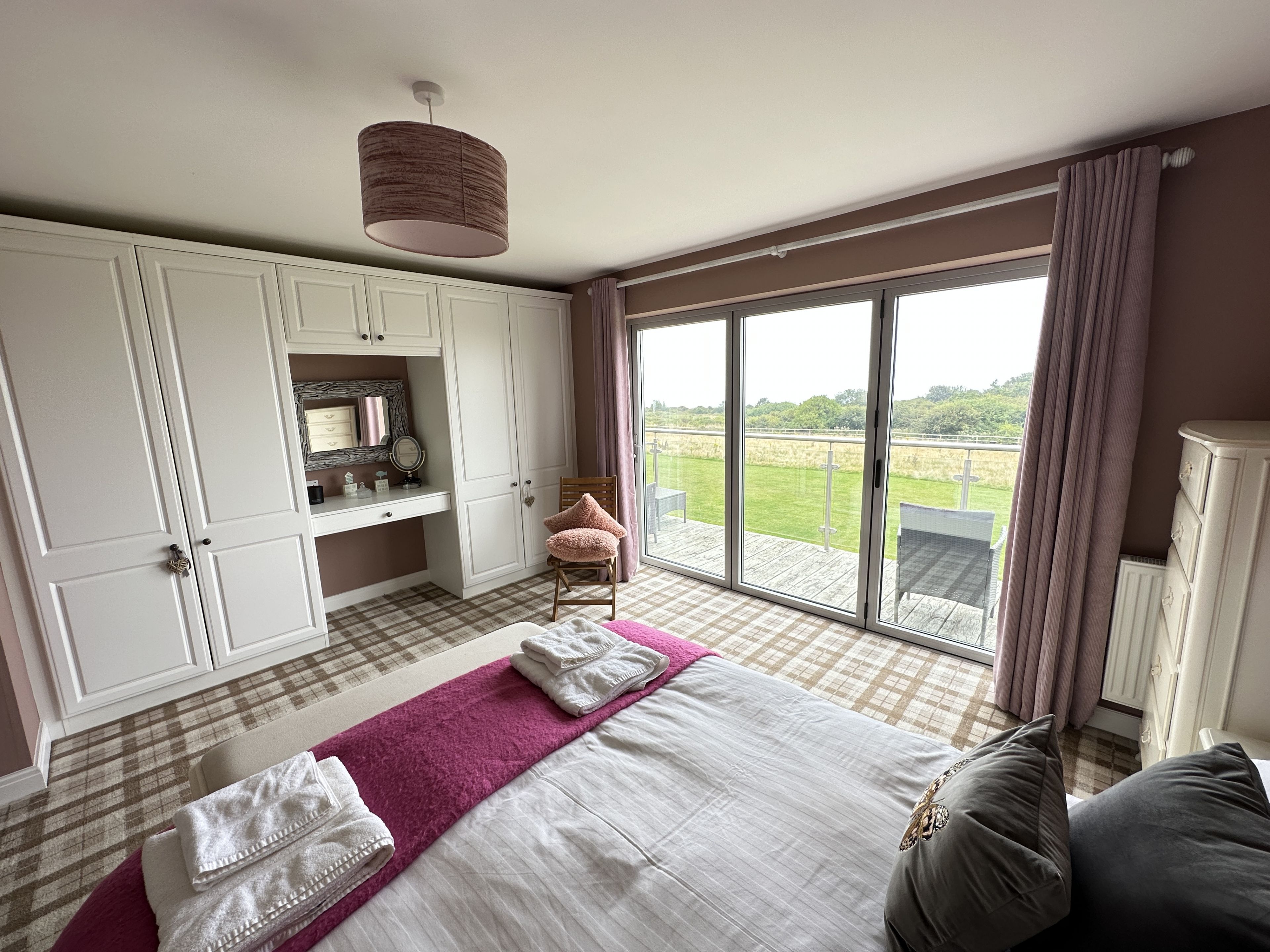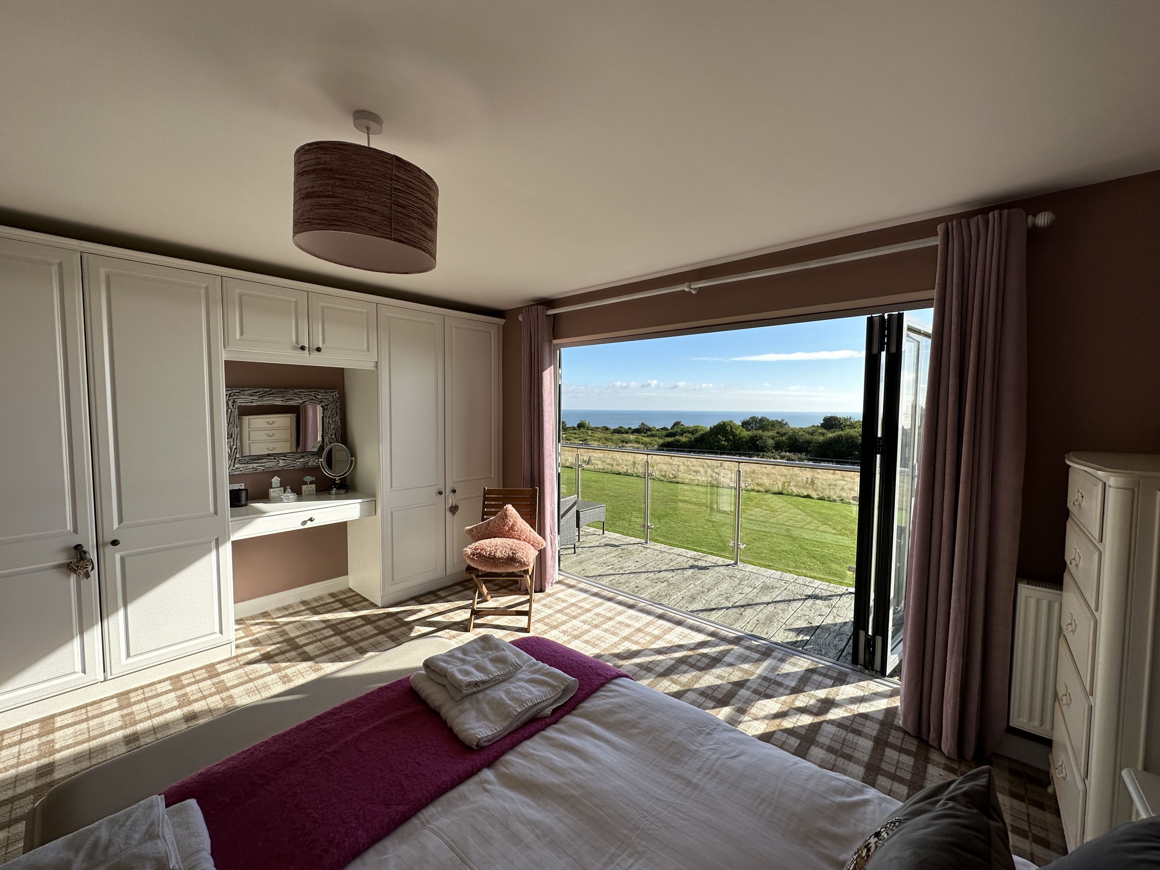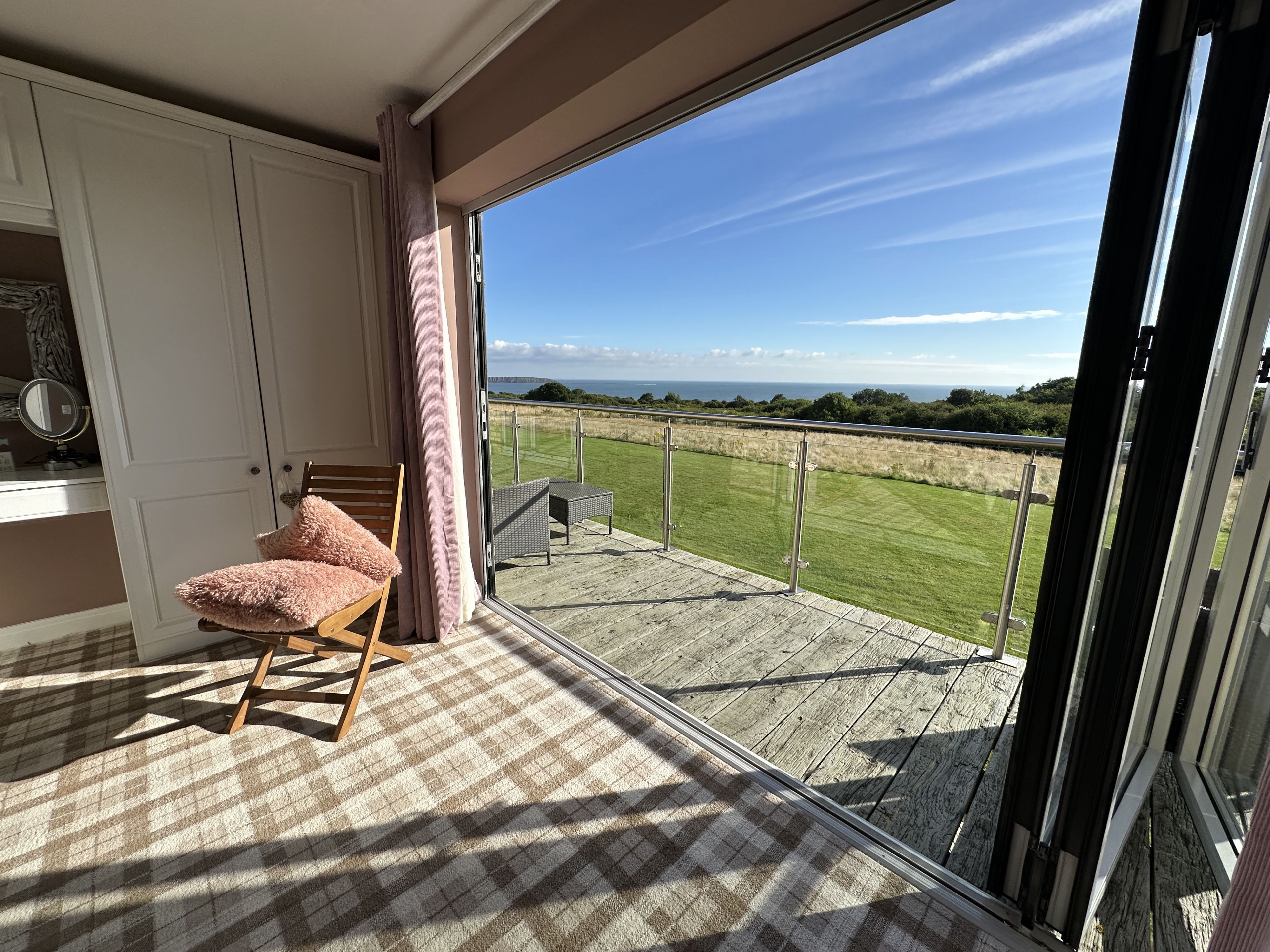 Enter into a luxurious spacious hallway, with space for your coats and shoes. Ahead is a large kitchen / lounge diner with all the appliances you’ll expect for a self-catering break including a large fridge / freezer with bifold doors offering access to the patio and view!