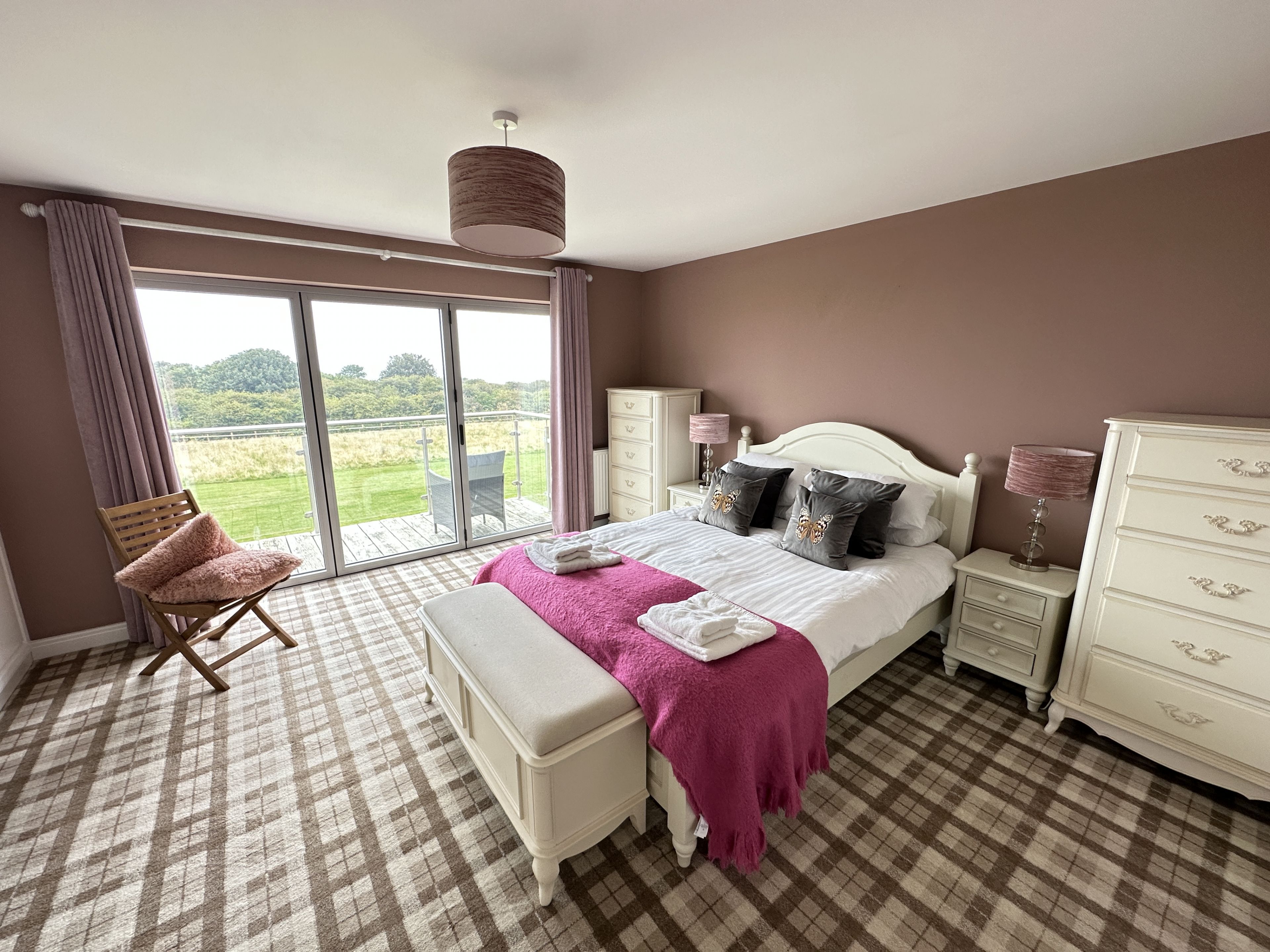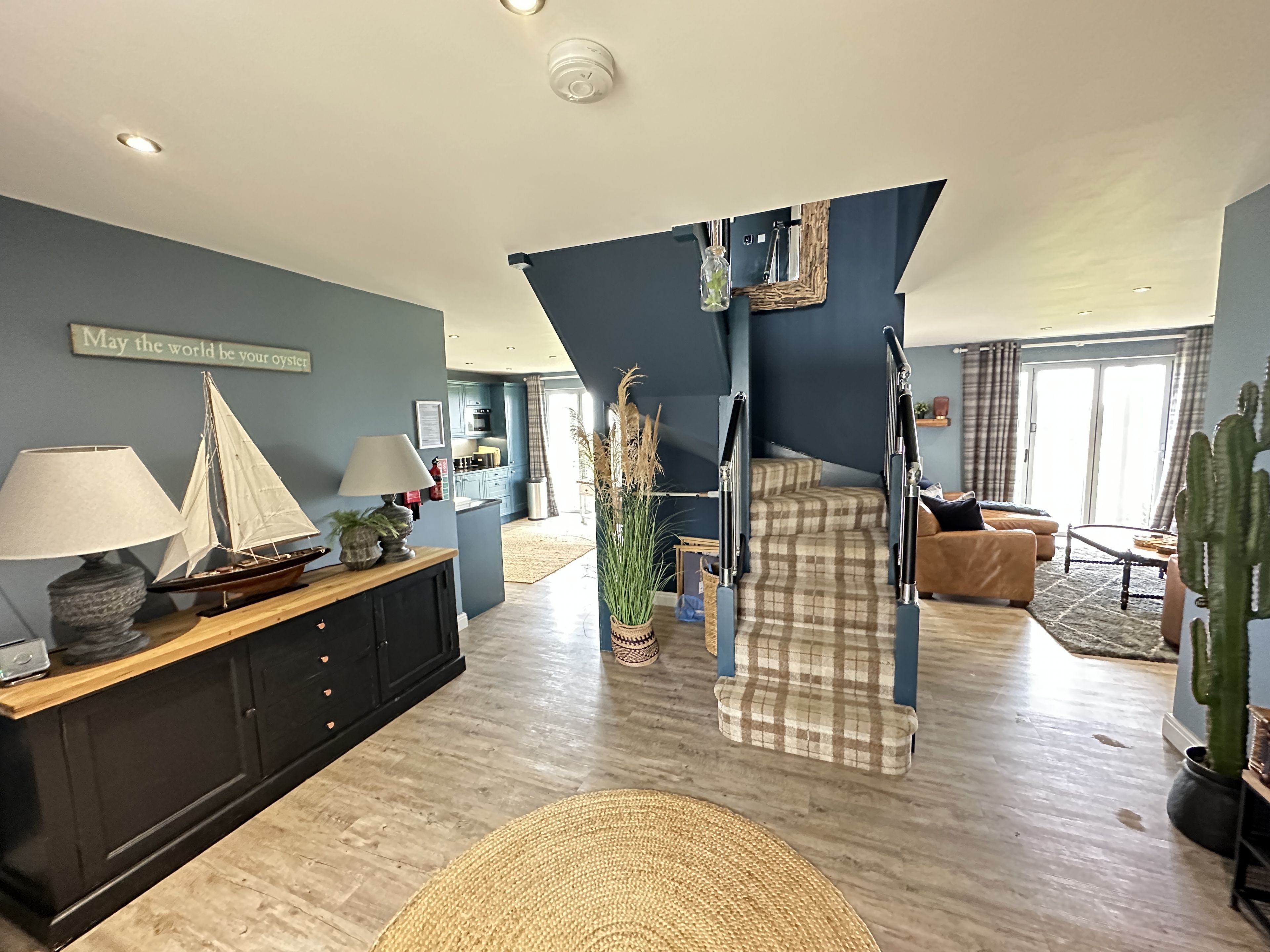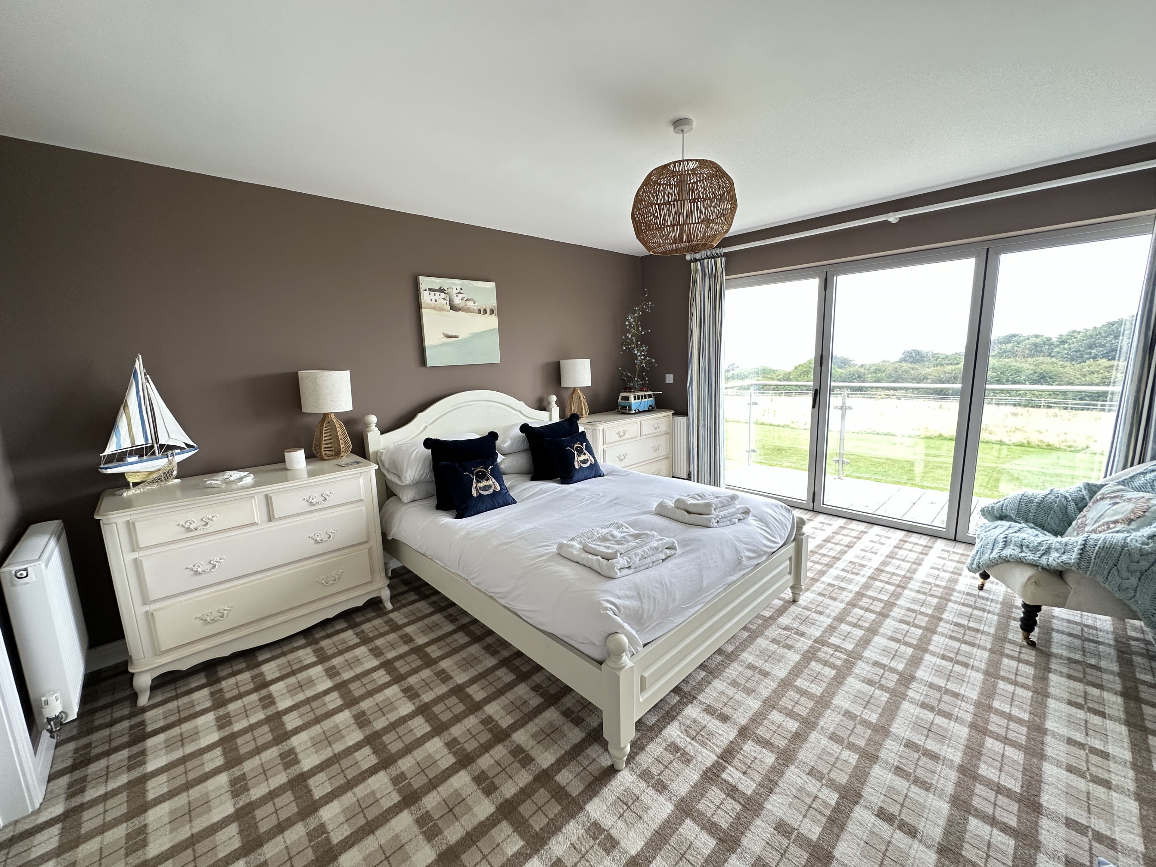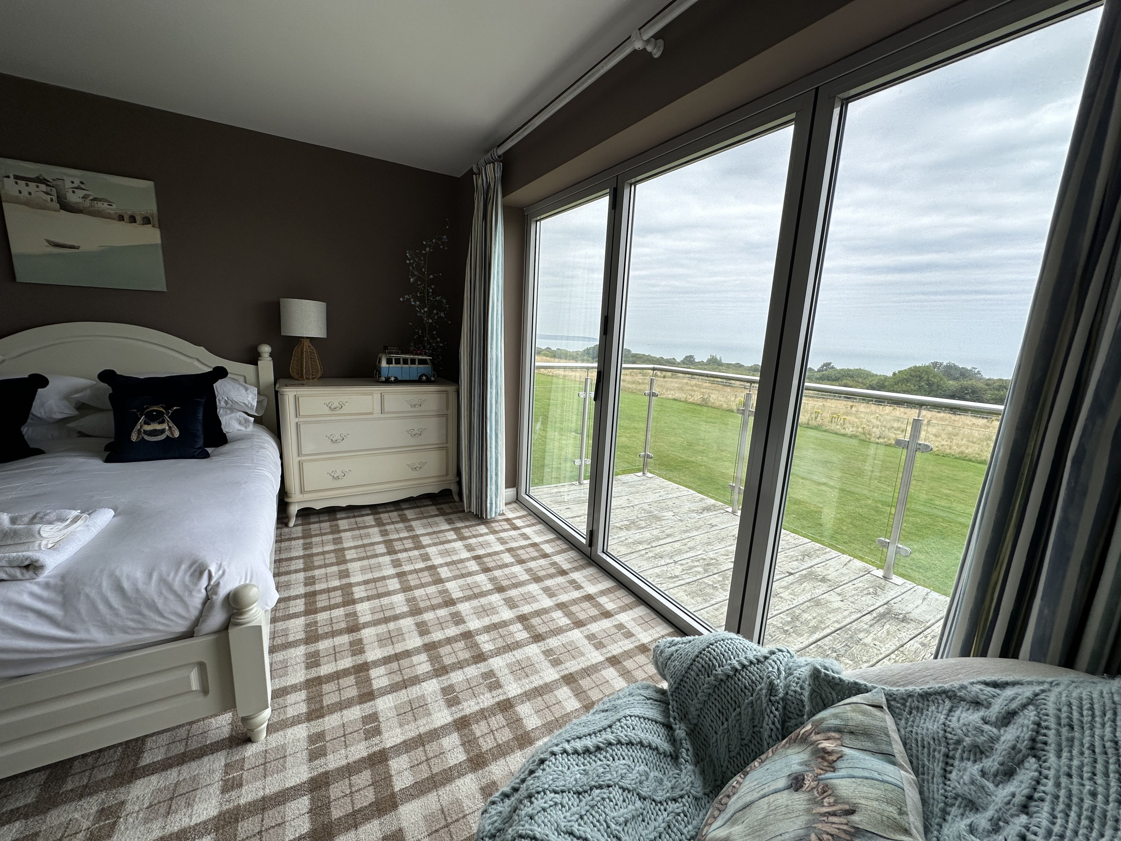 Enter into a luxurious spacious hallway, with space for your coats and shoes. Ahead is a large kitchen / lounge diner with all the appliances you’ll expect for a self-catering break including a large fridge / freezer with bifold doors offering access to the patio and view!