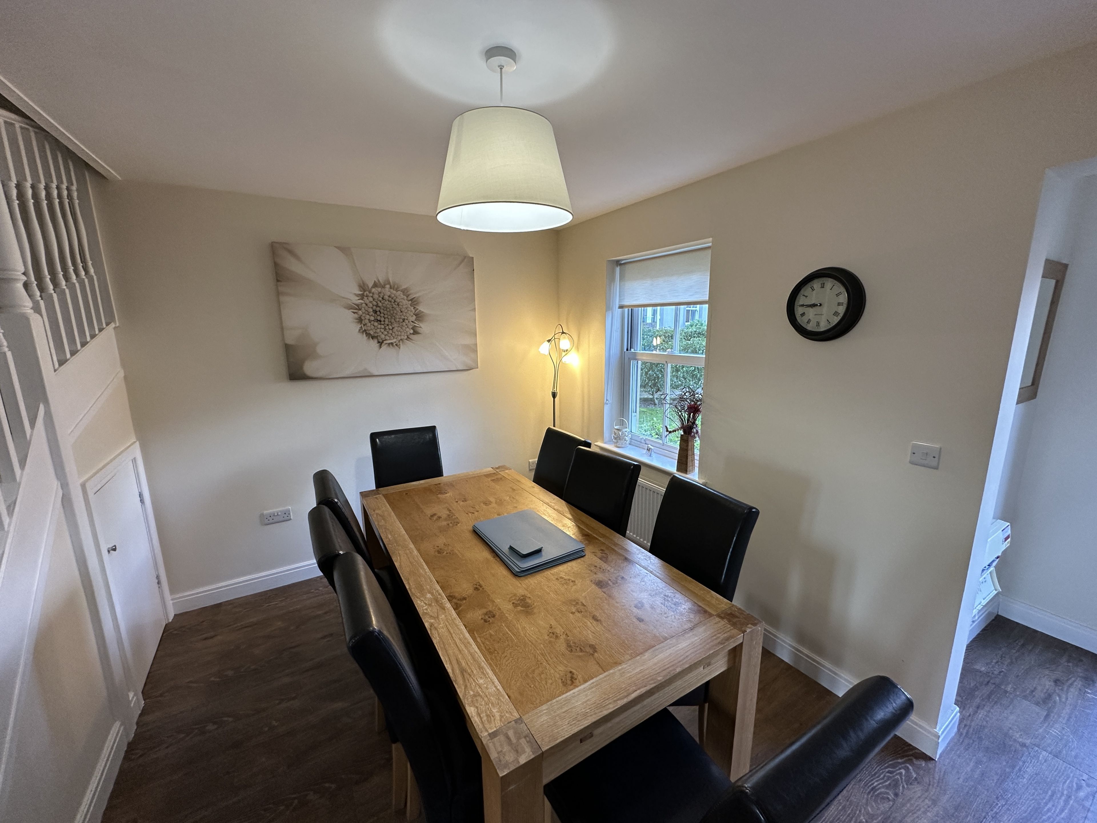 Enter into the property and use the large storage space for all your coats and shoes, Walk through the large dining room with extended dining table seating 8. Off the dining room is a WC and ground floor bedroom - ideal for multi generational family holidays.