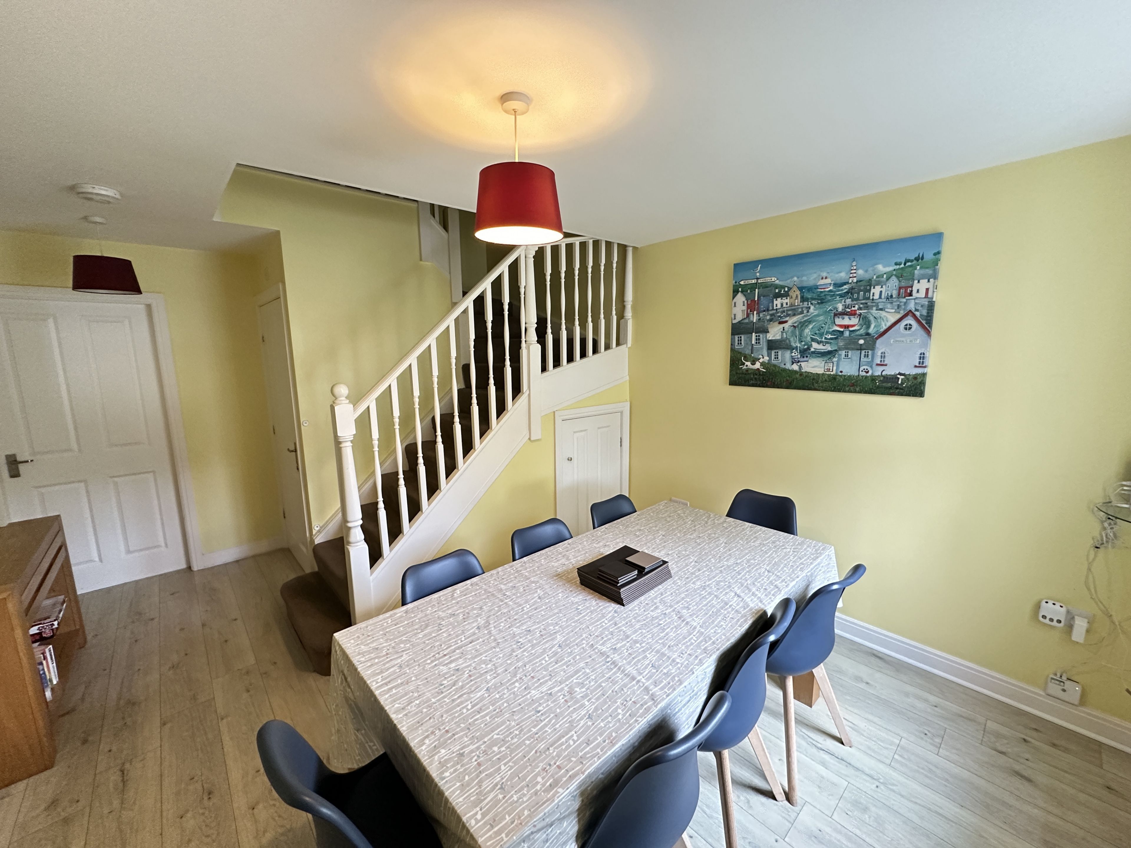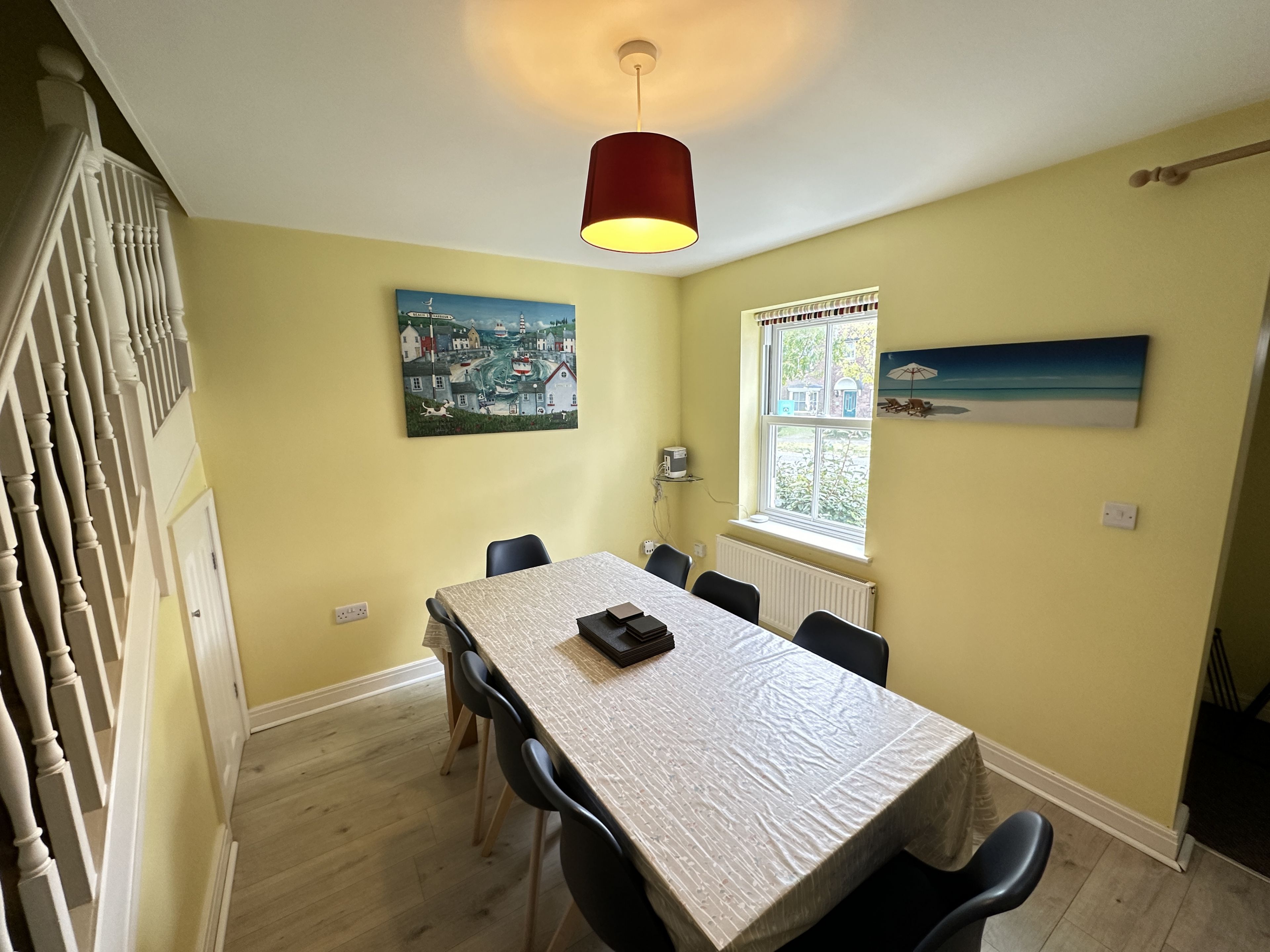 Enter into the property and use the large storage space for all your coats and shoes, Walk through the large dining room with extended dining table seating 8.