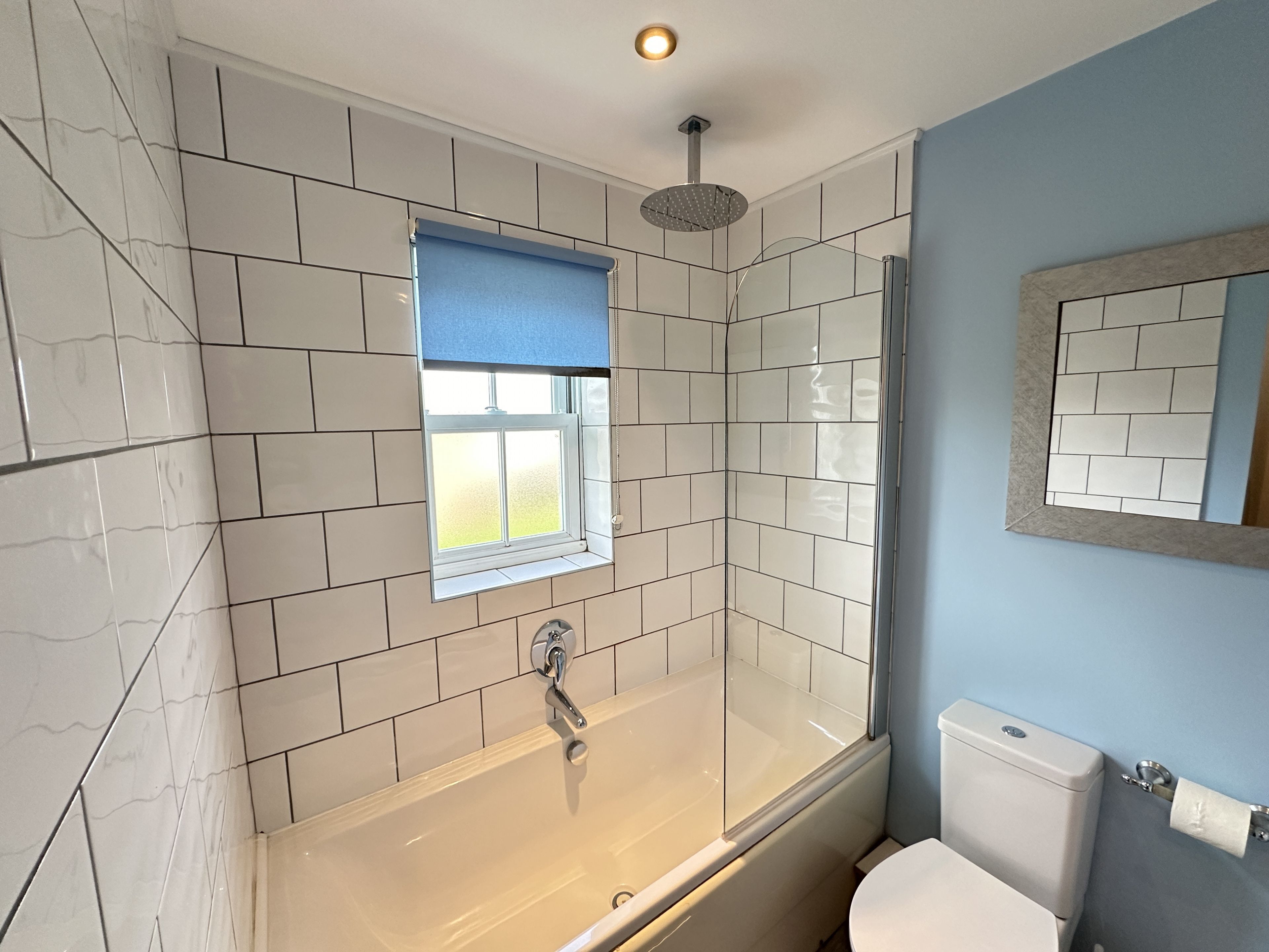 Upstairs, the master double bedroom has a TV and an en-suite shower room with rainfall shower. There is a further twin bedroom and a double room. The family bathroom has a bath and overhead rainfall shower. Central heating throughout.