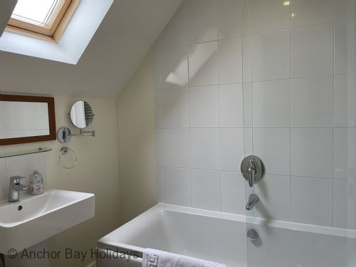 Upstairs the property comprises of 1 double bedroom and 1 twin bedroom with a large family bathroom complete with bath and overhead rainfall shower.