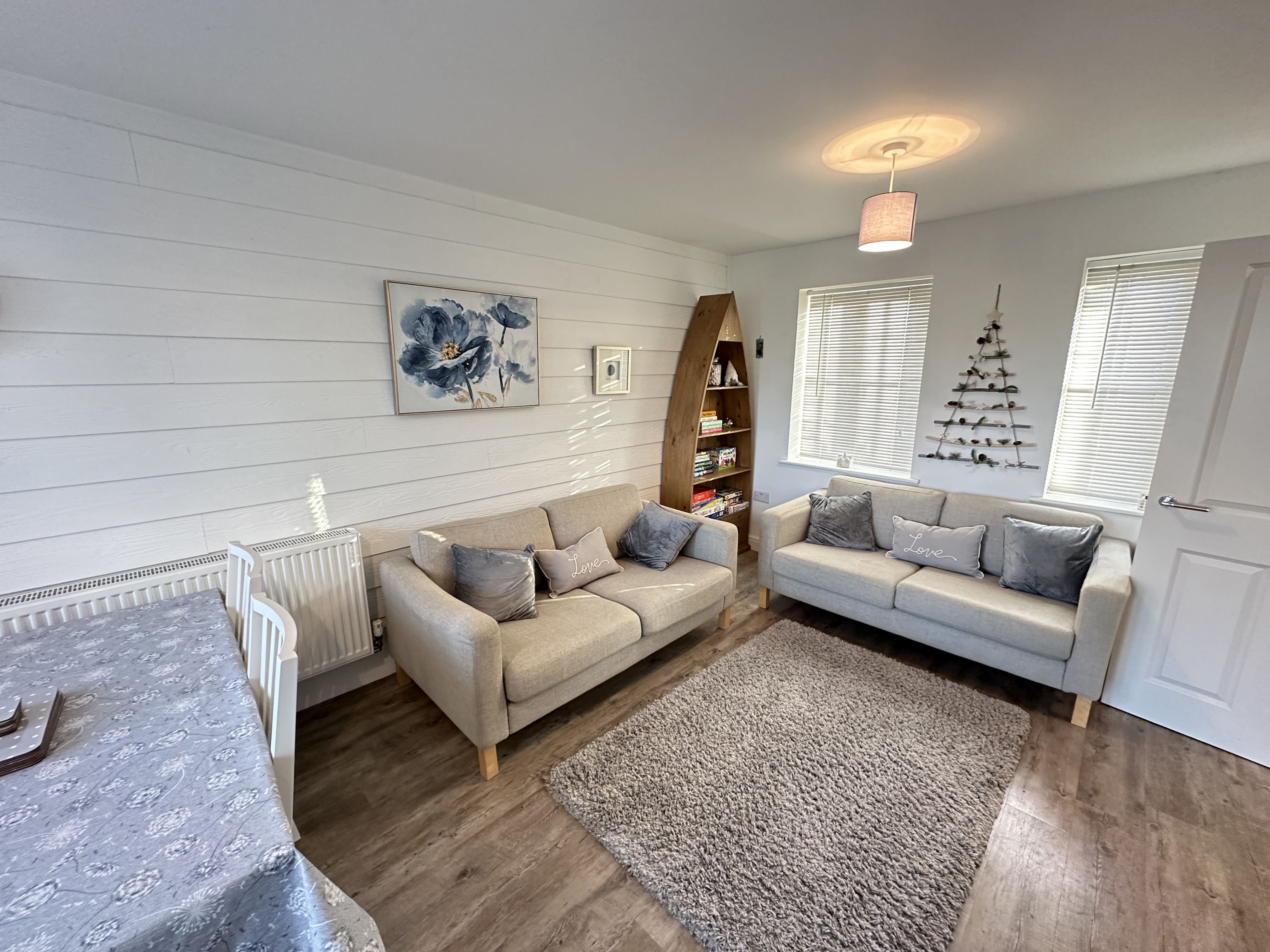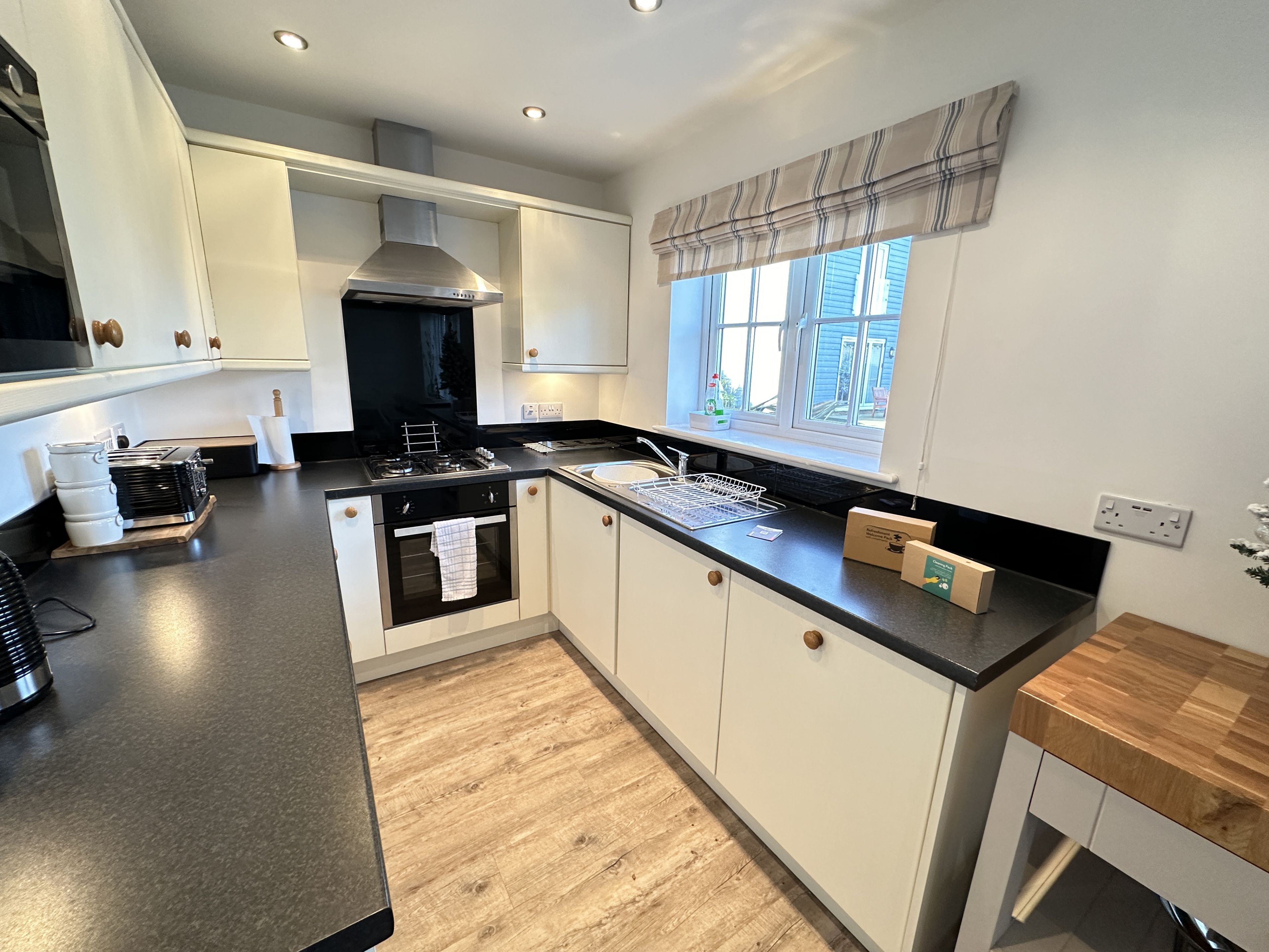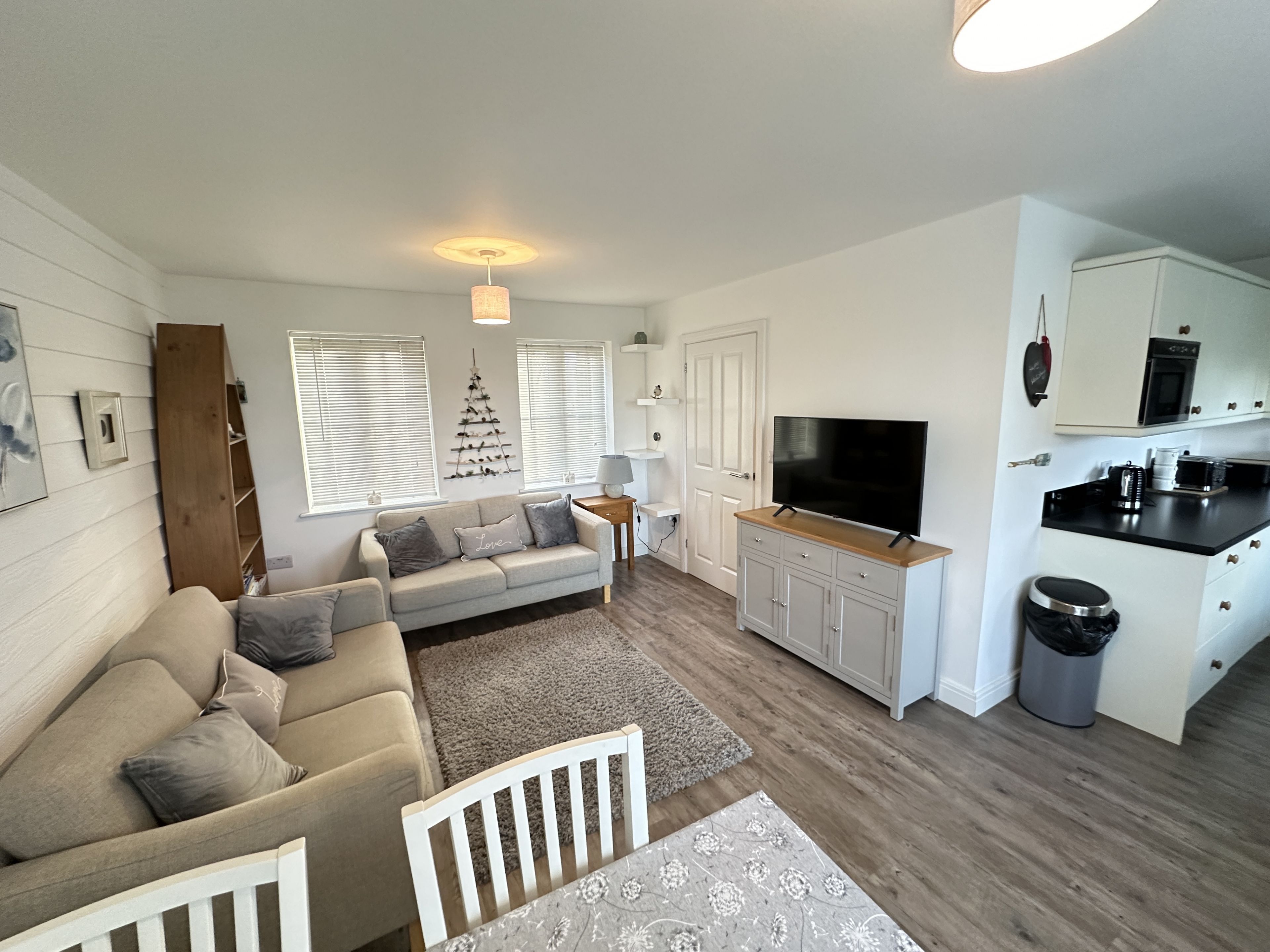 Walk through into the large open plan L shaped lounge with two lovely sofas, SMART TV, dining room (sits 4) and fully fitted kitchen including dishwasher, washer/dryer, air fryer and slow cooker etc.