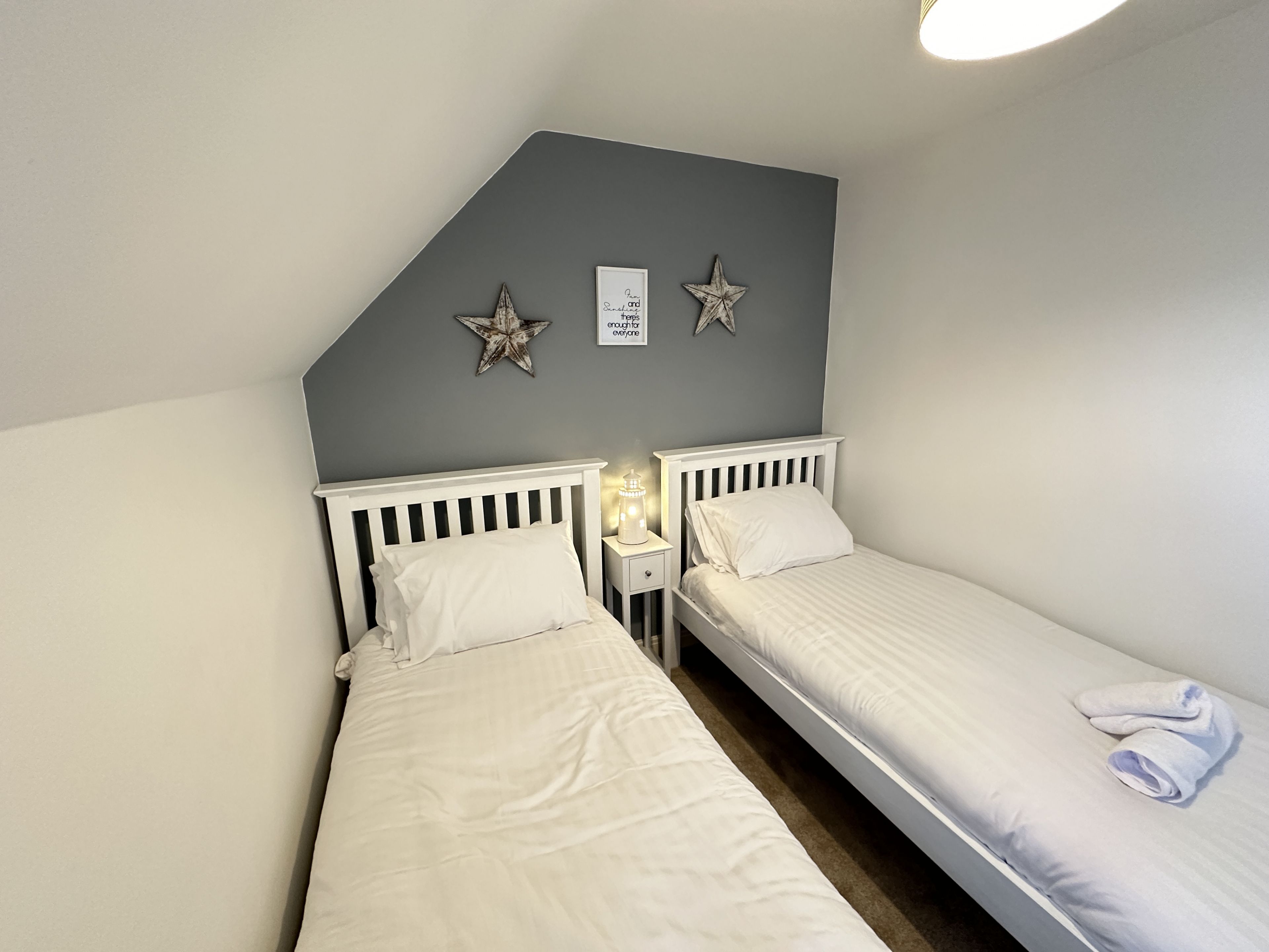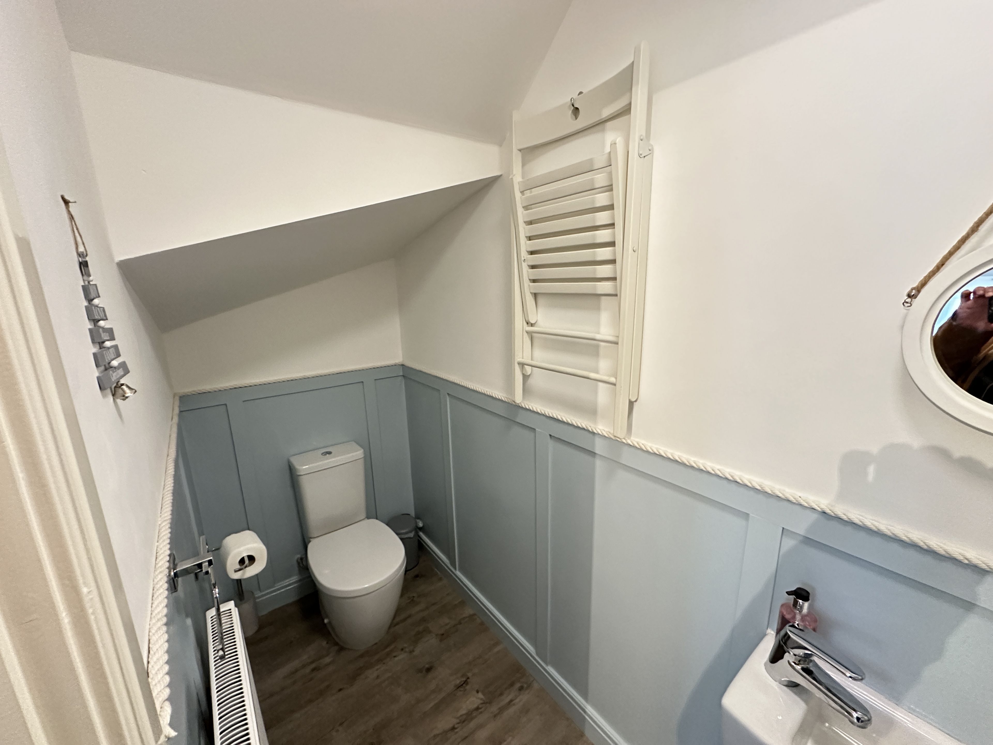 Upstairs the property comprises of 1 double bedroom and 1 twin bedroom with a large family bathroom complete with bath and overhead rainfall shower.