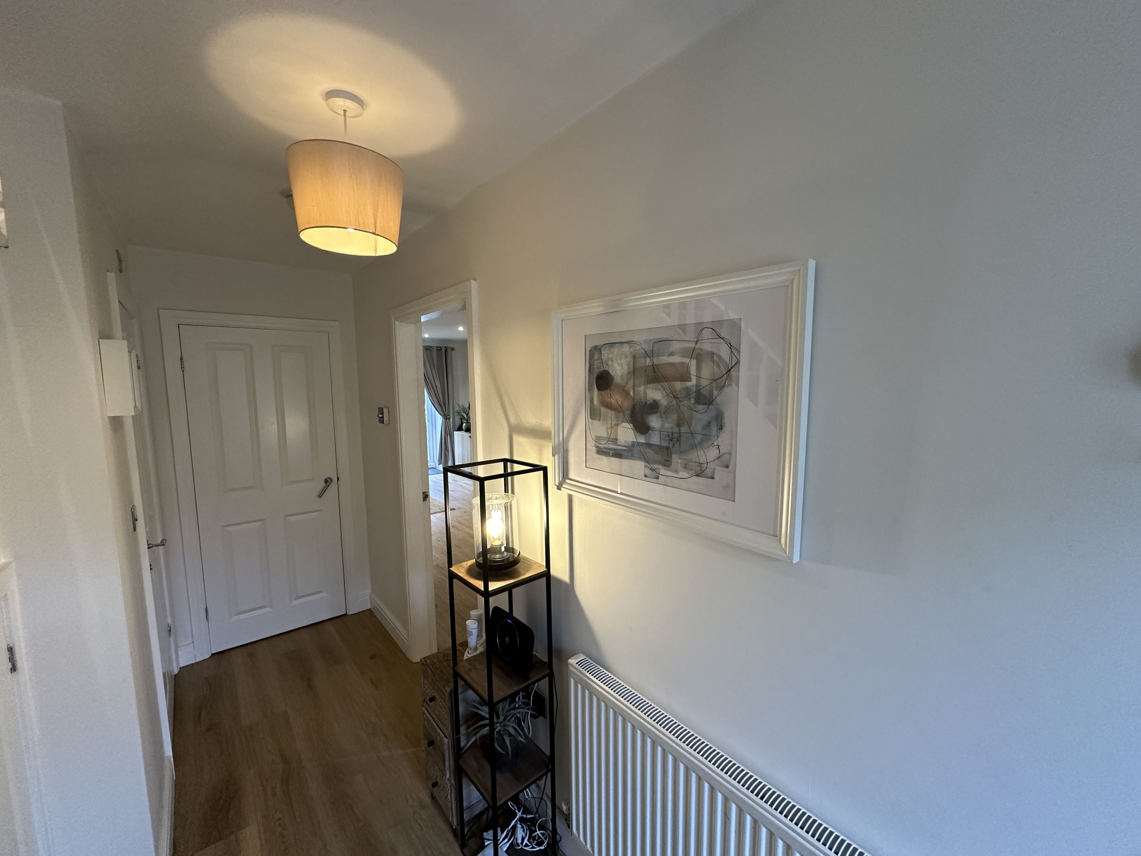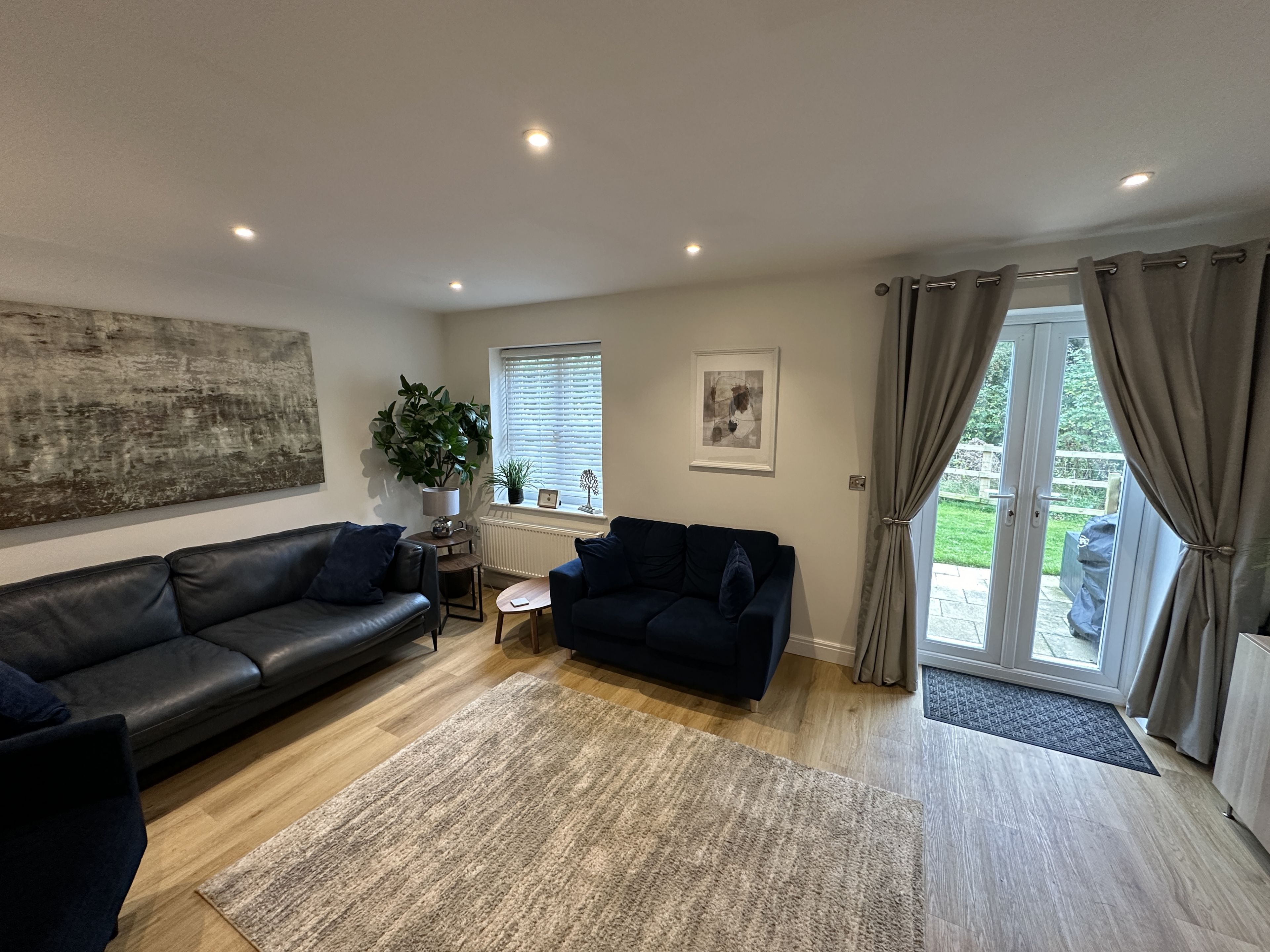 Enter into a spacious hallway, with space for your coats and shoes. Ahead to the right is a stunning family space with large open plan living area, beautiful dining area and furniture with access to the large refurbished kitchen.