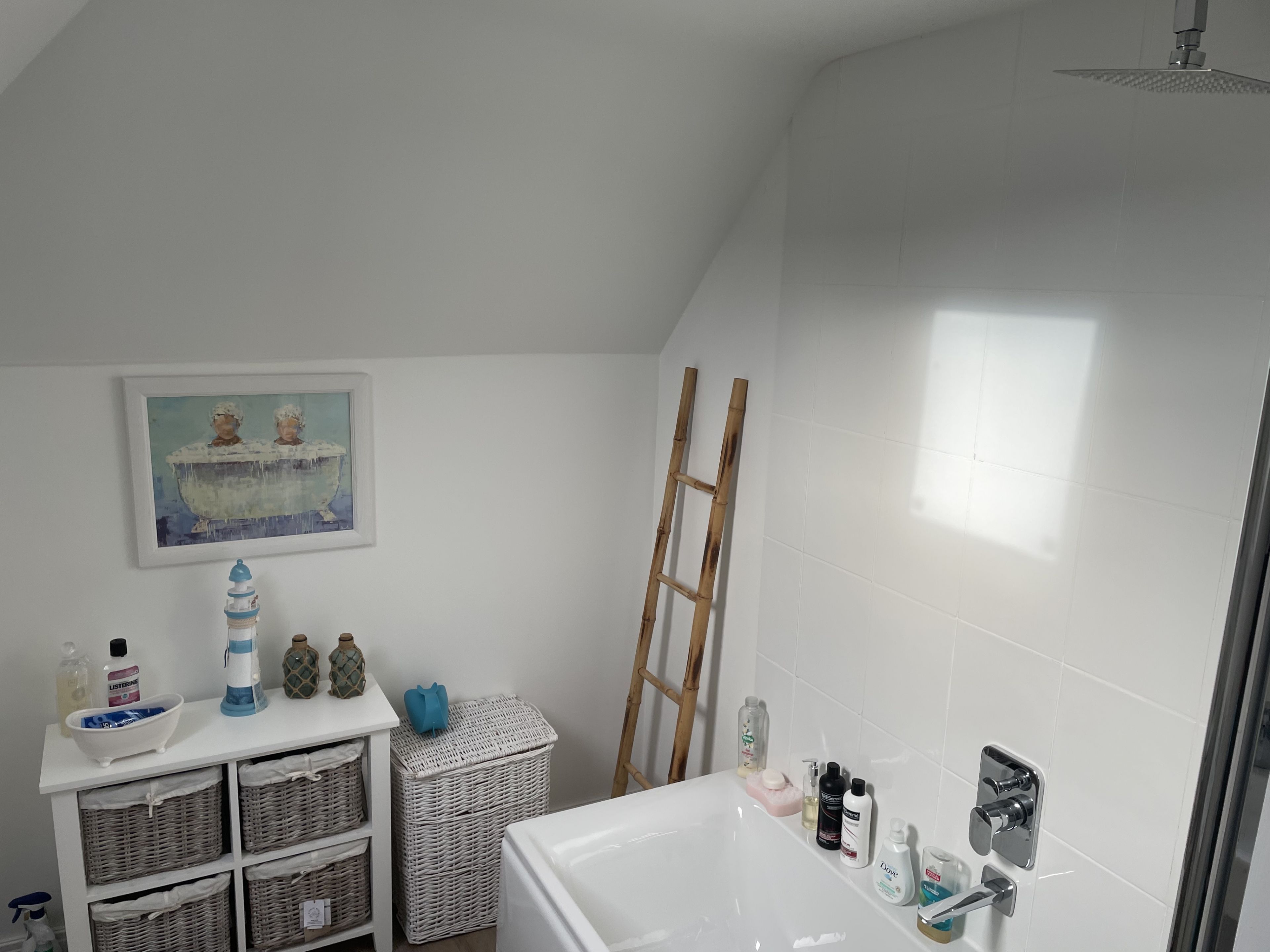 Upstairs, you will find a double bedroom and a master with king size bed, walk-through wardrobe area, and a shower room ensuite. There is also a very spacious family bathroom with bath and shower over.