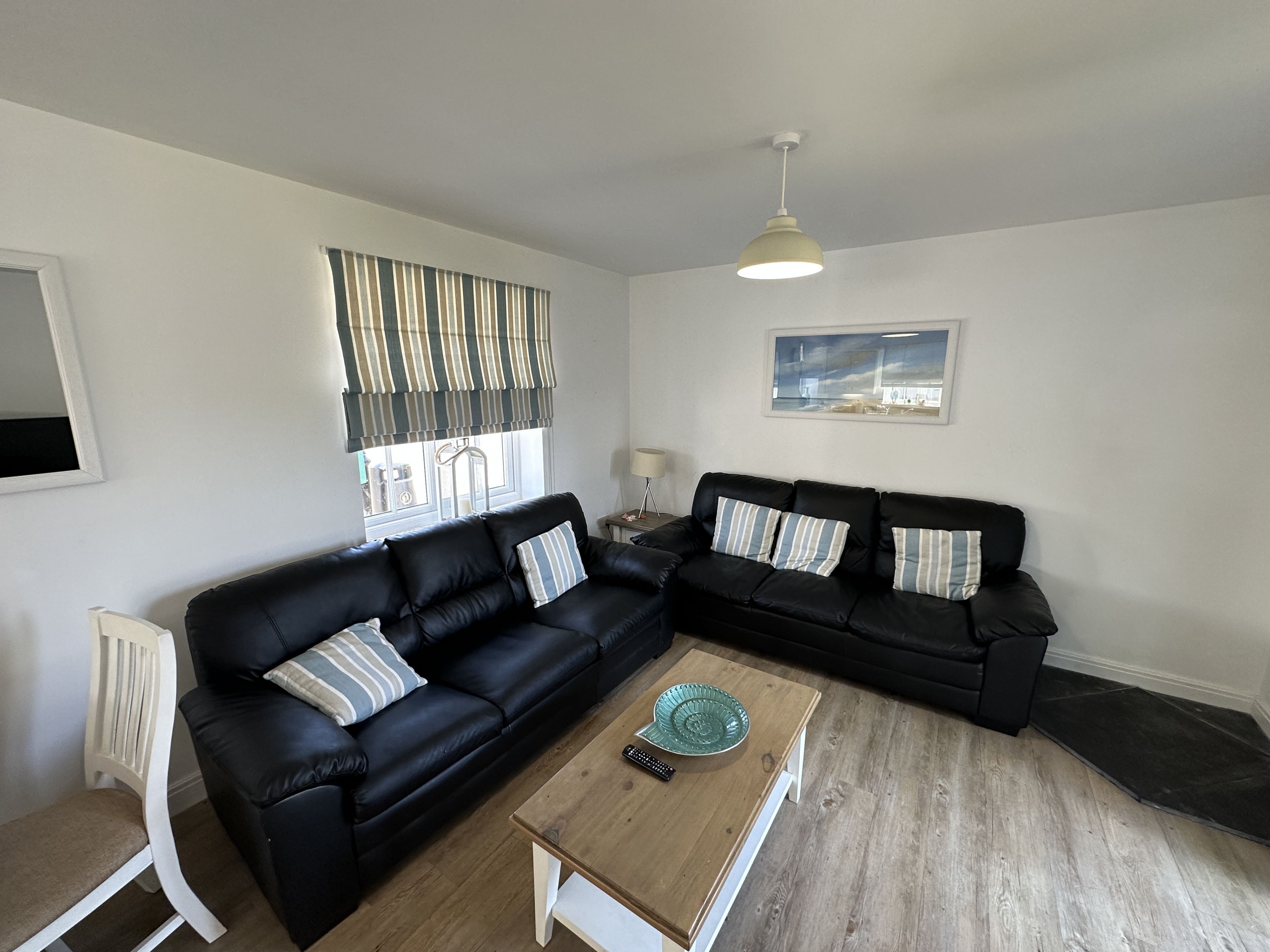 Enter into a spacious hallway, with space for your coats and shoes. Ahead to the left is a large kitchen diner / lounge with all the appliances you’ll expect for a self-catering break.