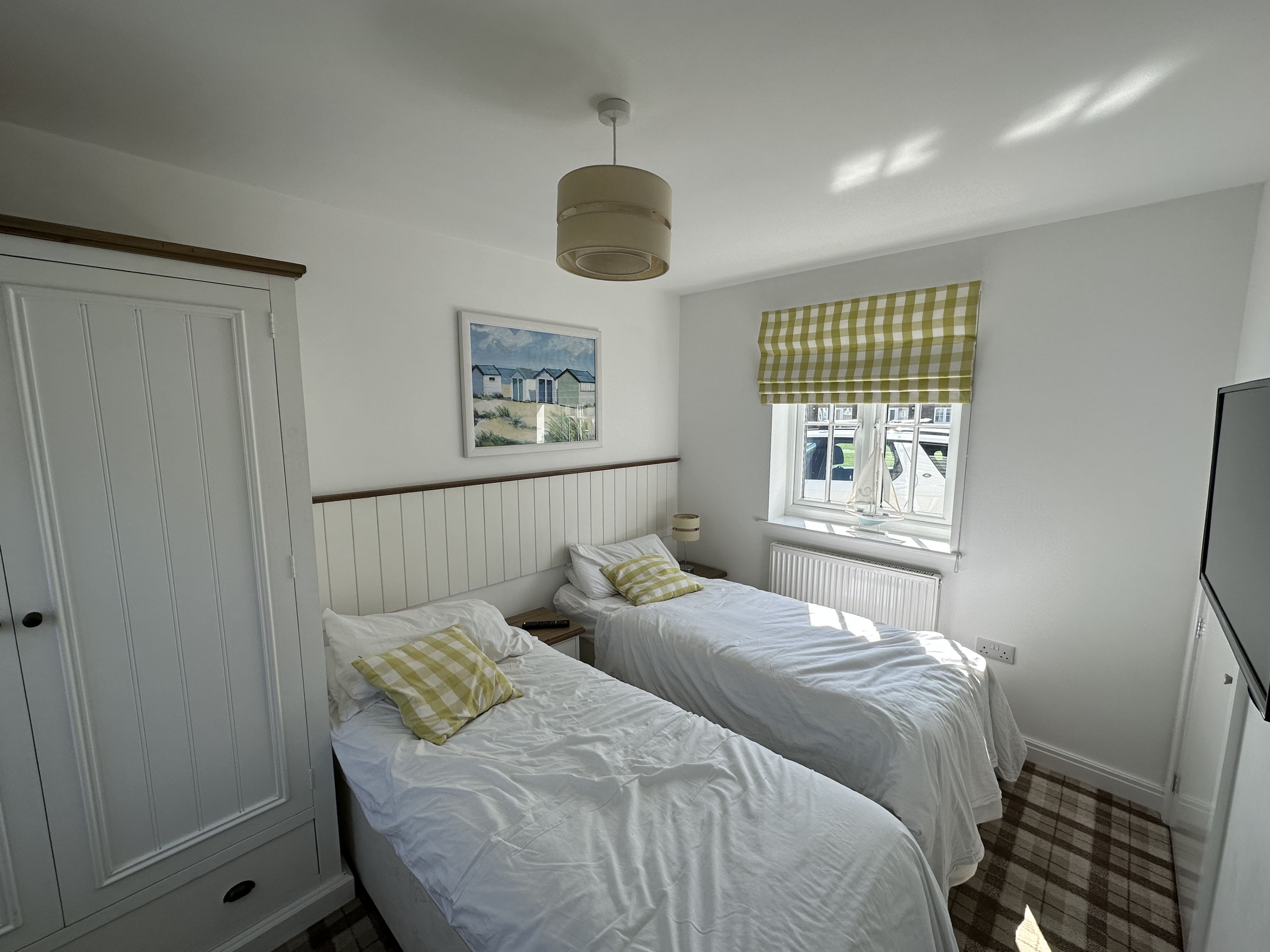 Across the hall there is a WC and access to a large twin / double bedroom (default is two single beds but guests can join these together) with windows to the front and rear.