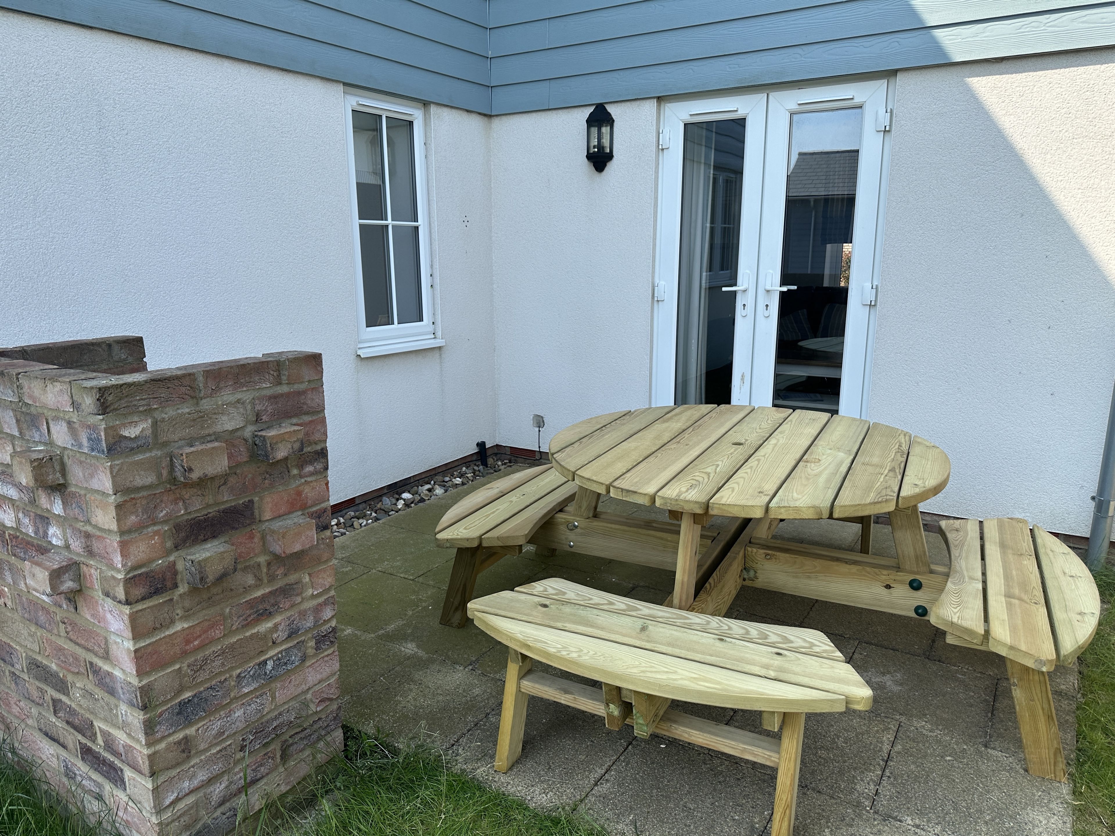 There is an excellent dining space in the kitchen, with extended dining table seating 6 with french doors to the patio, and 2 large comfortable sofas (one is a double sofa bed - bedding for this is a chargeable extra). The patio features brick built BBQ and a large circular table / bench seating 8 - ideal for BBQs.