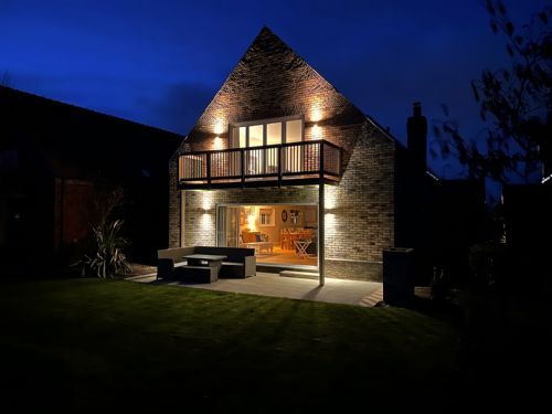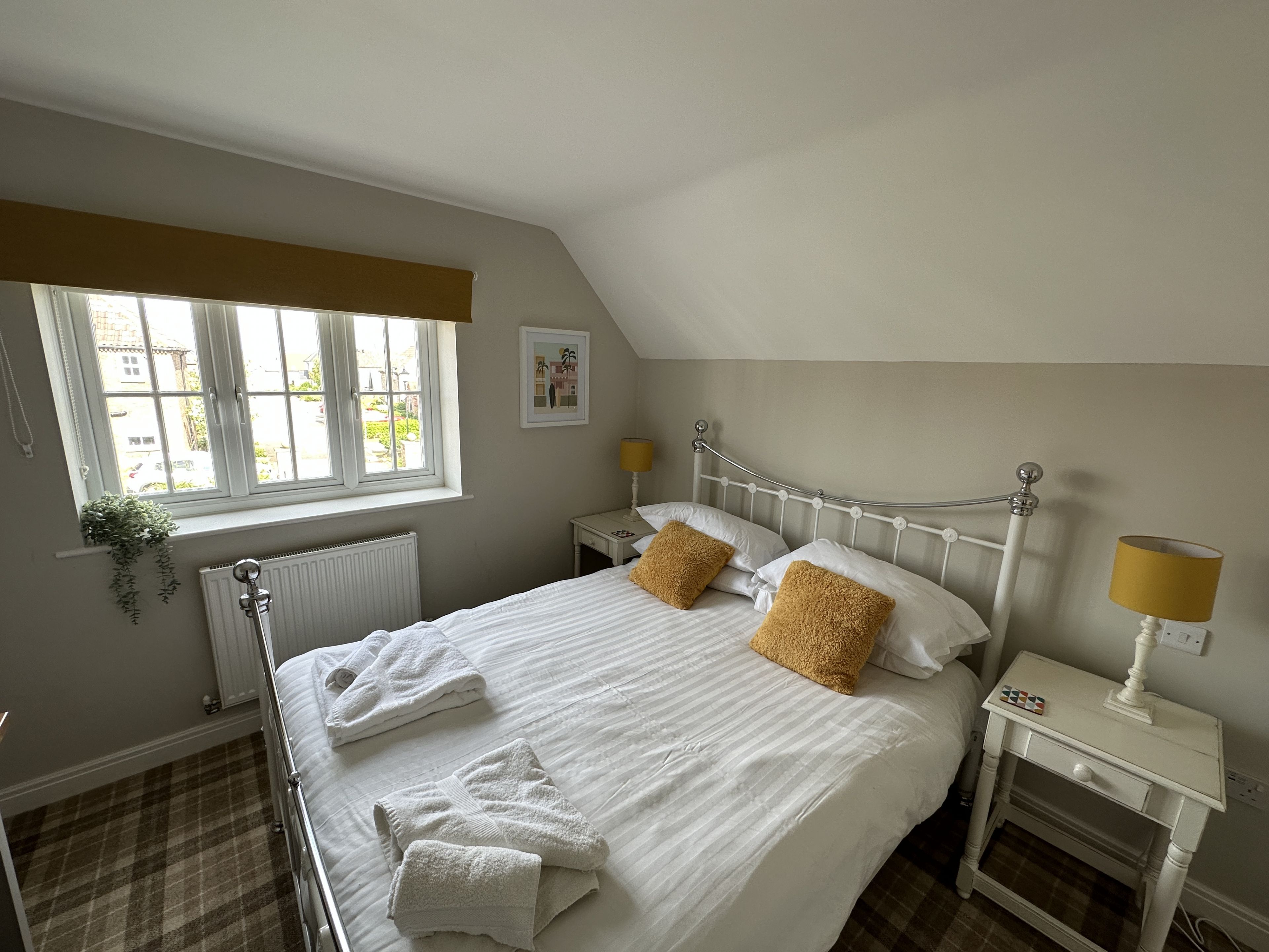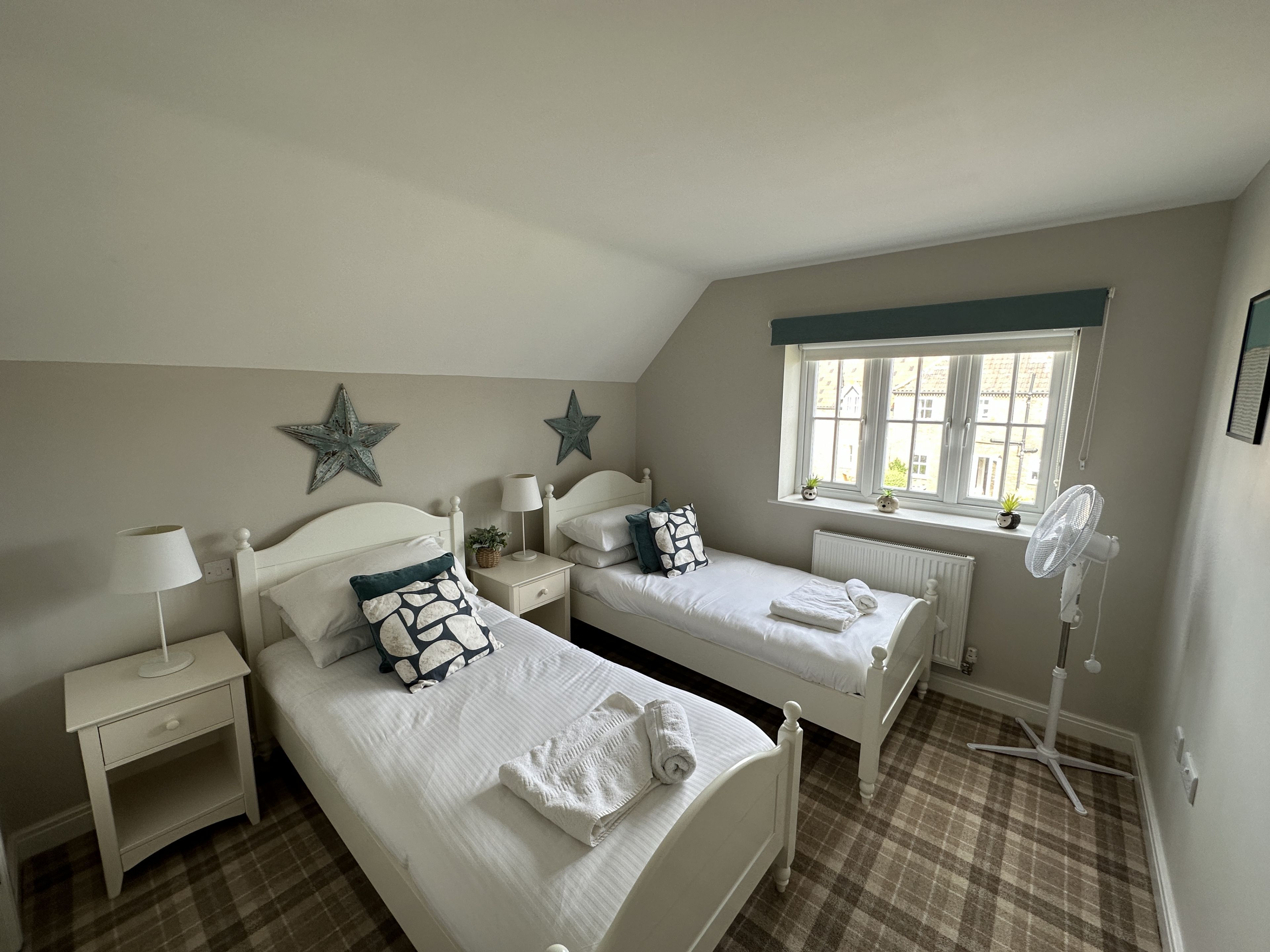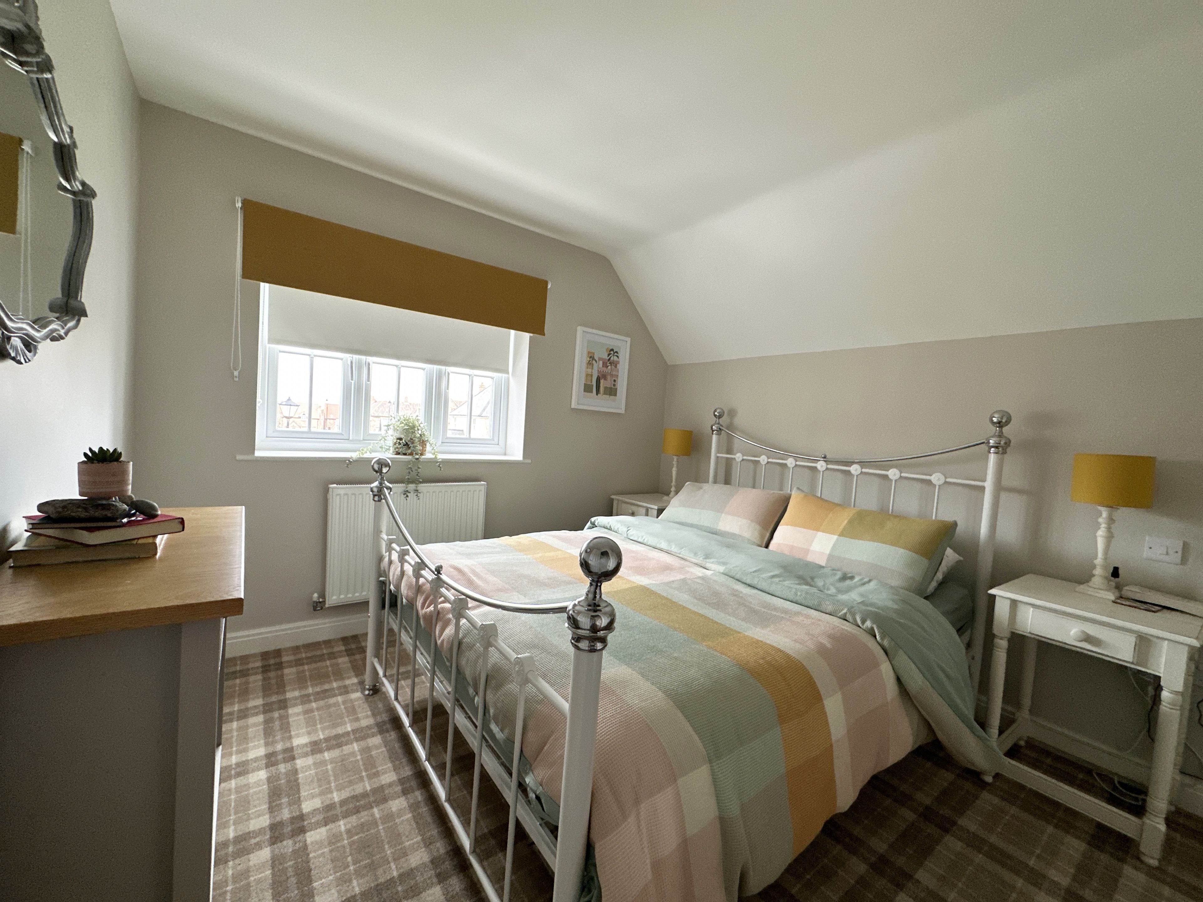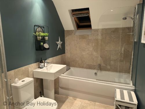 Upstairs there is the stunning main bedroom suite with a super-kingsize bed, with an ensuite shower room, seating area with bifold doors onto the balcony with views to The Meadows and beyond. There are 2 further bedrooms one as a king and one as a twin with single beds - these share a large family bathroom.