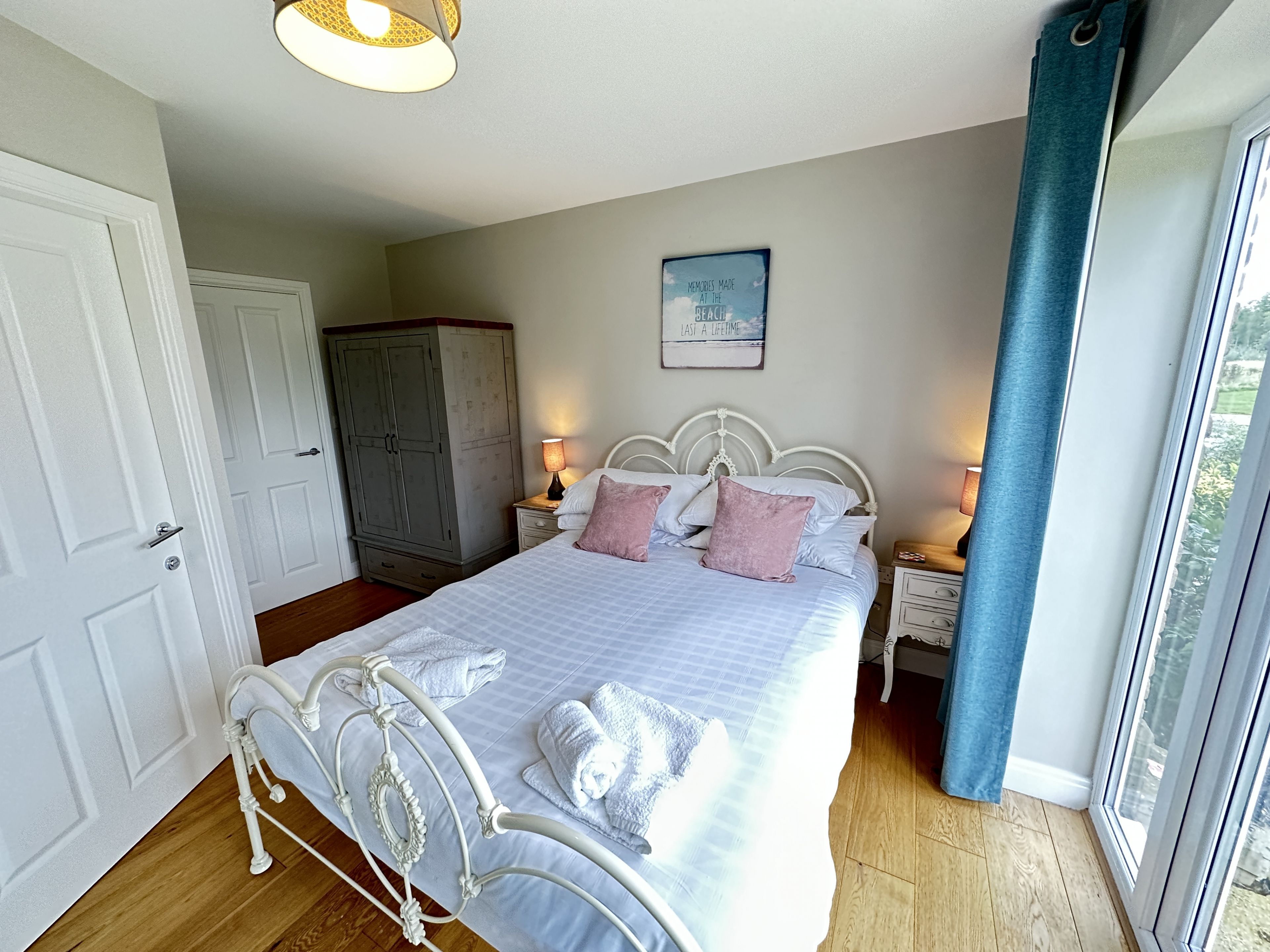 Enter Ocean Retreat through the side porch door into the spacious hallway with cloaks storage. To the right is a double bedroom with patio doors and ensuite shower room.