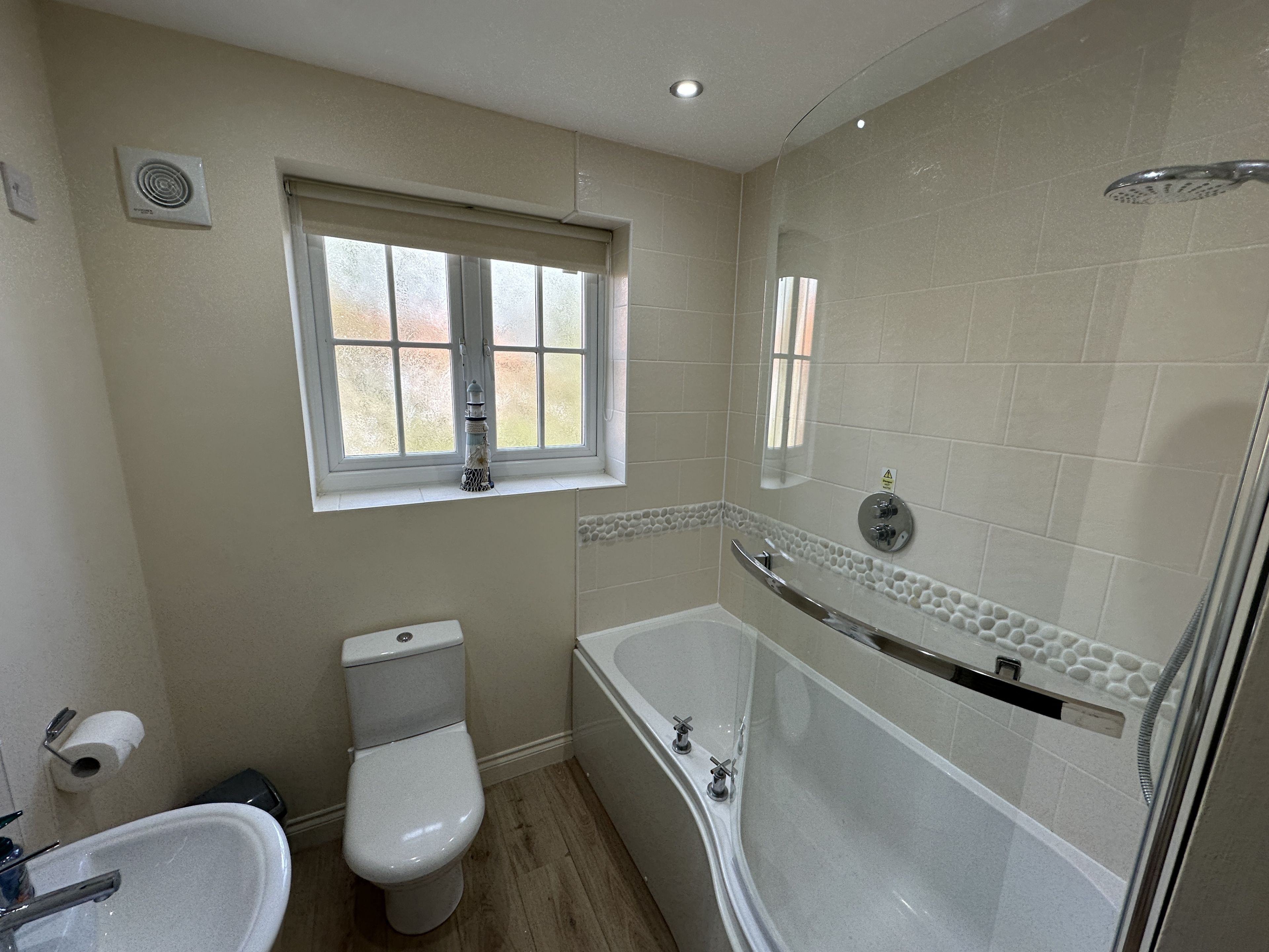 Upstairs the property comprises of 1 king bedroom and 1 twin bedroom with a large family bathroom complete with bath and overhead shower,