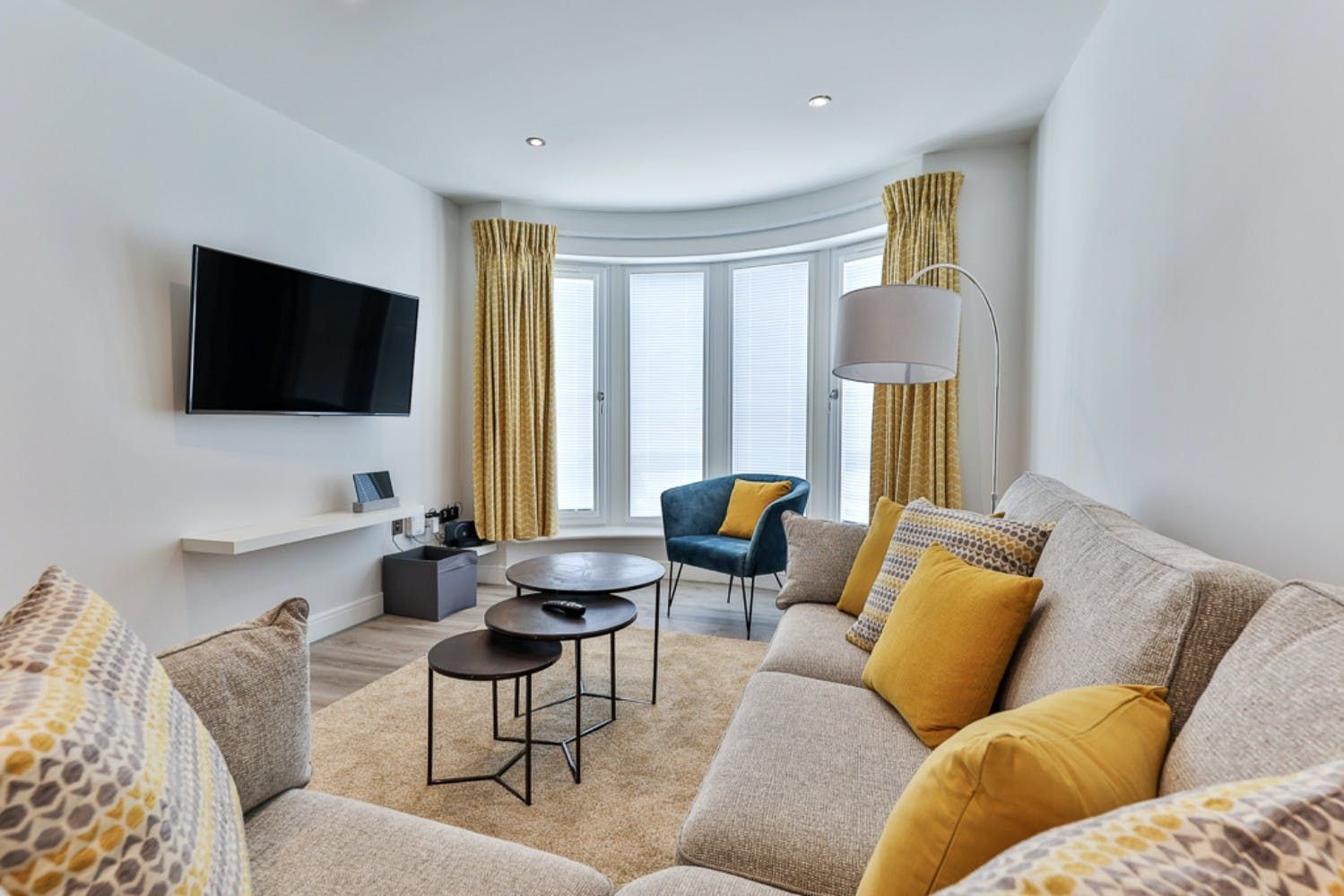 Fit for a family on a getaway to the sea, this charming apartment in Filey has everything you'll need. We love the sleek grey kitchen and the sumptuous L-shaped sofa, in particular. Spend lazy days playing board games and watching films on the smart TV, savouring a cup of hot cocoa or a steaming coffee from the Nespresso machine when you need a pick-me-up. Both bedrooms are comfortable and ooze coastal charm, while the bathrooms are glossy and stylish, complete with rainfall showers. But our favourite bit of all is the excellent location. You're only a five-minute walk away from Filey Beach, so pack a towel, grab an ice cream and while away afternoons on the sand. If you're in the mood for a walk, the Cleveland Way starts here – lace up your shoes and trek along the coastal path. And there's no better way to end the evening than with a pint and a delicious meal at one of the many pubs in town – most of which are within walking distance.