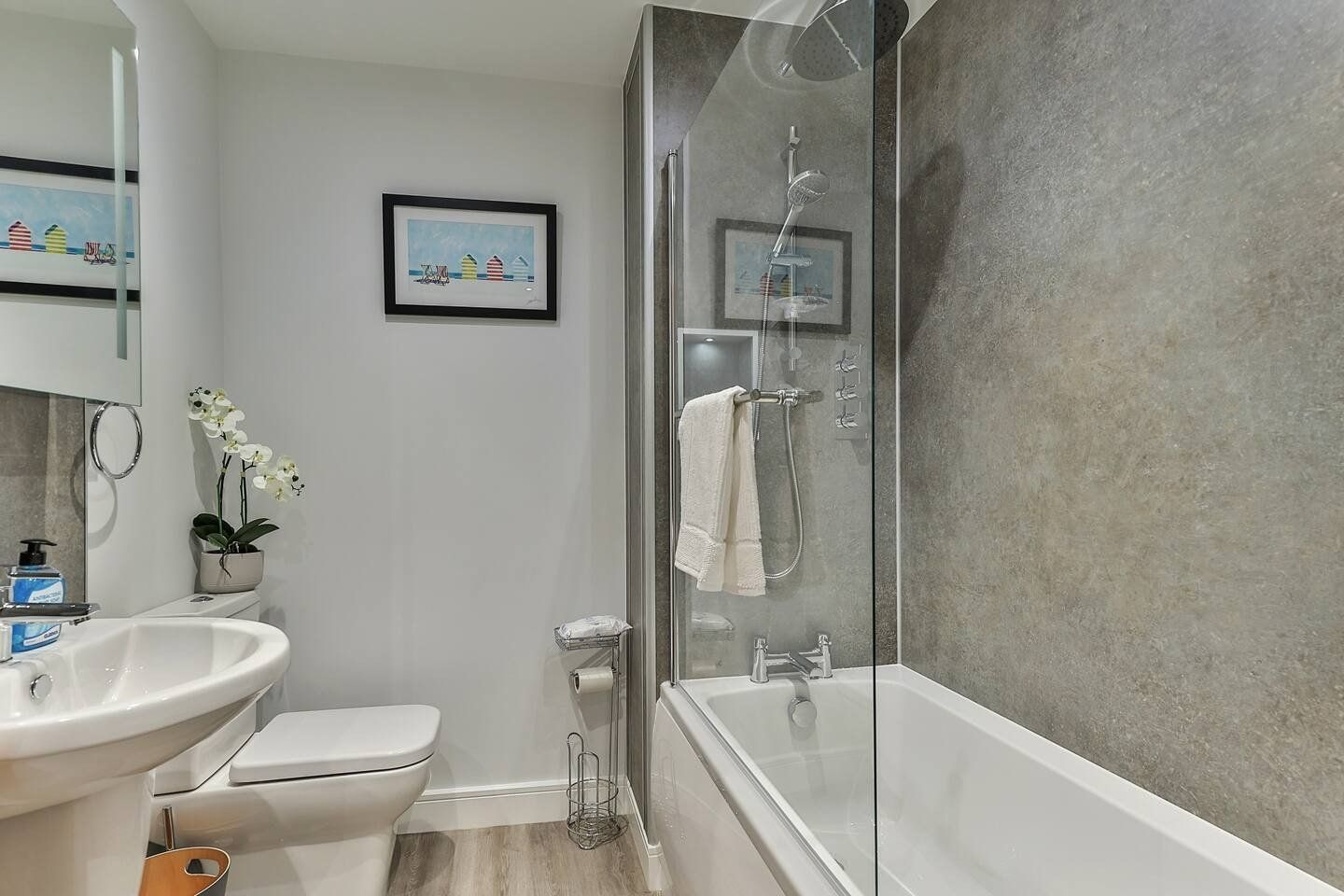 This seaside retreat is sunny in more ways than one. Not only do the big windows let in loads of natural light, but the yellow colour scheme is positively cheery. Otherwise, this apartment is slick and modern – think glossy grey kitchen, luxe rainfall showers and contemporary furniture. It's the perfect base for a family or friends on a trip to the coast, and it comes with everything you'll need for a relaxing getaway – from smart TVs and a small collection of board games to plenty of cookware and even a tablet for browsing the web. You'll love socialising in the open-plan living area, rustling up meals in the kitchen, sharing bottles of wine around the table and lounging on the cushy sofa. But most of all, you'll love the location. Filey Beach is just a five-minute walk away, so grab a towel and stretch out on the sand. You're surrounded by charming cafes, traditional pubs and local eateries, with plenty of shopping and dining options within easy reach. Walkers will enjoy being at the start of the Cleveland Way, while kids can search for creatures and fossils in the rockpools and dip their feet in the paddling pool along the promenade.