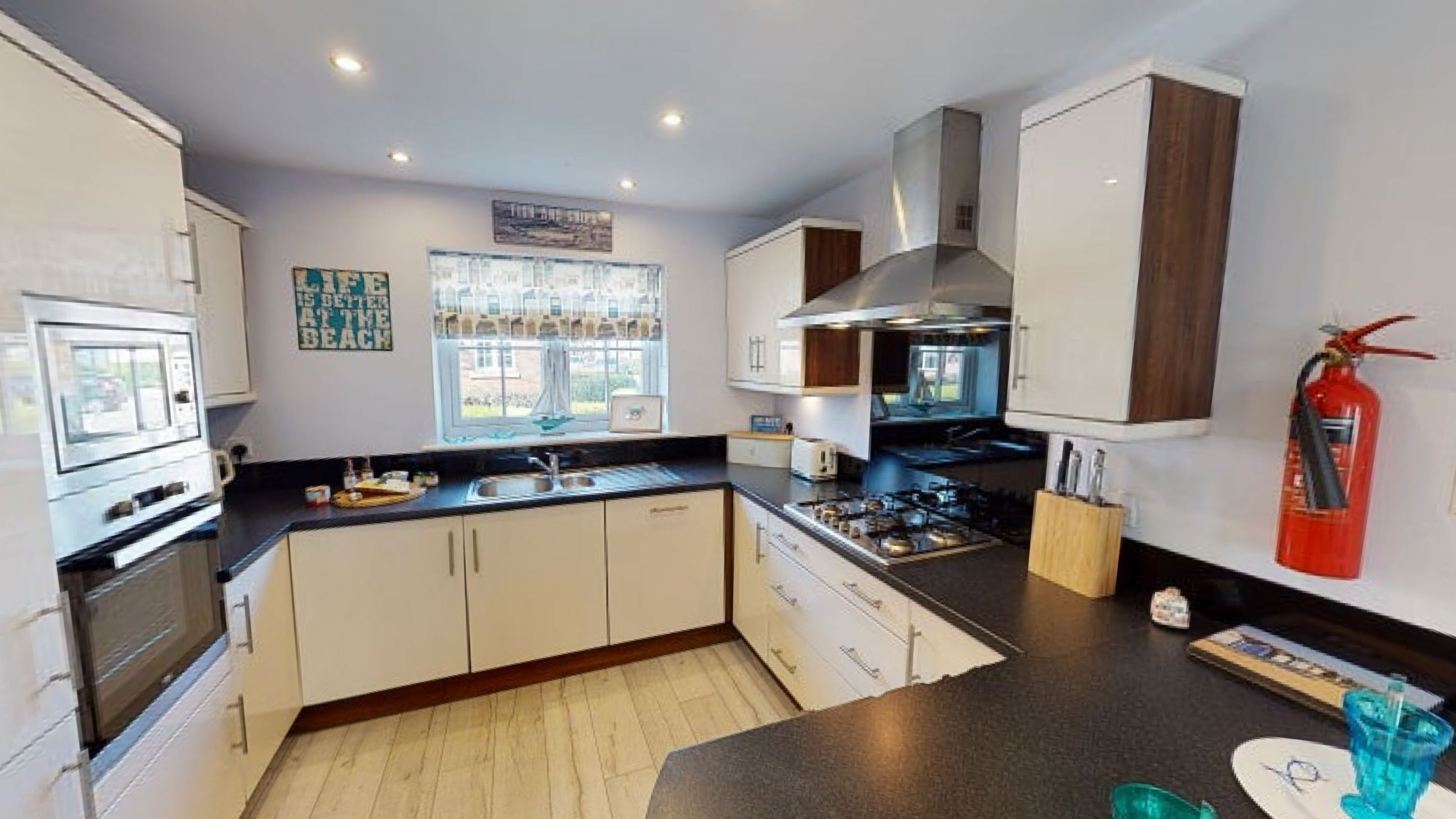 -Spacious kitchen with washer dryer, dishwasher, oven, hob and microwave and tall fridge freezer