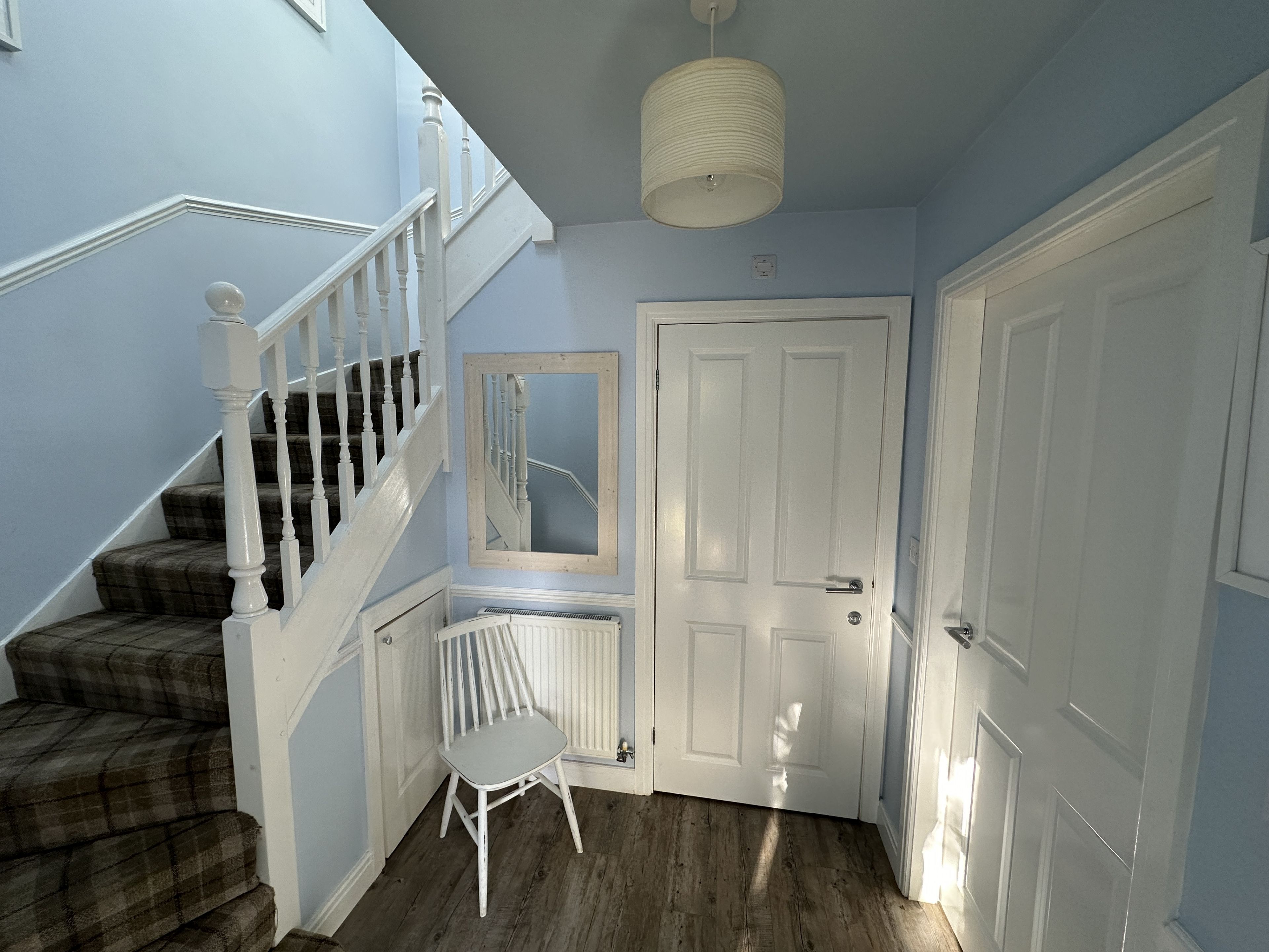 Enter into the airy hallway with storage for all your essentials and access to the downstairs cloak / WC.